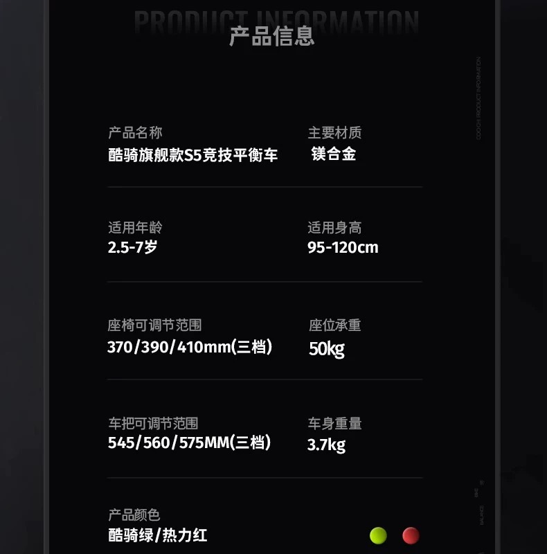 酷骑S5儿童平衡车男女孩1-3-6-8岁宝宝滑行滑步无脚踏竞技款新款