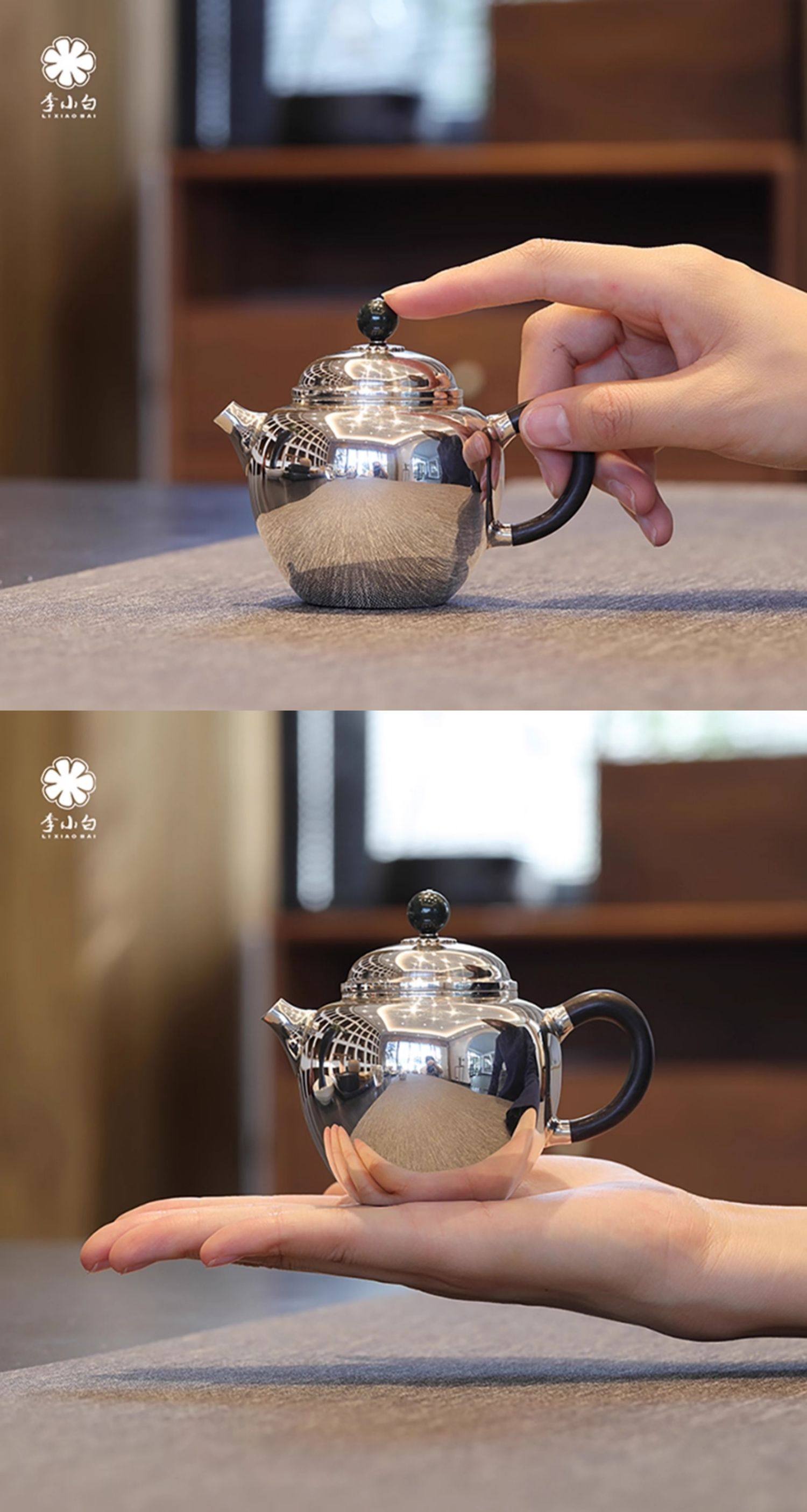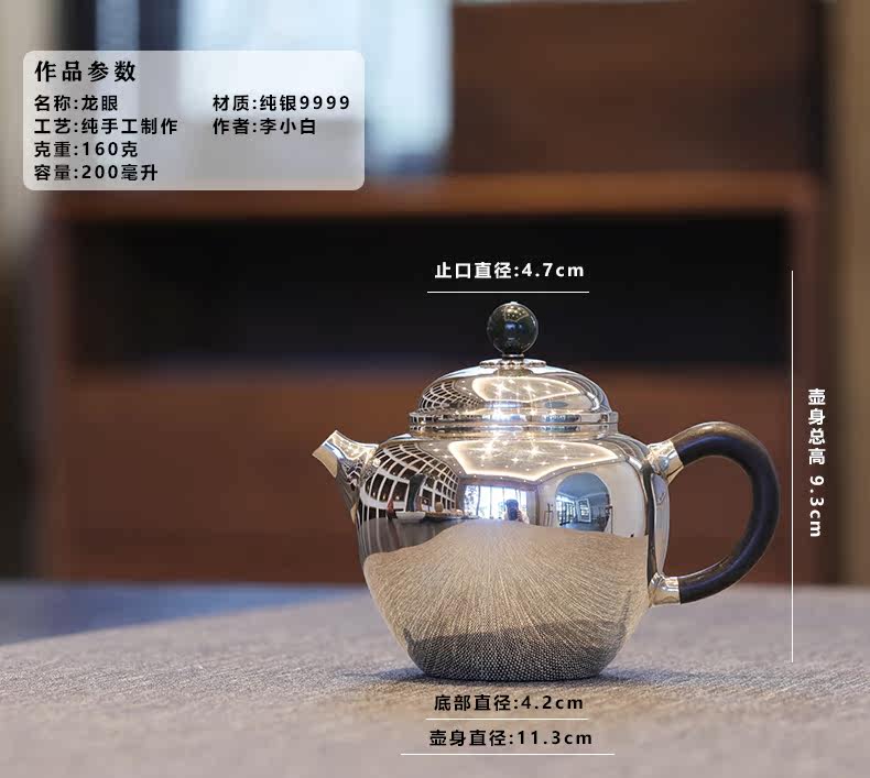 李小白银壶 纯银9999泡茶银壶 纯银泡茶壶 泡茶银壶 烧水银壶 龙眼