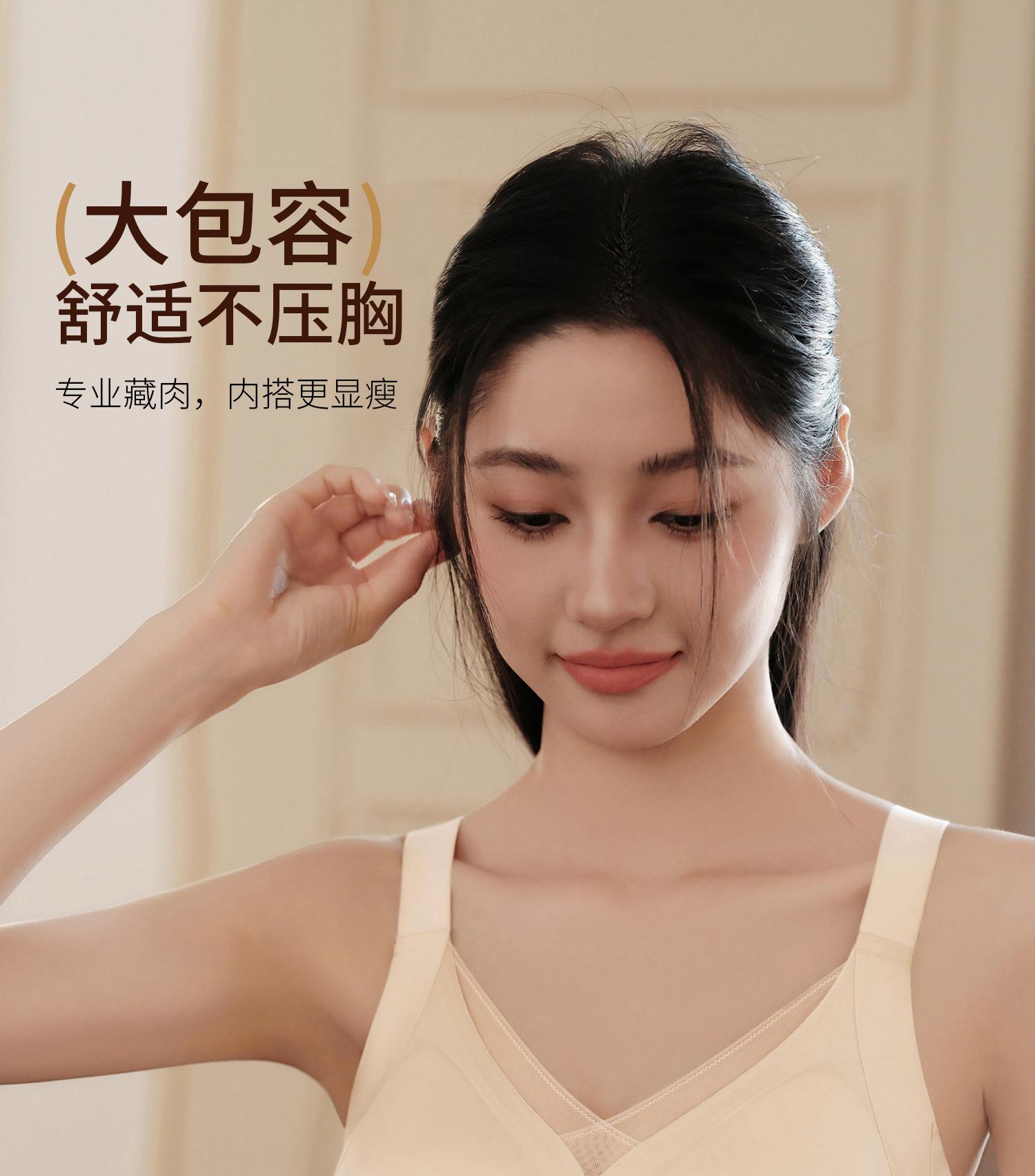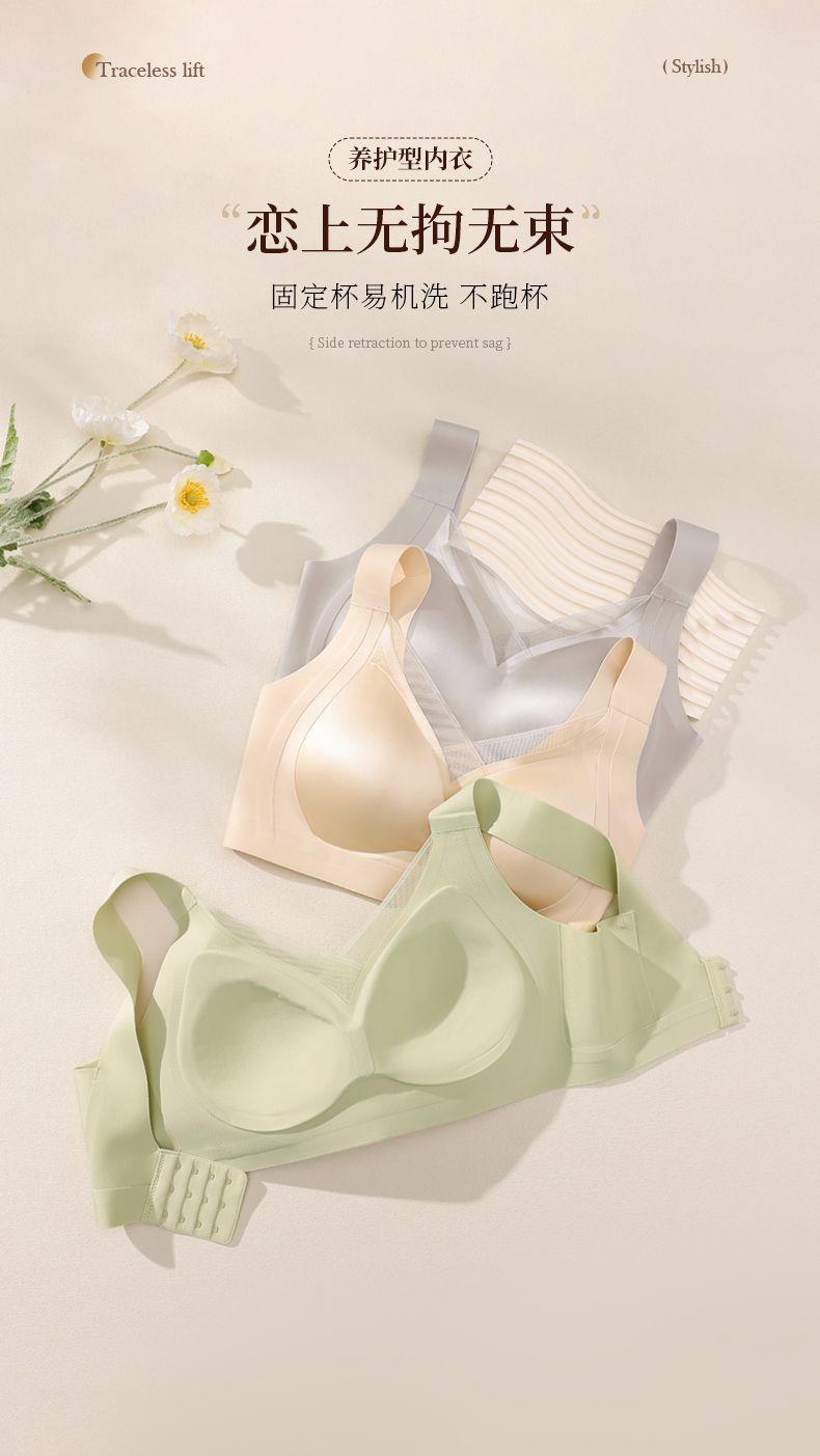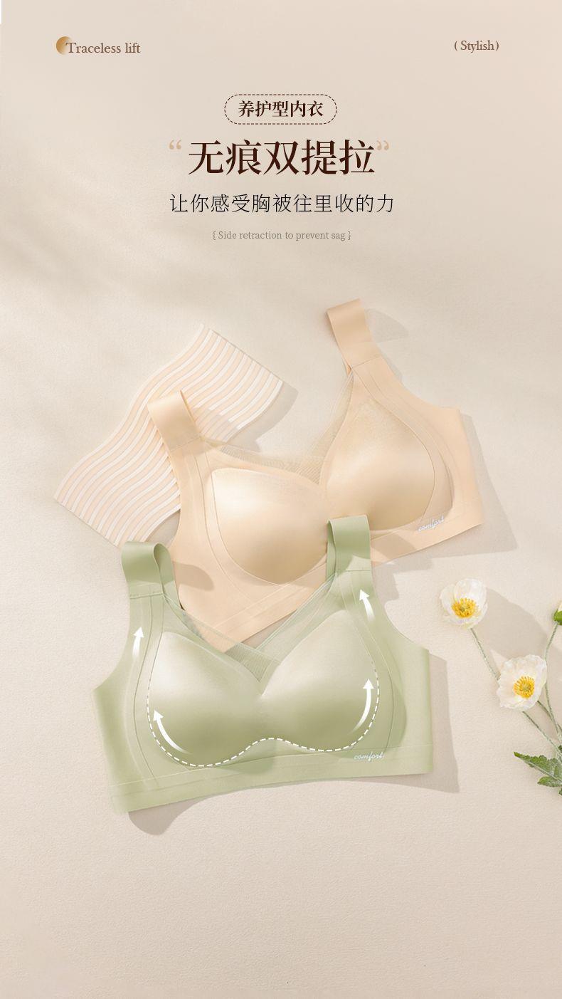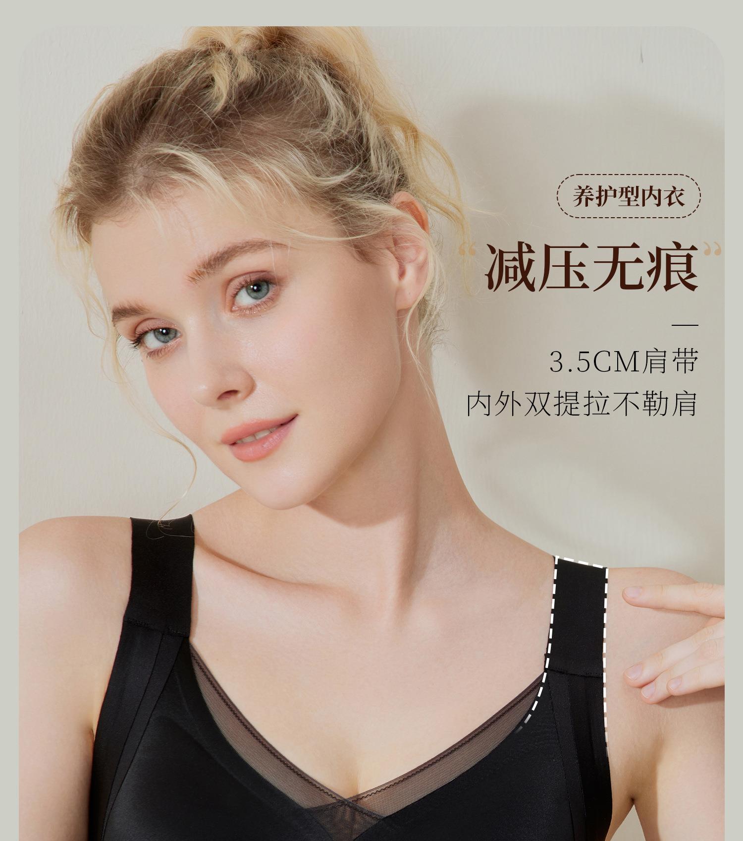 猫人同厂无痕内衣女美背心式新款双提拉养护型内衣交叉蕾丝聚拢内衣固定杯U型美背调整型文胸`