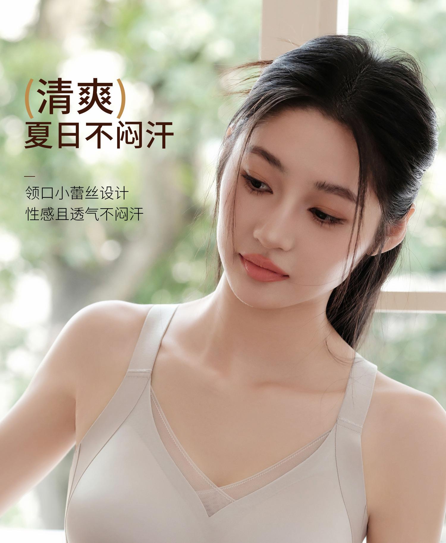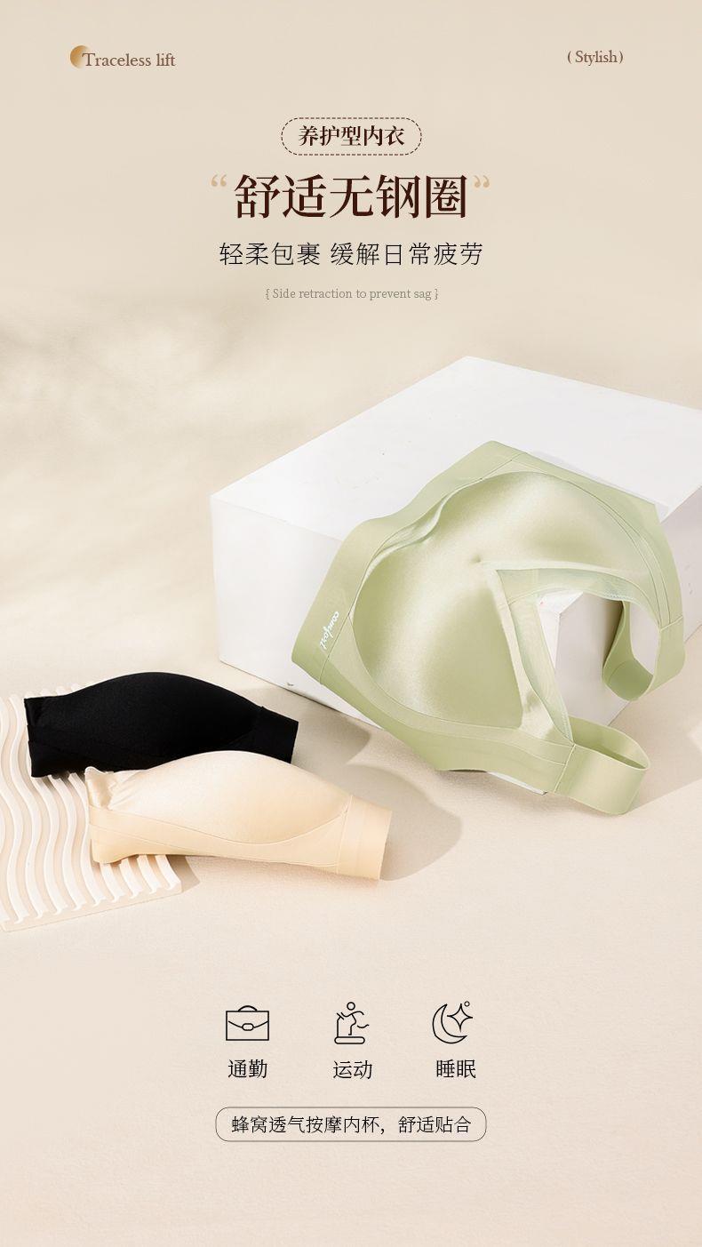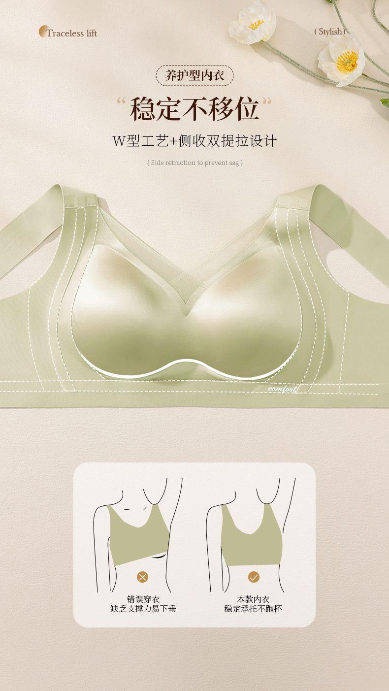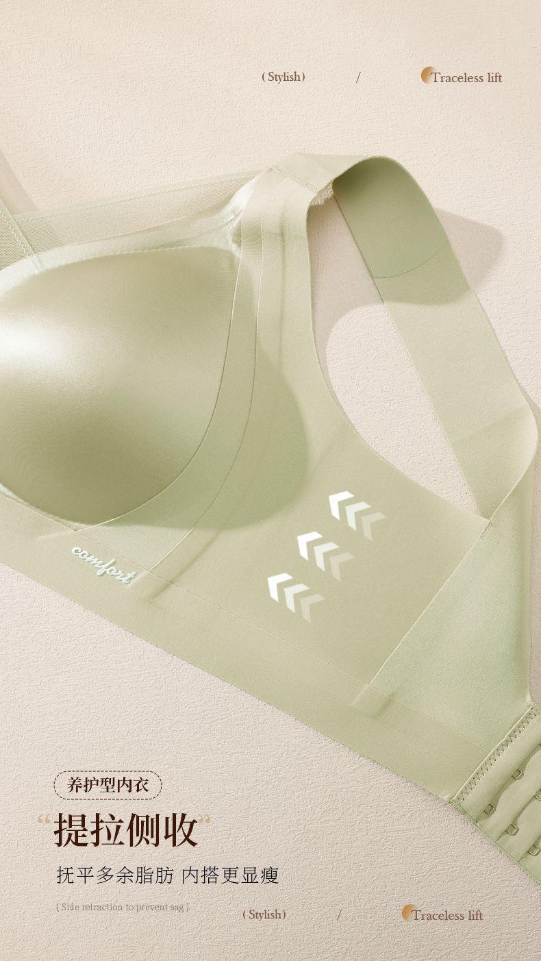 猫人同厂无痕内衣女美背心式新款双提拉养护型内衣交叉蕾丝聚拢内衣固定杯U型美背调整型文胸`
