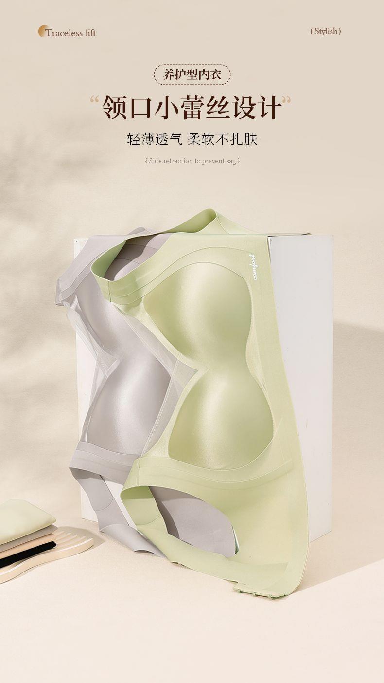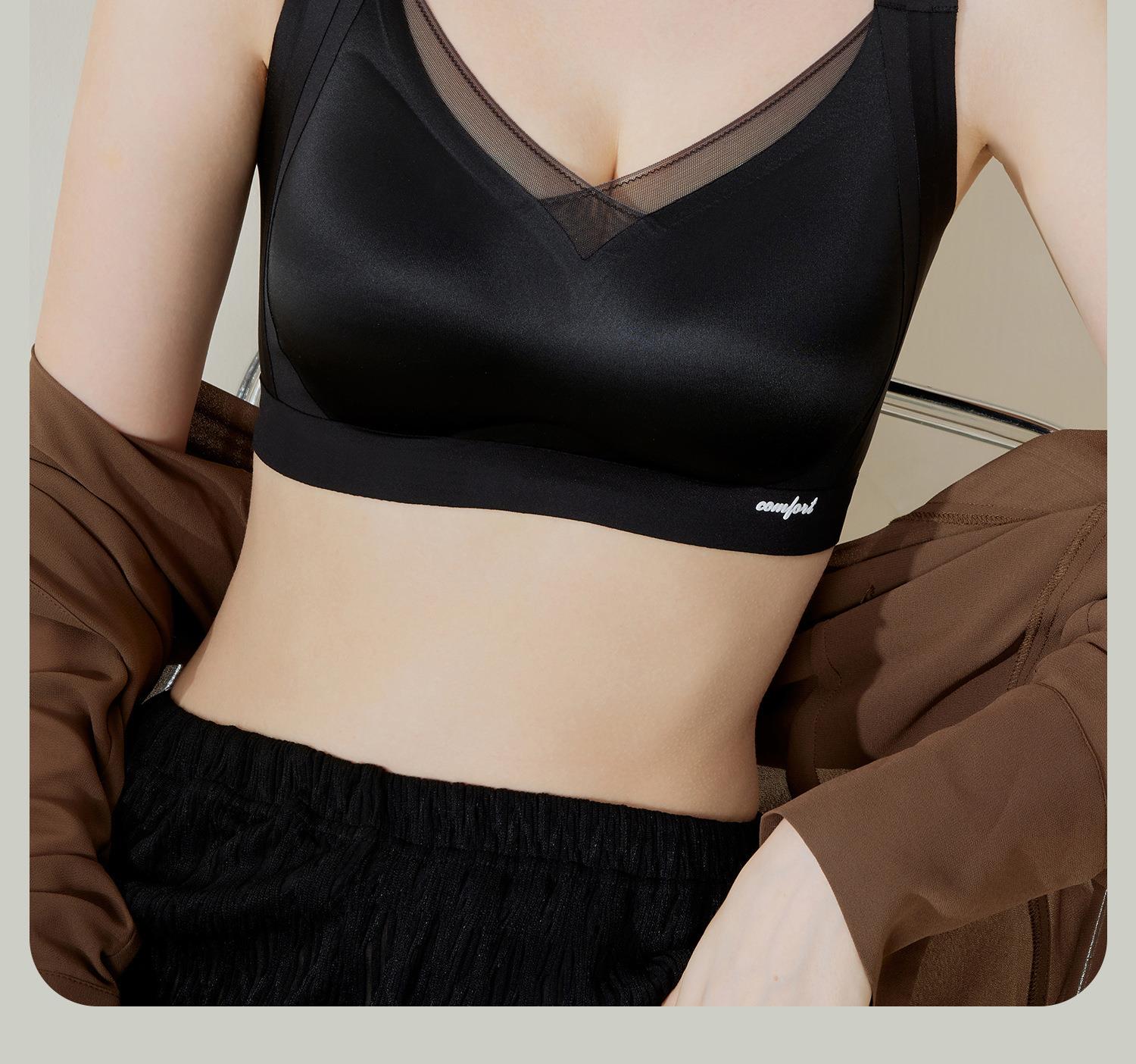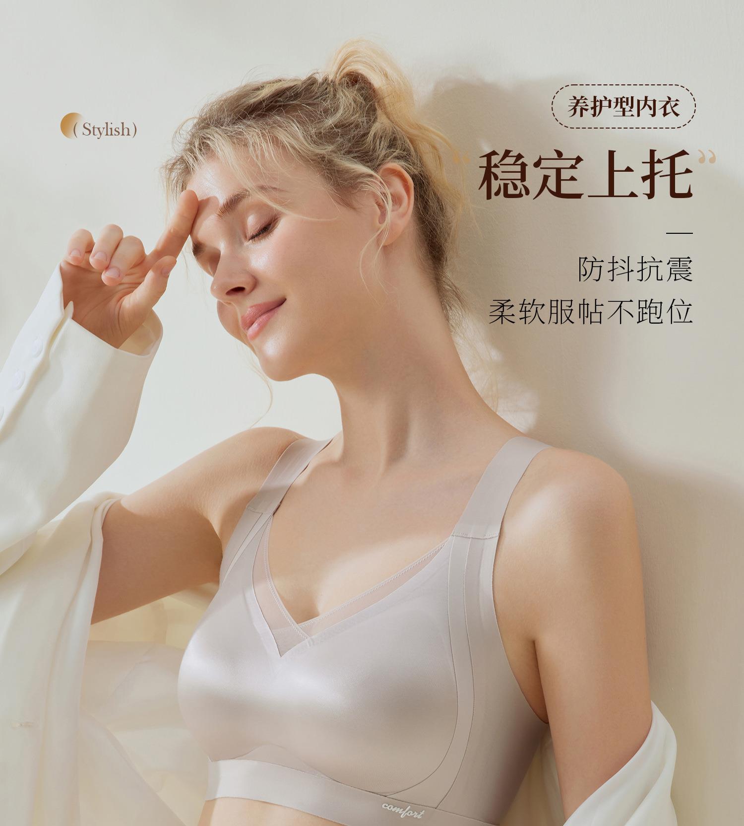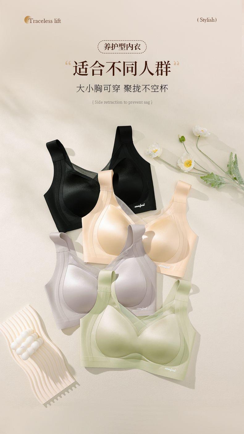 猫人同厂无痕内衣女美背心式新款双提拉养护型内衣交叉蕾丝聚拢内衣固定杯U型美背调整型文胸`