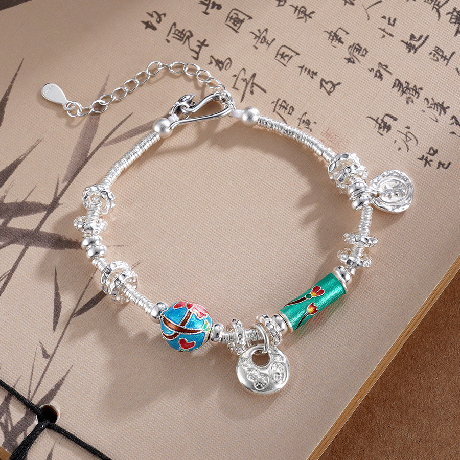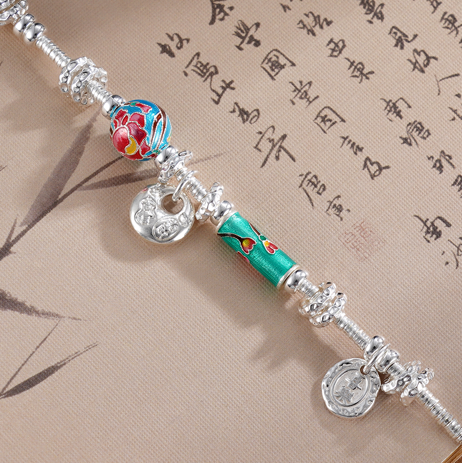 子佩集S925银【花信年华】手链【SL01018】纯银钱串腰缠万贯珐琅彩盘缠盘缠2504