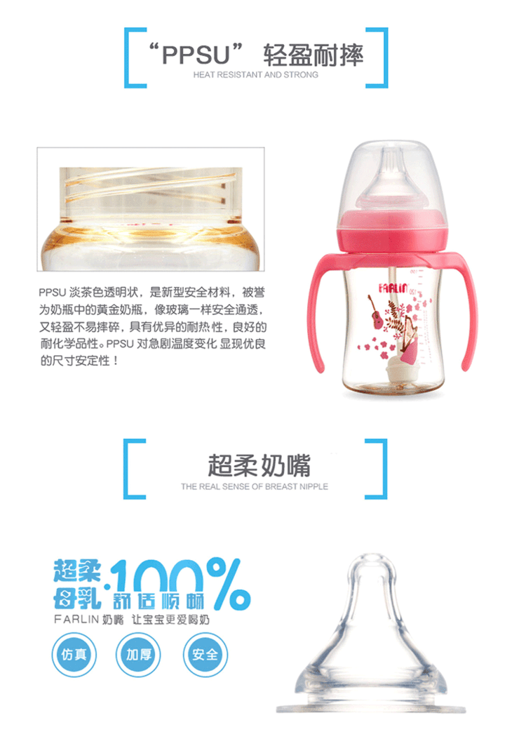 华林贝比超柔PPSU曲线自动奶瓶150ml
