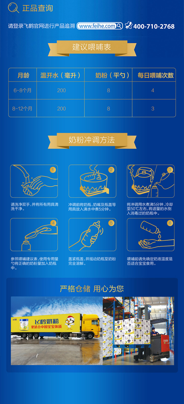 飞鹤星飞帆较大婴儿配方奶粉2段300g