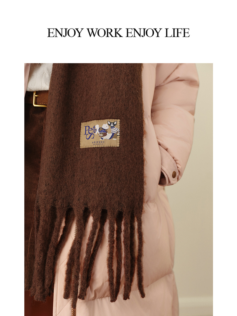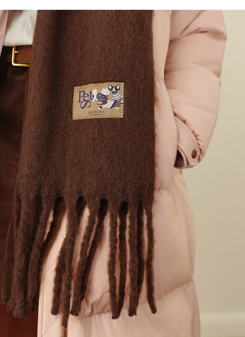 【严选】诗凡黎褐色氛围感双面围巾2025冬新款绵羊毛混纺保暖披肩百搭围脖7G93BW0121