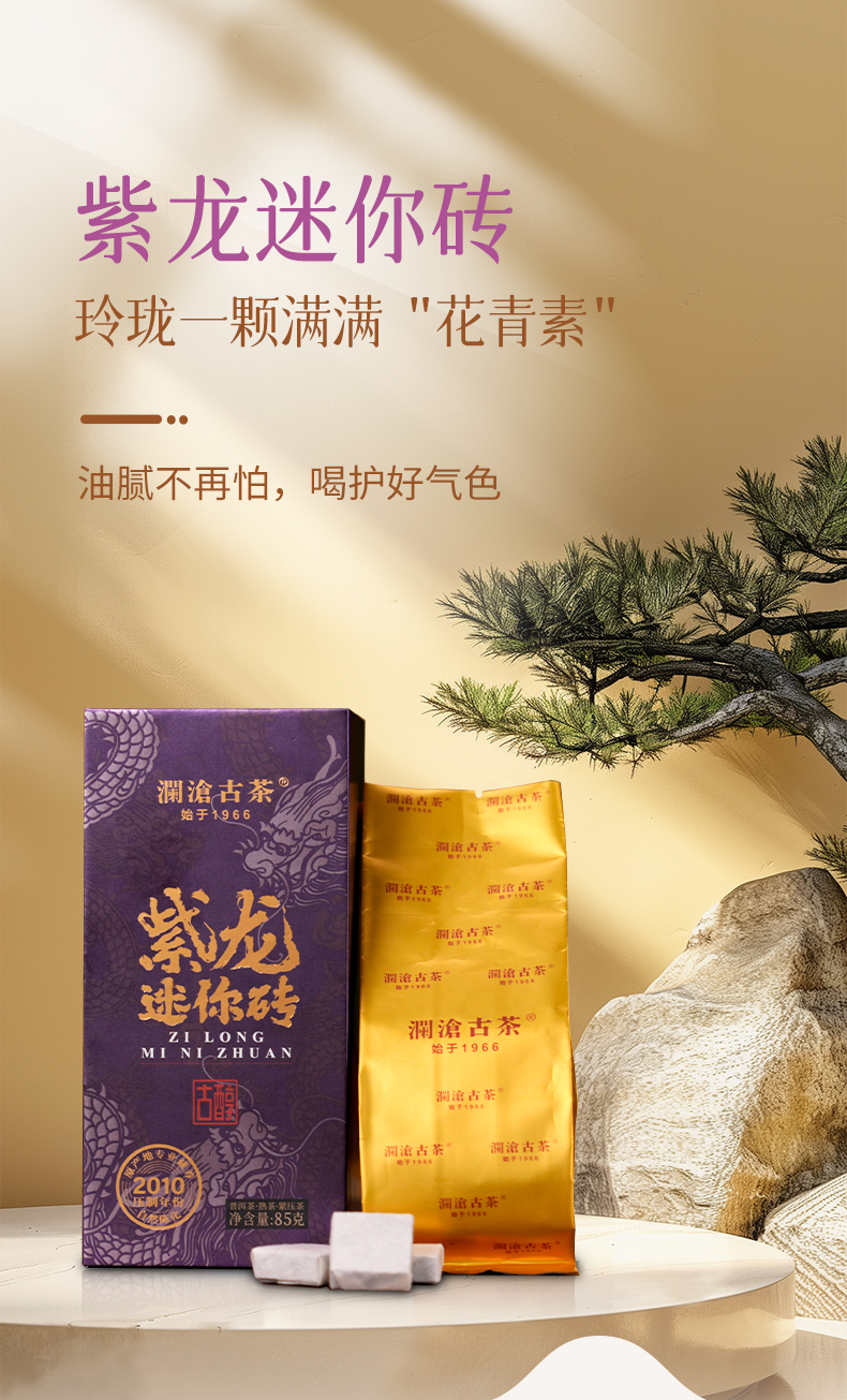 澜沧古茶202年古醇紫龙迷你砖云南普洱茶熟茶85g