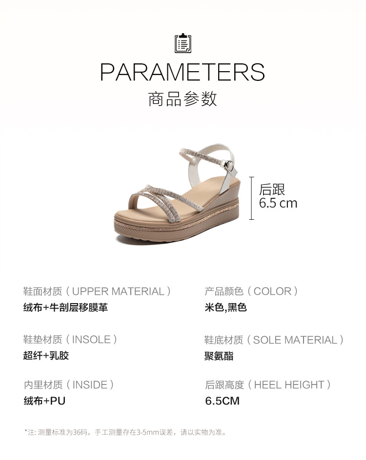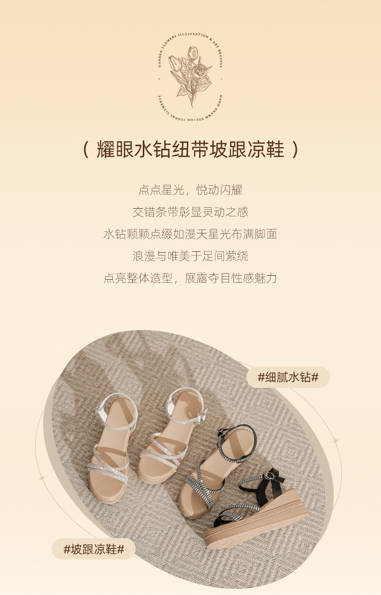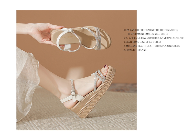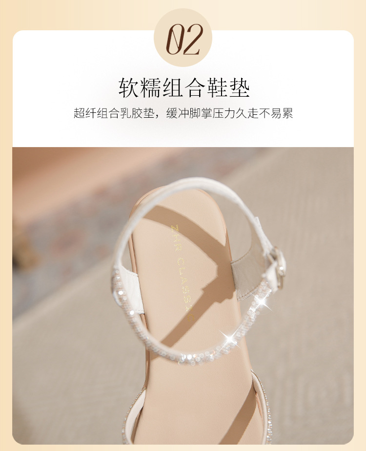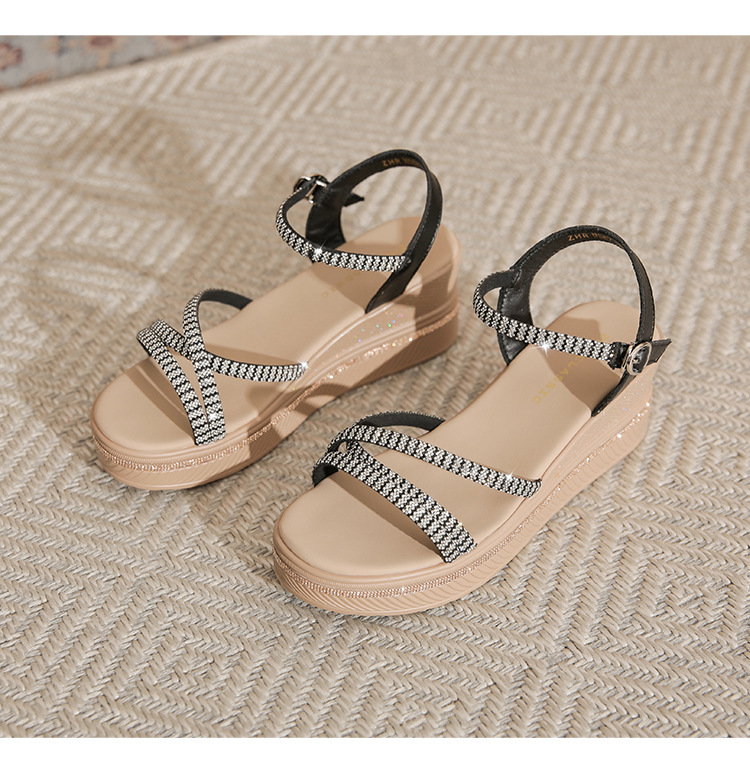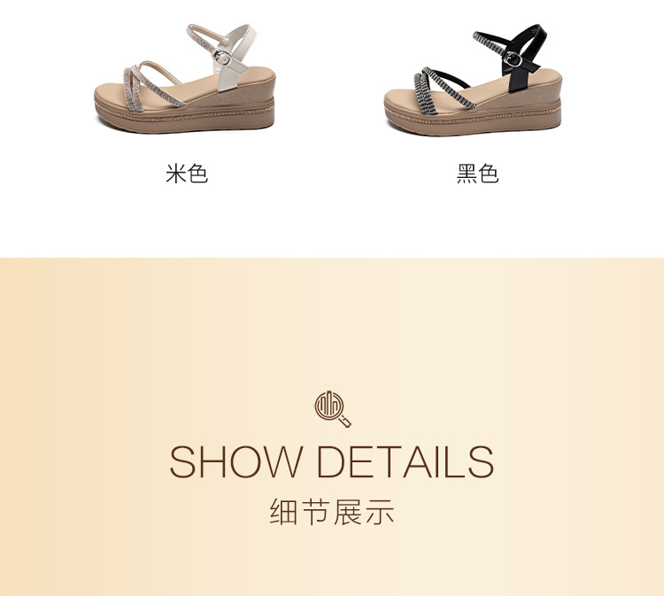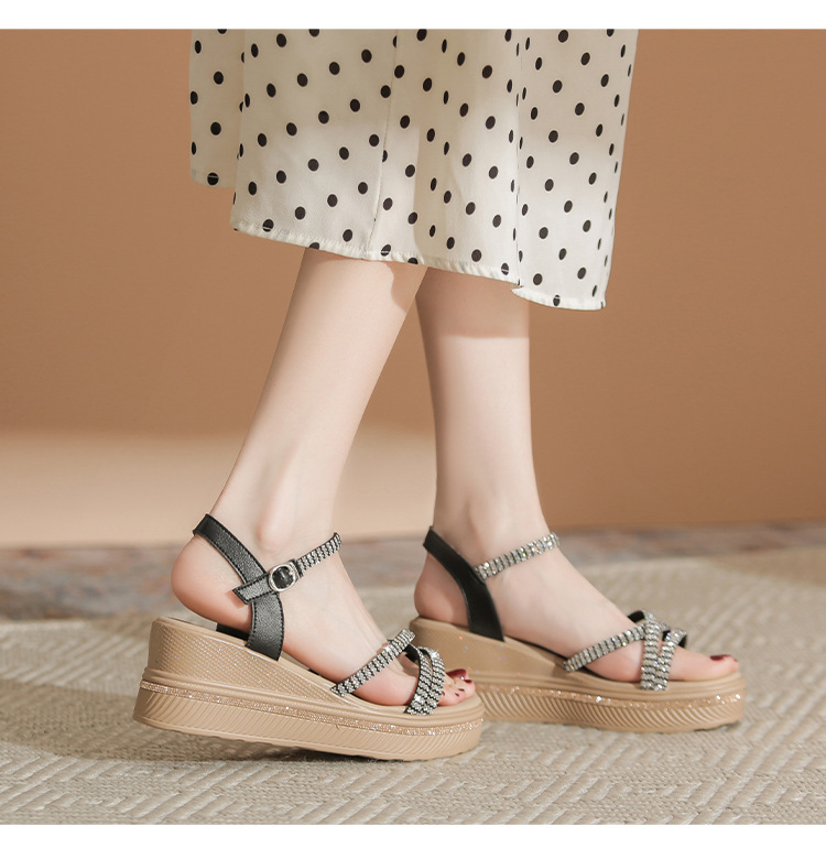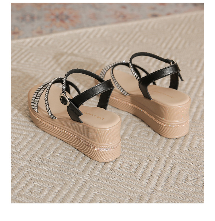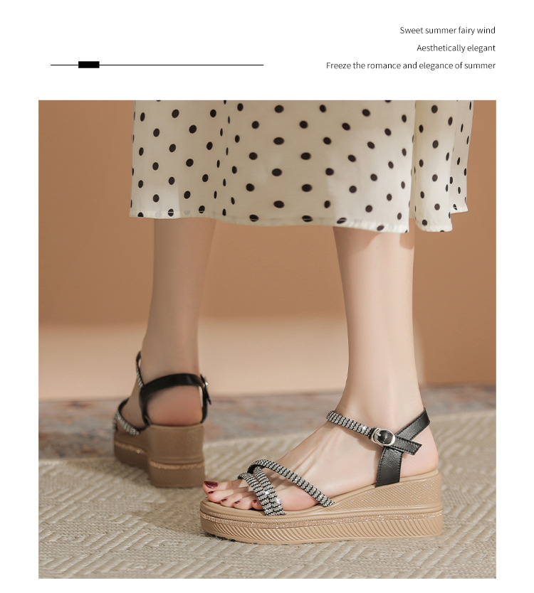 ZHR夏季坡跟水钻凉鞋2024夏季新款法式厚底外穿一字带女鞋配裙子