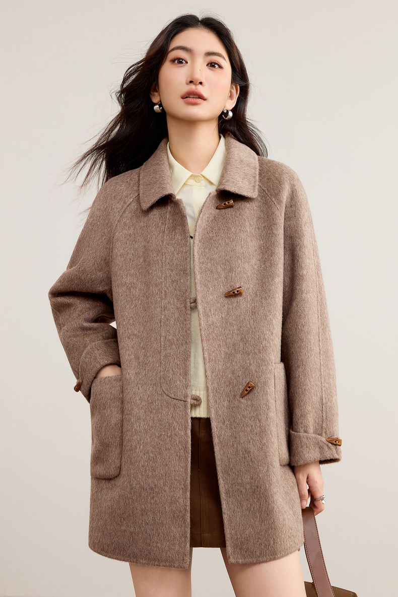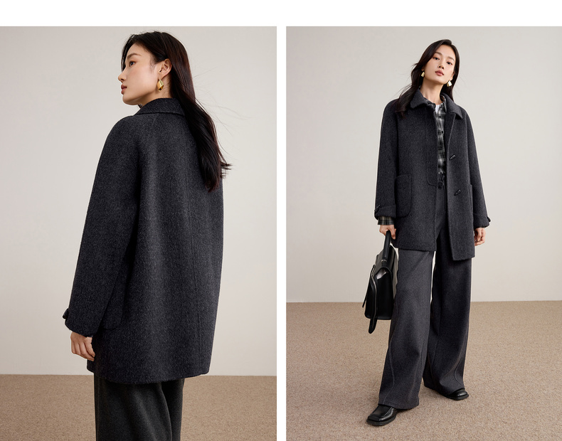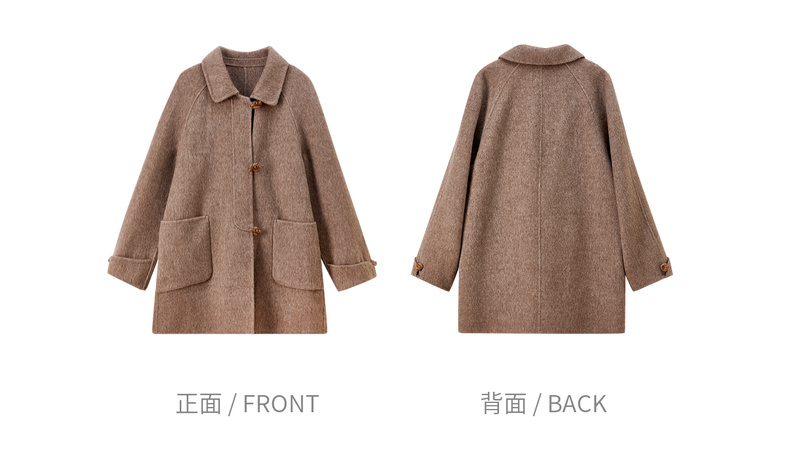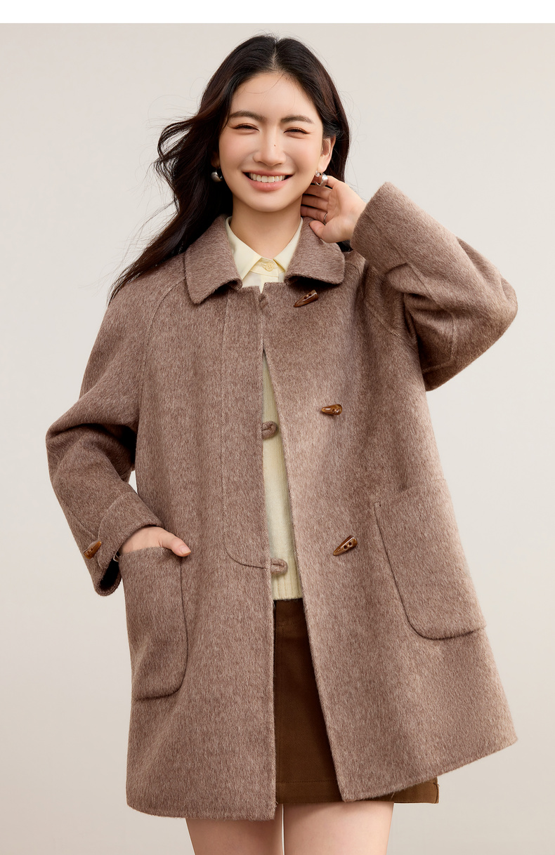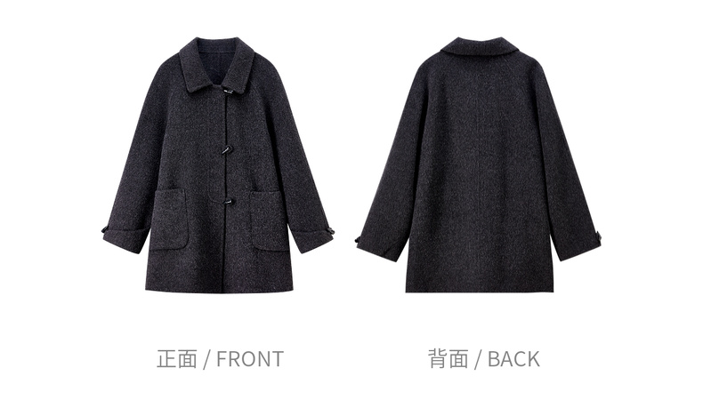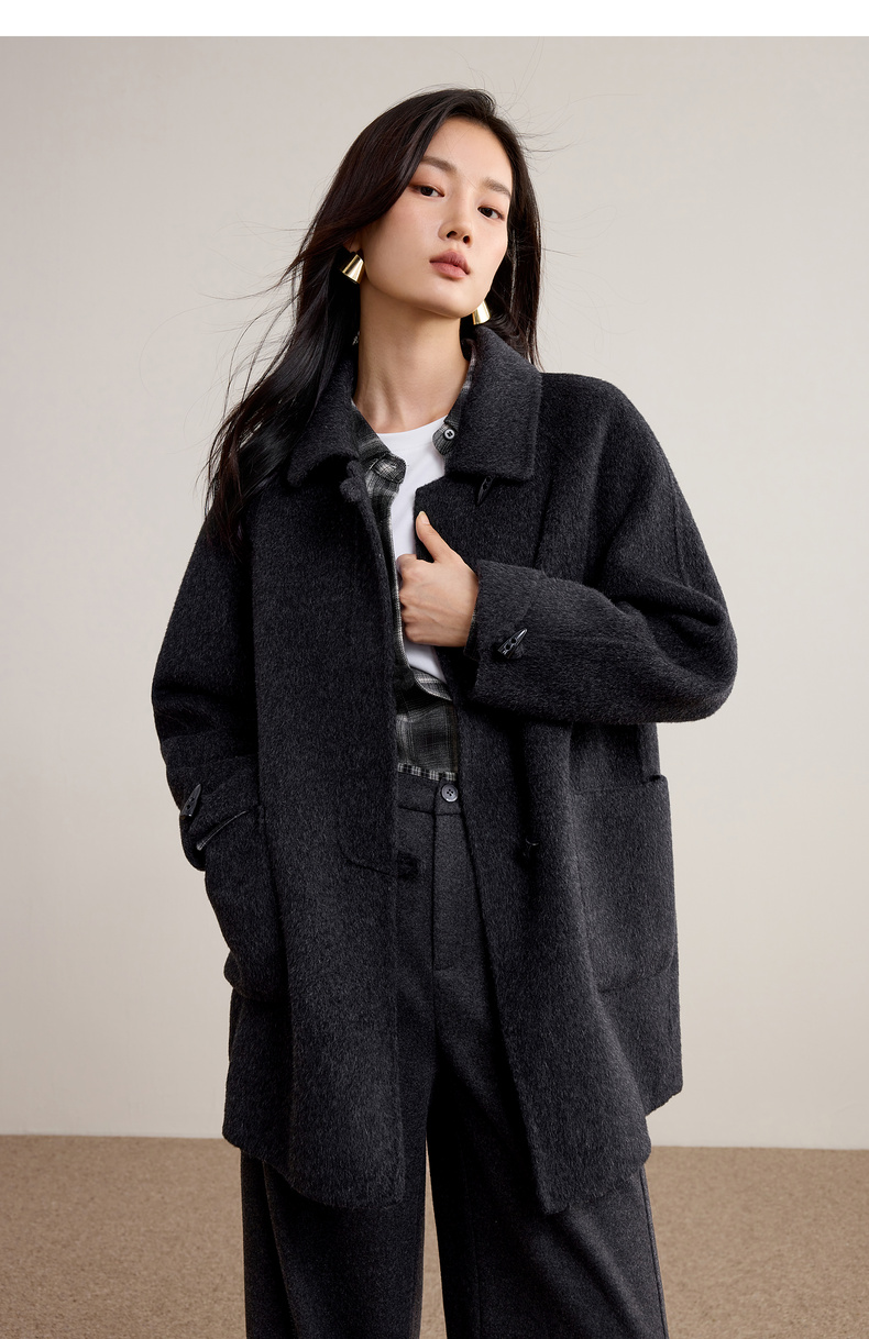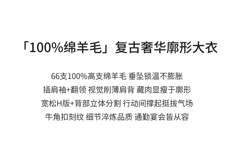 【内购】【100%绵羊毛】翻领牛角扣插肩袖藏肉显瘦宽松H版立体毛呢大衣-W54OC8770