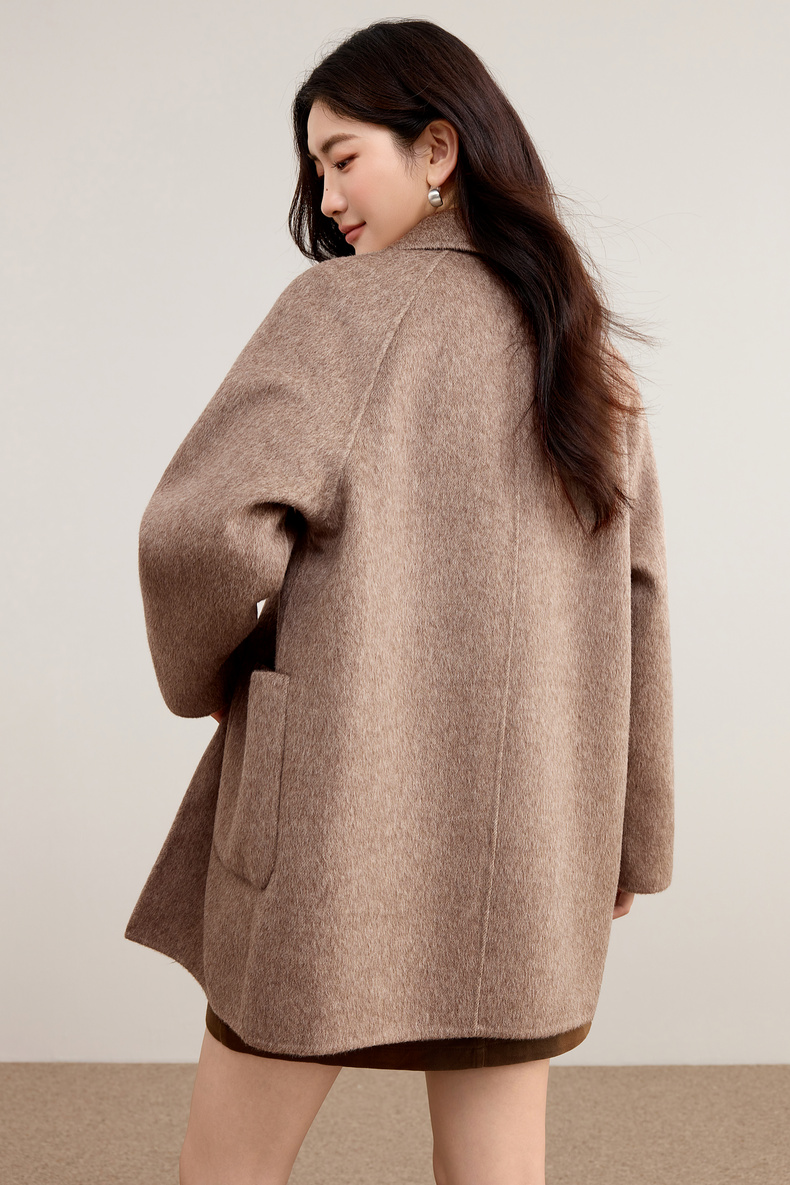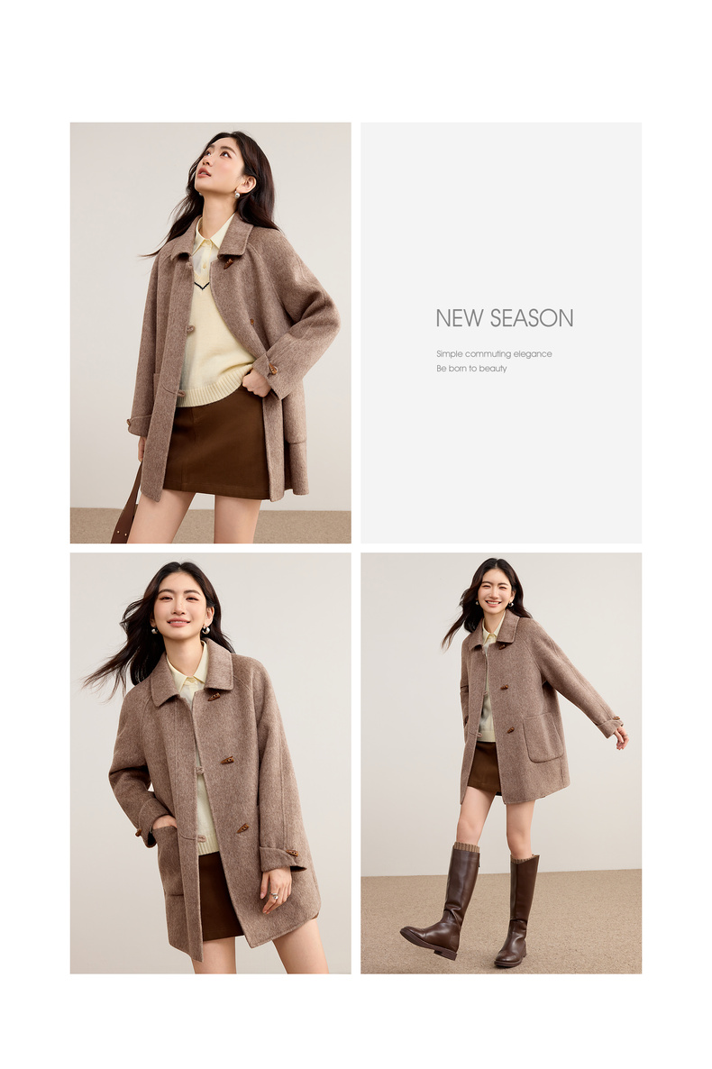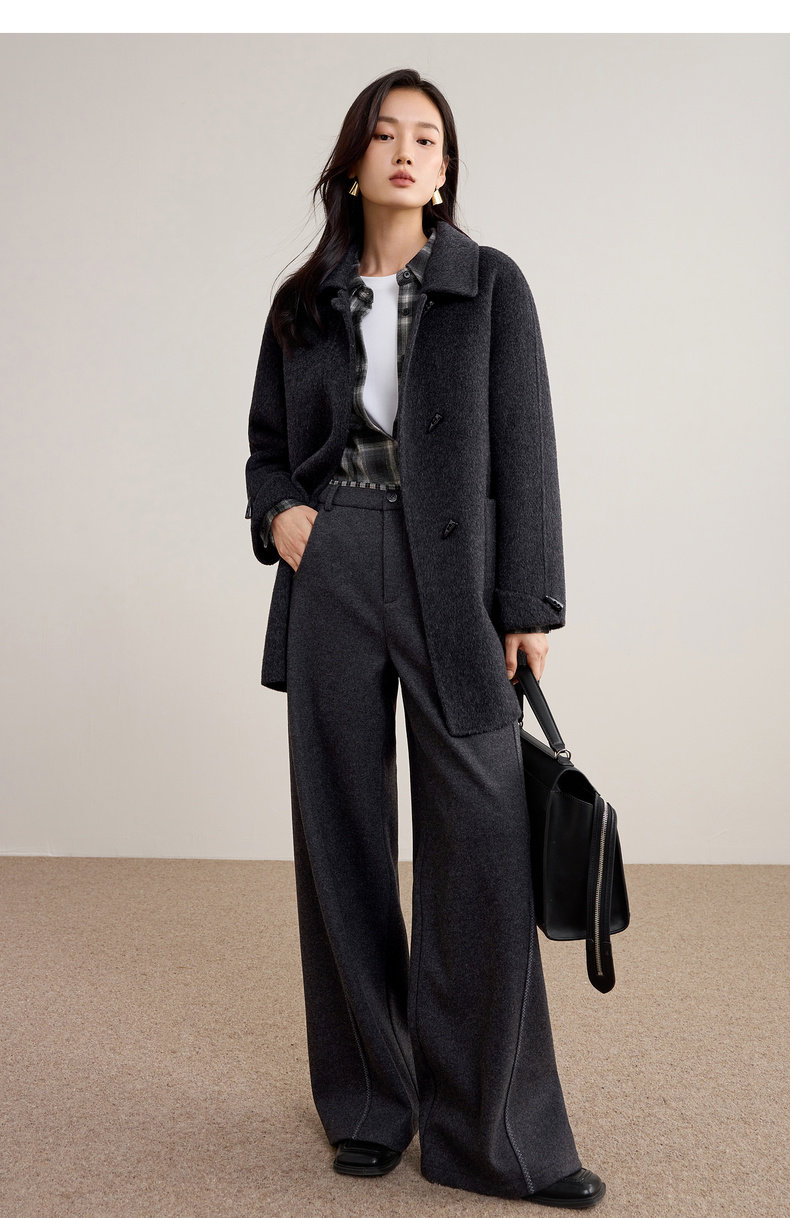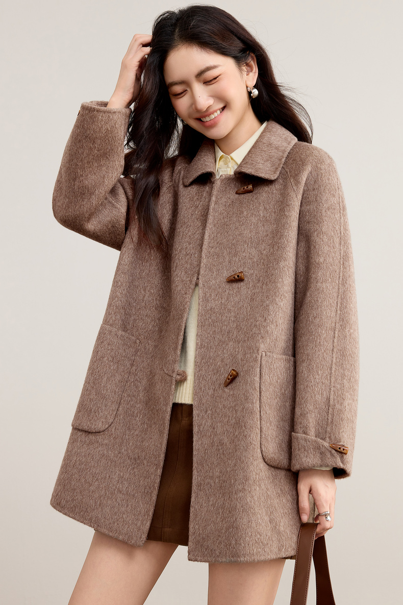 【内购】【100%绵羊毛】翻领牛角扣插肩袖藏肉显瘦宽松H版立体毛呢大衣-W54OC8770