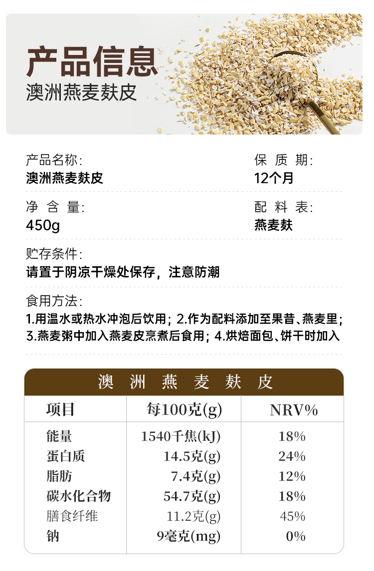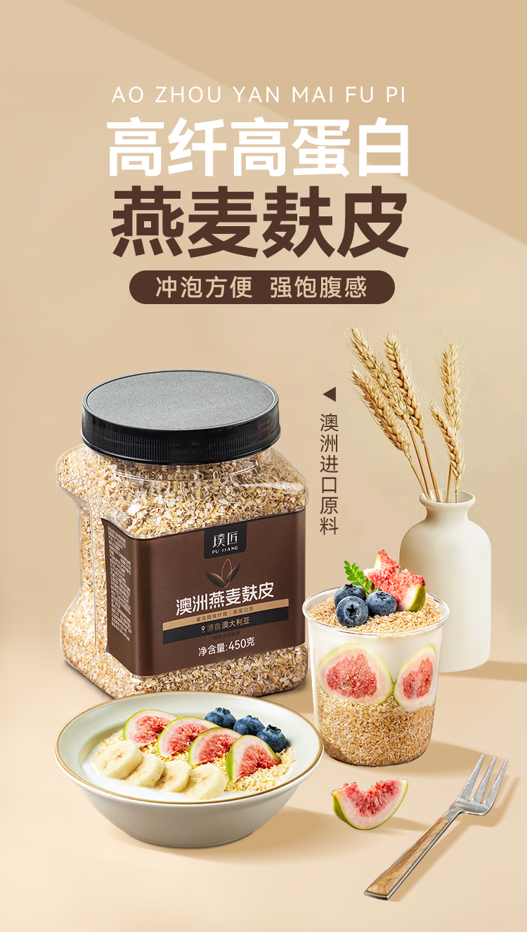 璞匠燕麦麸皮旗舰店官方饱腹代餐燕麦片冲饮即食营养早餐粗粮速食