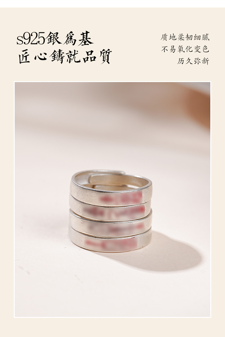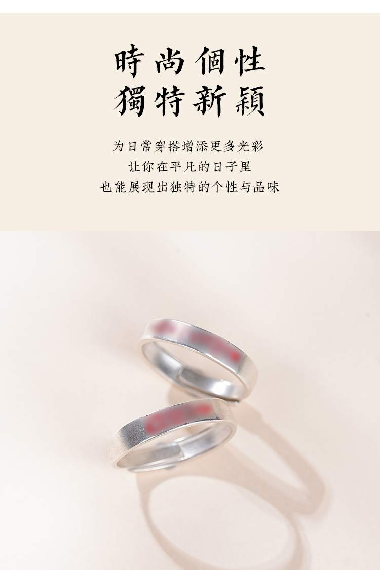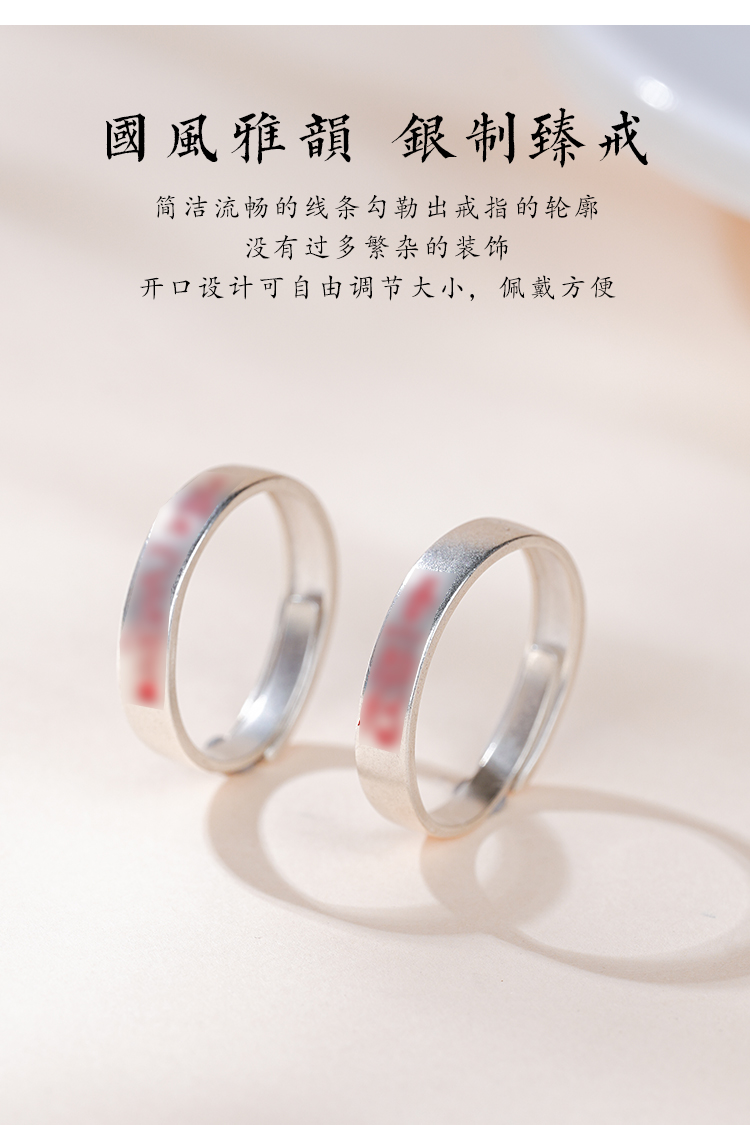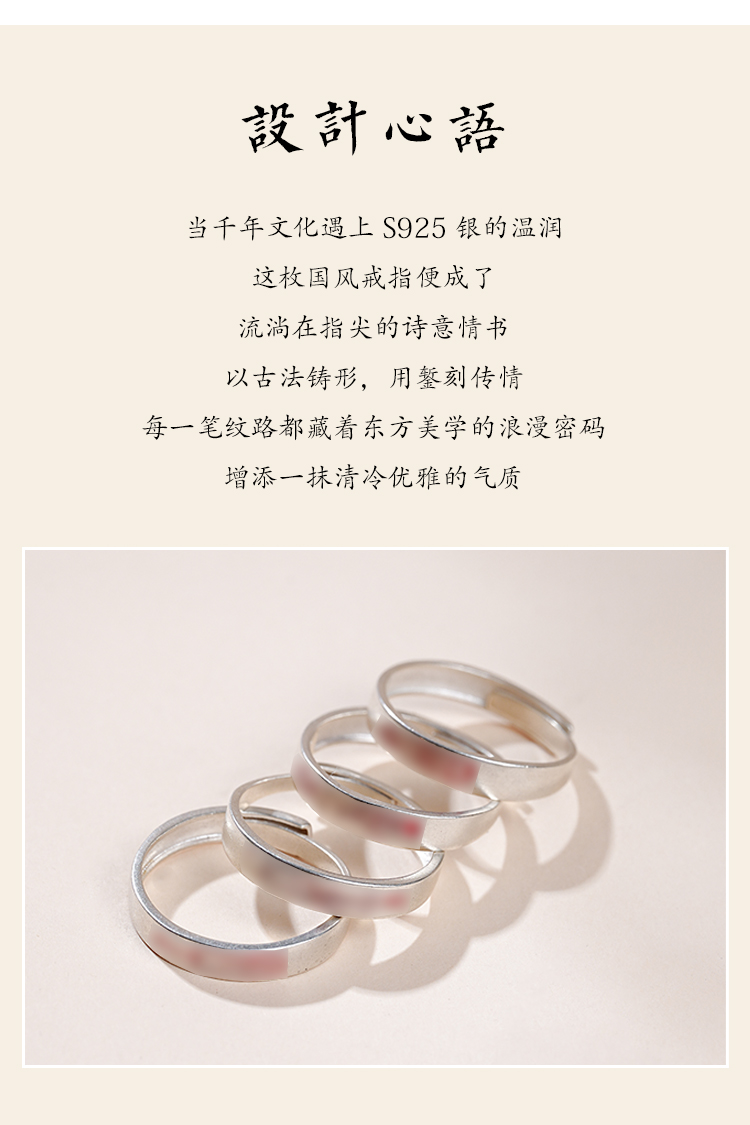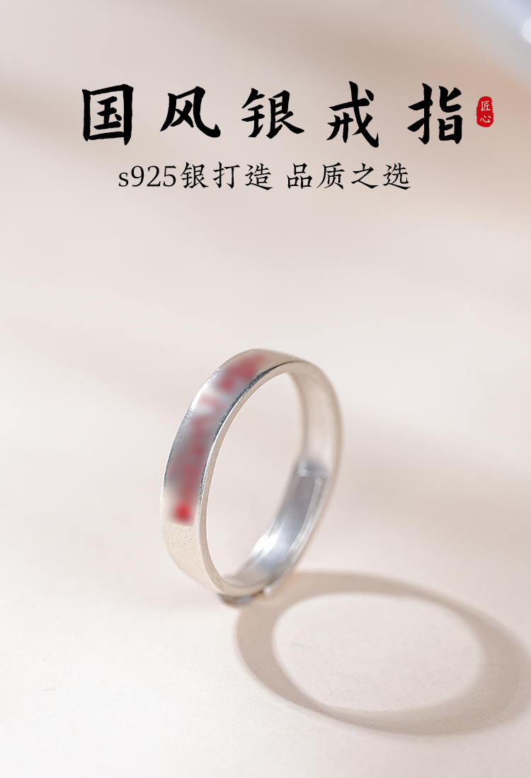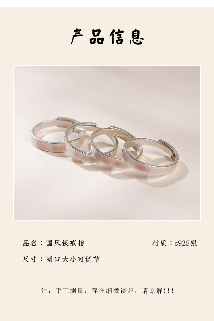 传统文化S925银戒指朱砂平安复古国风小众戒指