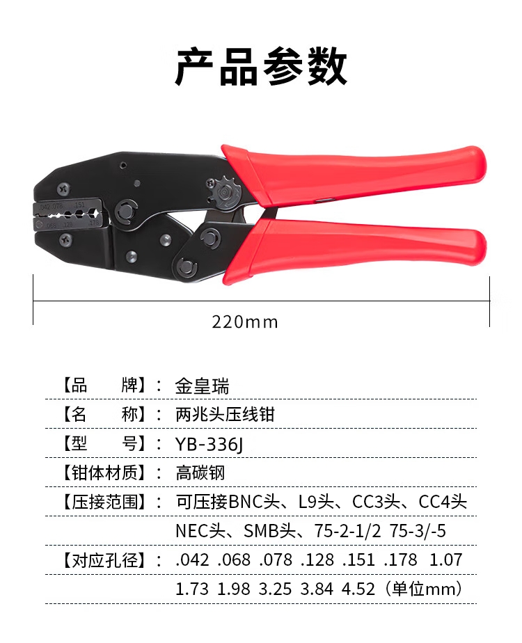 商品名称:爆 款【2M压接钳 同轴线缆压线钳】 2M头线压线端子 BNC/Q9 L9 CC3 CC4 N型头专用 75-2-1/2 75-3/-5专用 两兆头压线钳