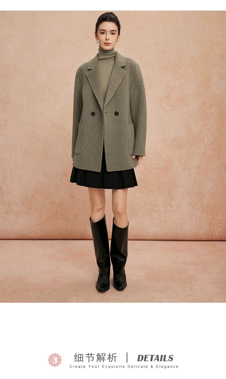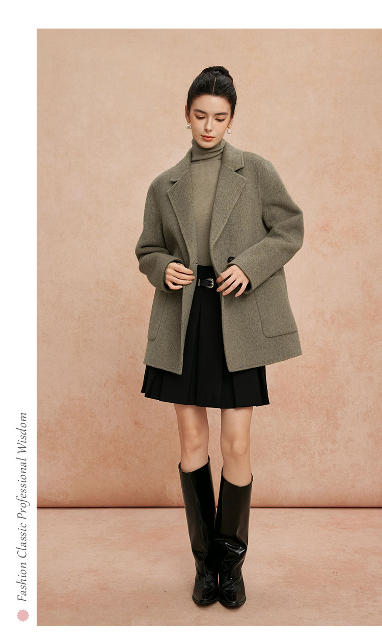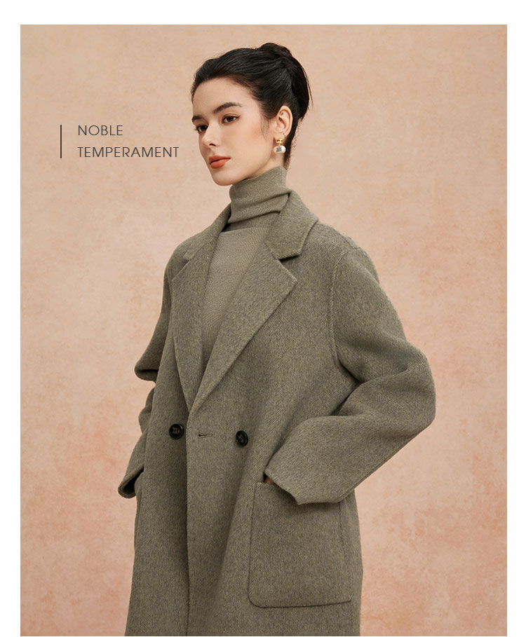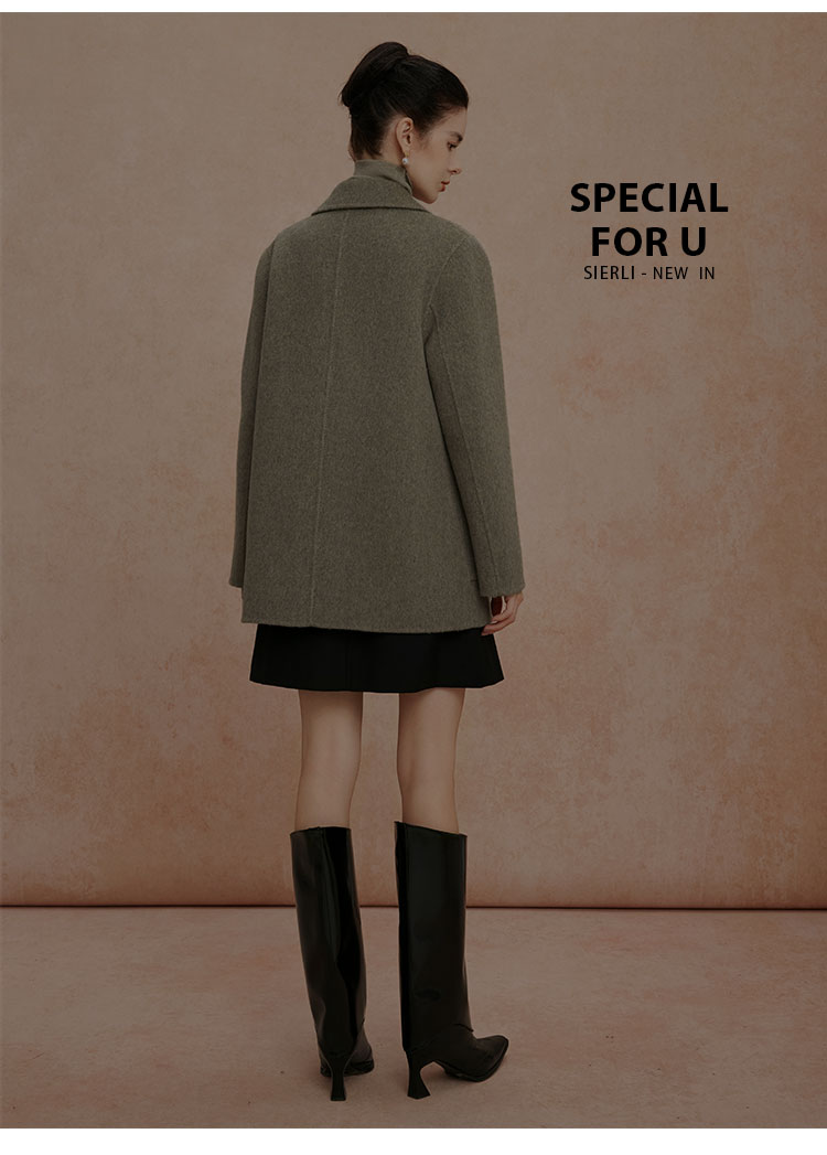 QH908斯尔丽2025新款软糯滑爽一手长及臀时尚减龄H型双面呢羊毛大衣