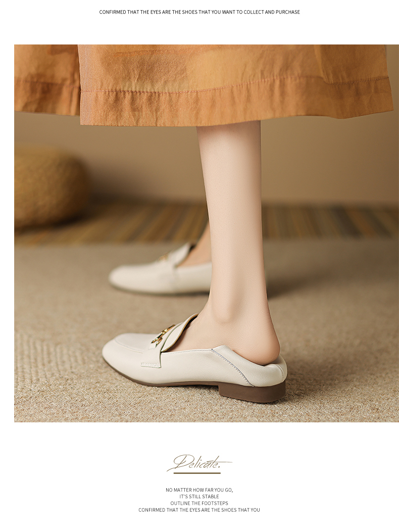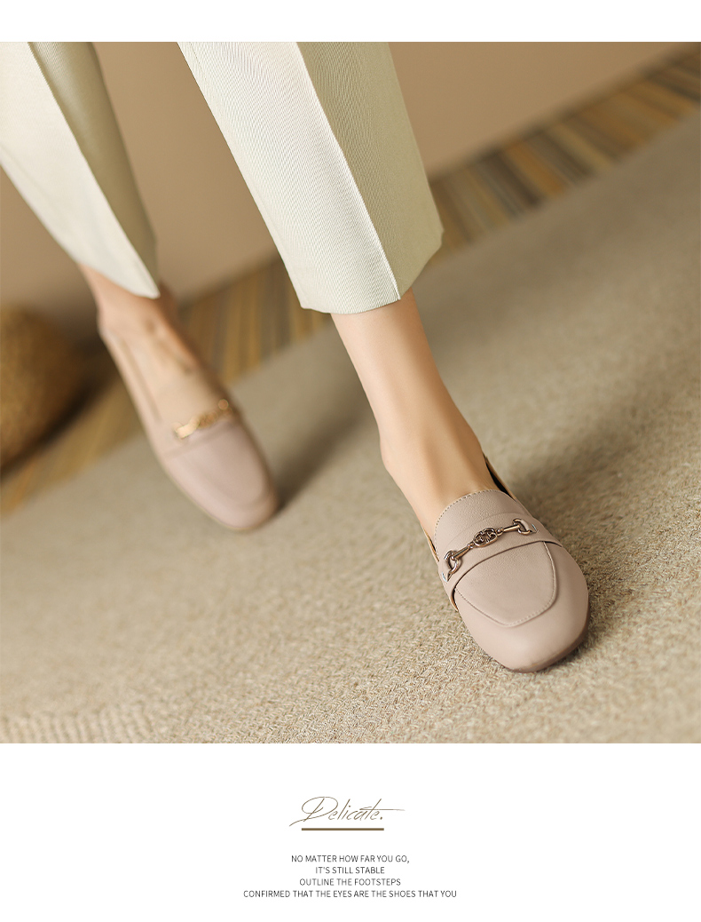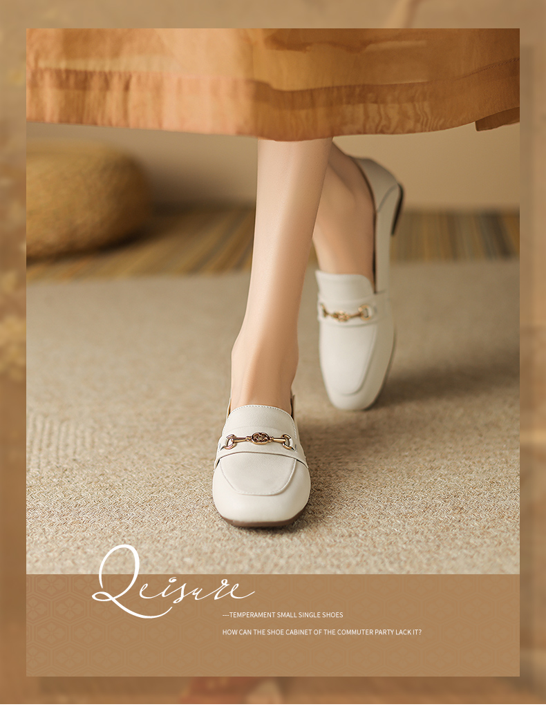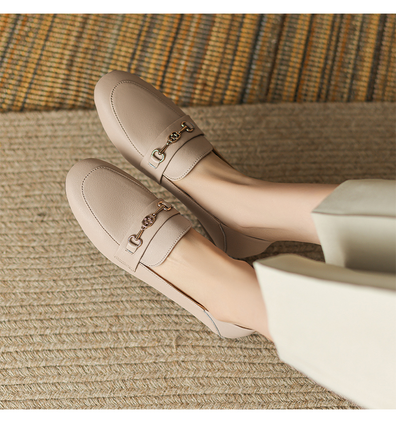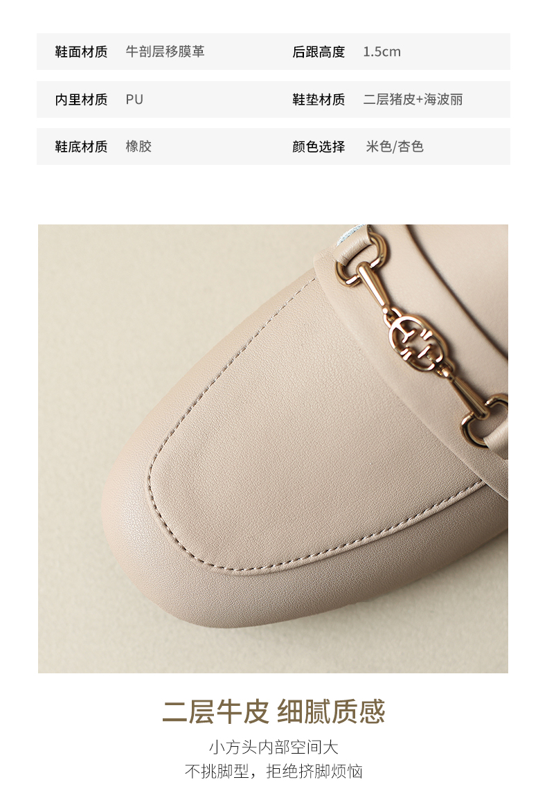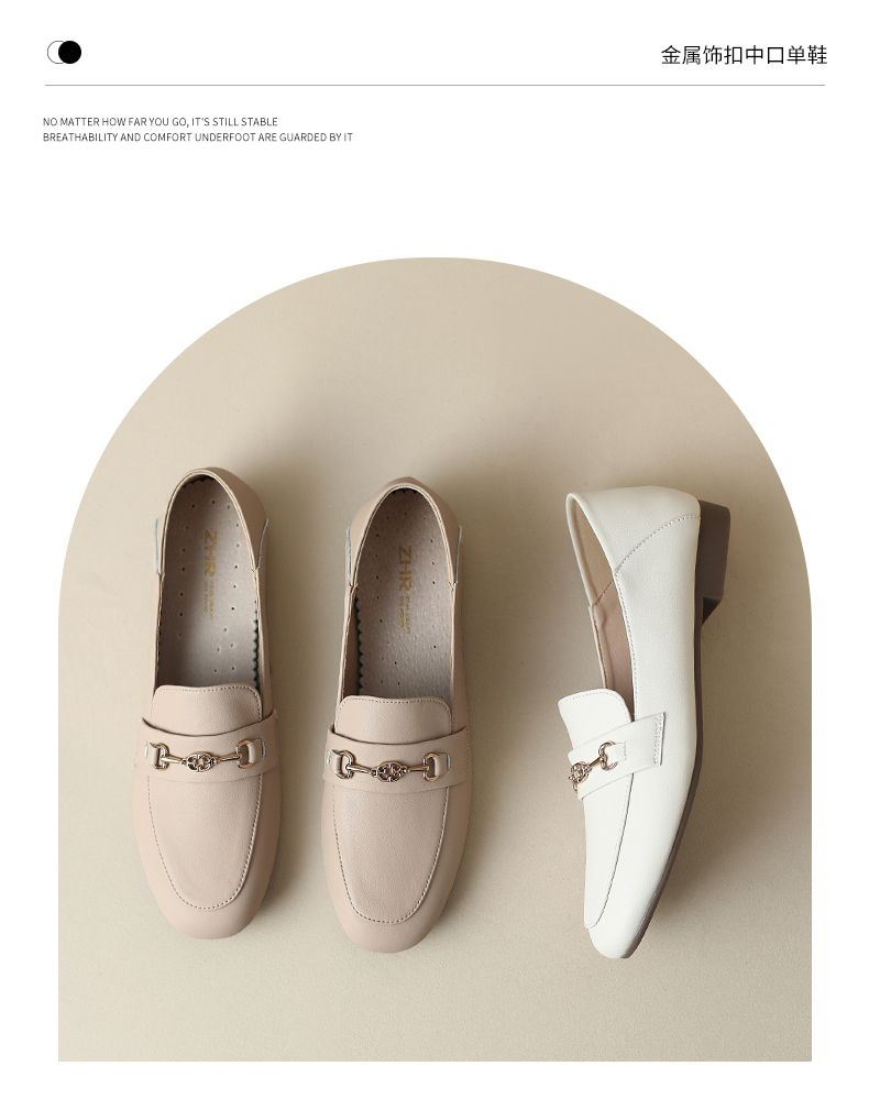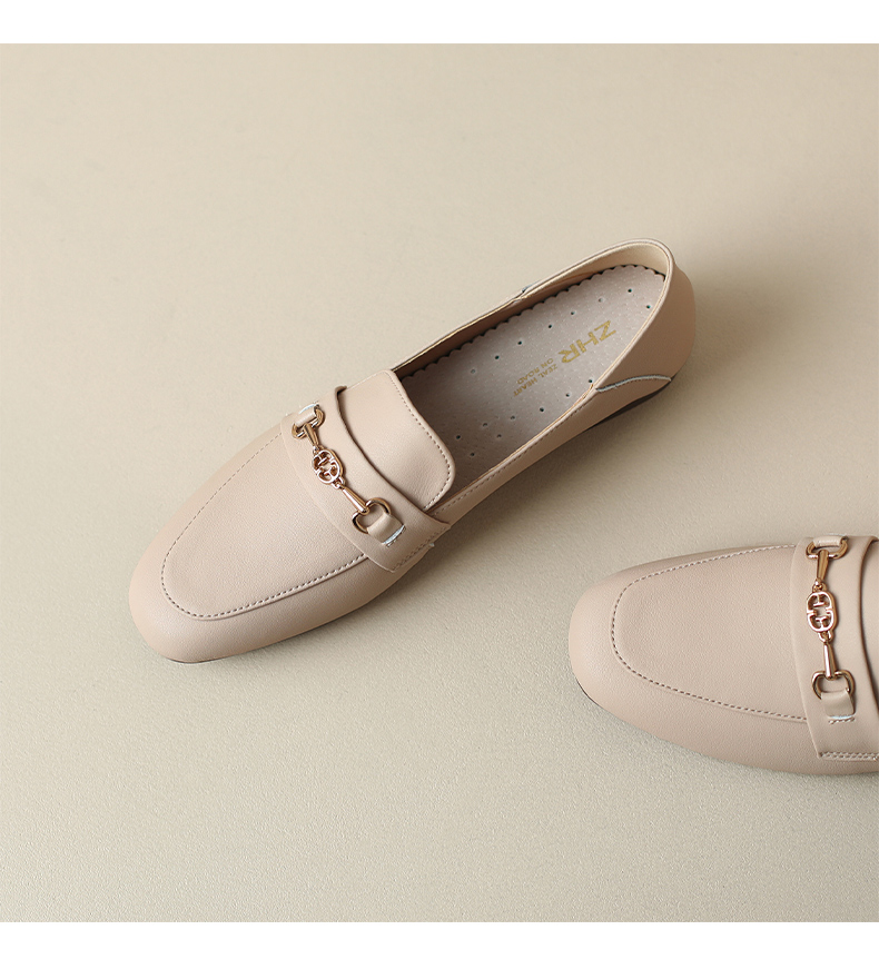 ZHR休闲单鞋2023新款百搭一脚蹬法式复古小皮鞋女通勤轻便乐福鞋
