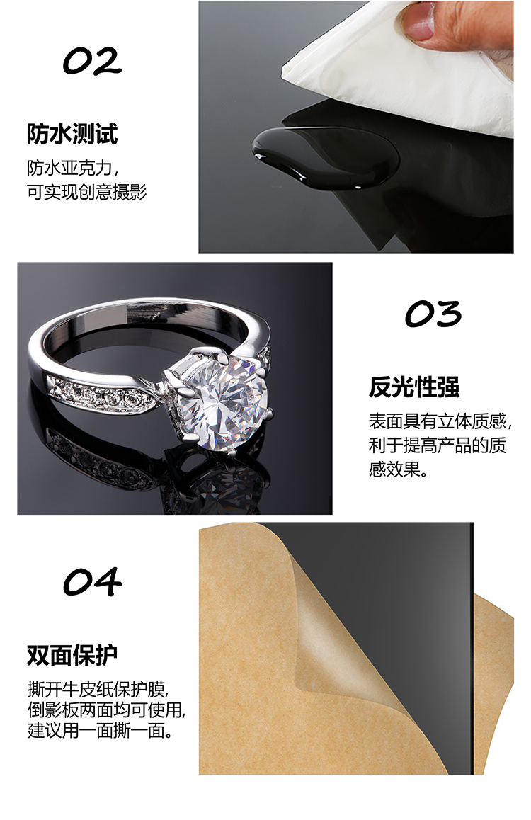 胖牛40CM亚克力摄影倒影板拍摄背景板拍照道具
