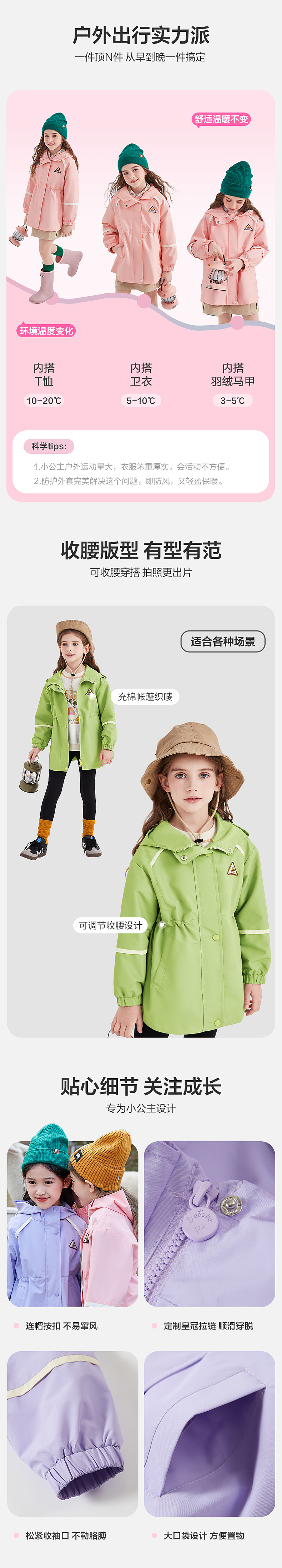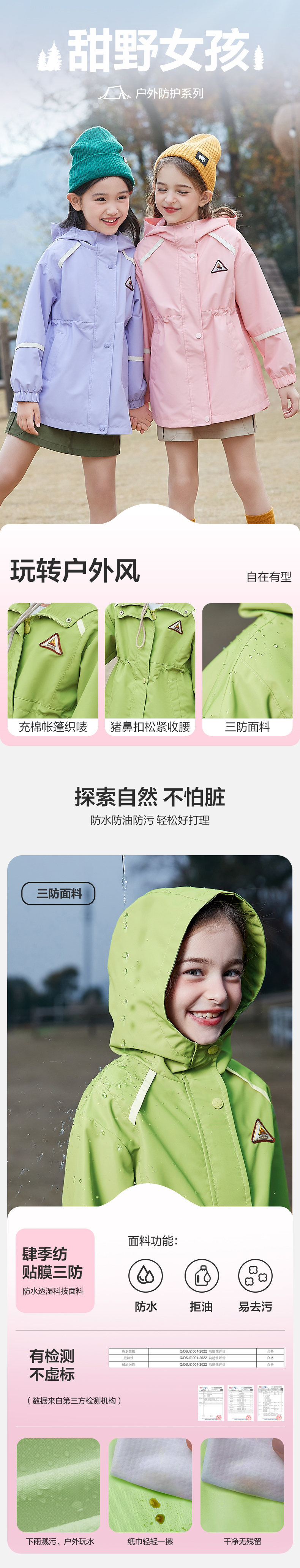 笛莎Deesha 童装女童外套2024新款时尚冲锋衣外套