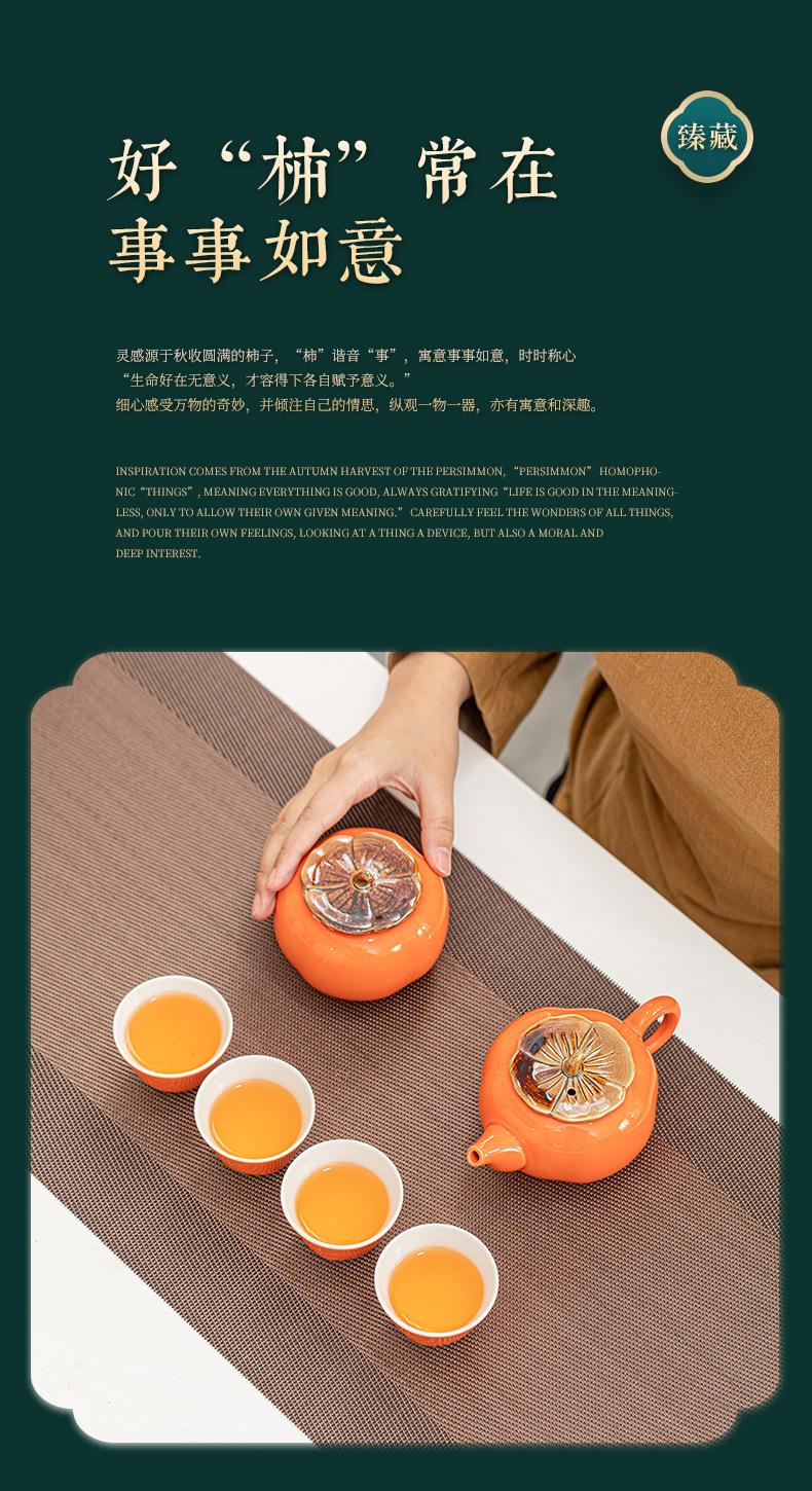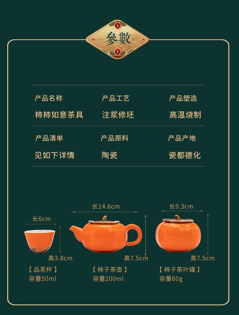 陶瓷柿柿事事如意茶具礼盒套装柿子茶壶茶叶罐婚庆礼品商务伴手礼