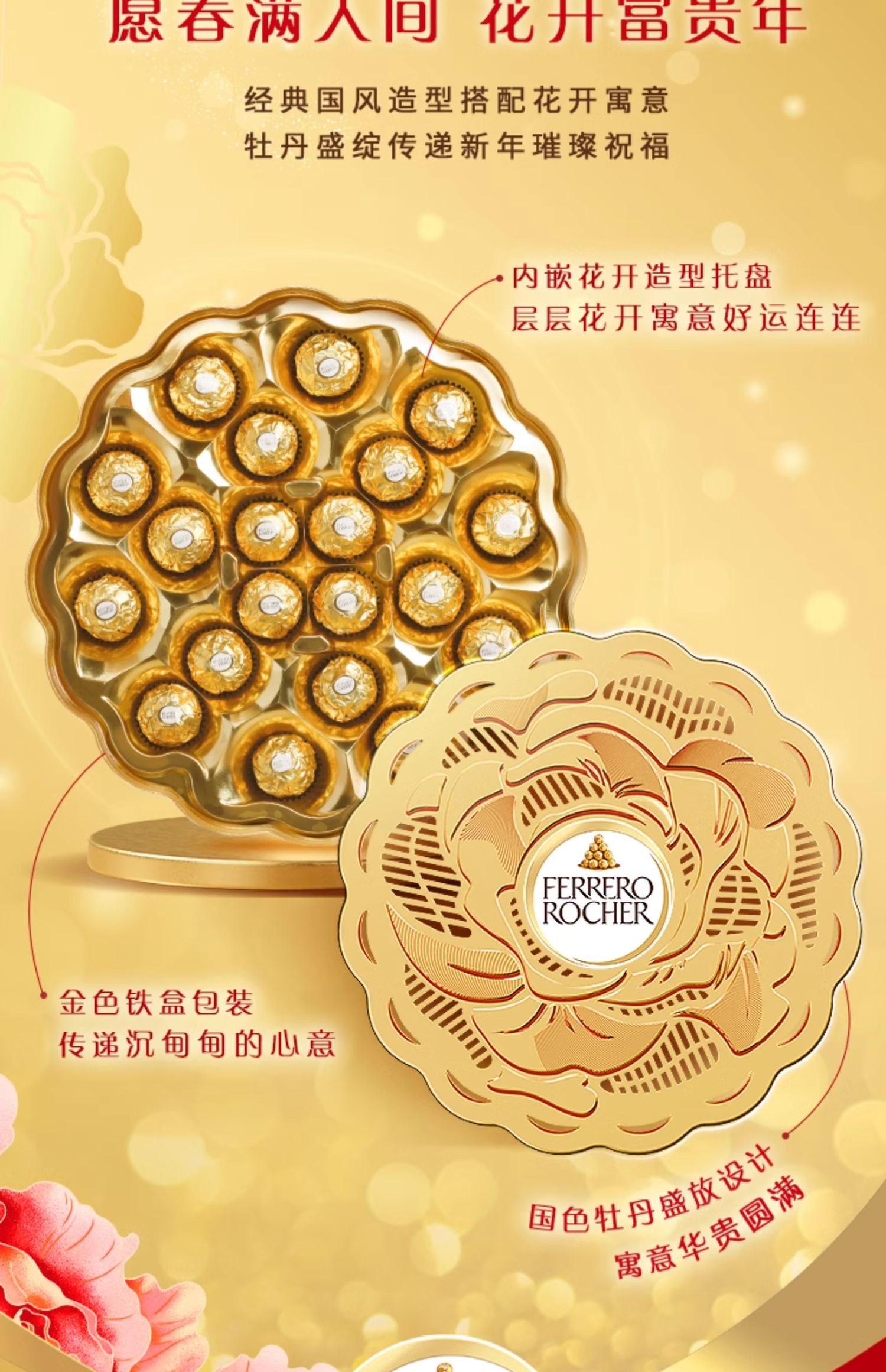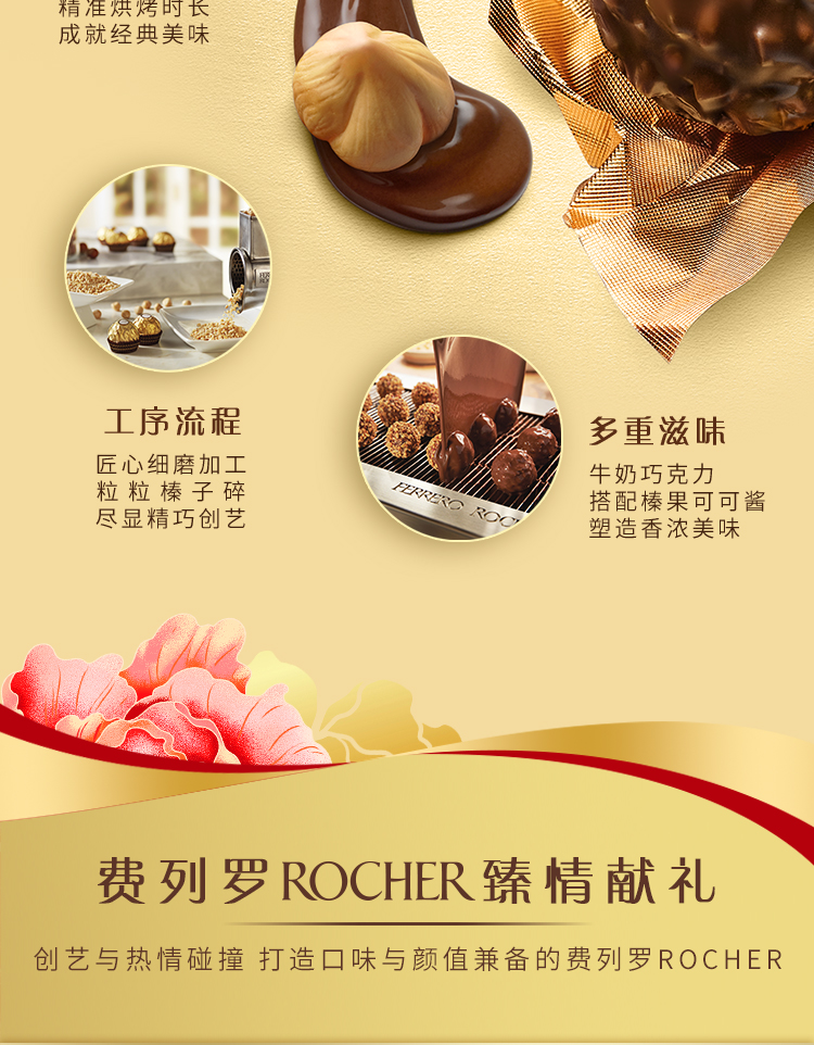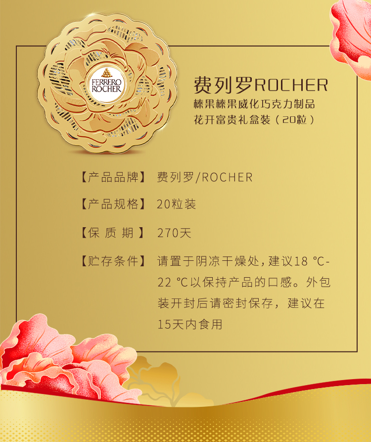 费列罗榛果威化巧克力制品礼盒装250g/043592 内嵌花开造型盘托20粒