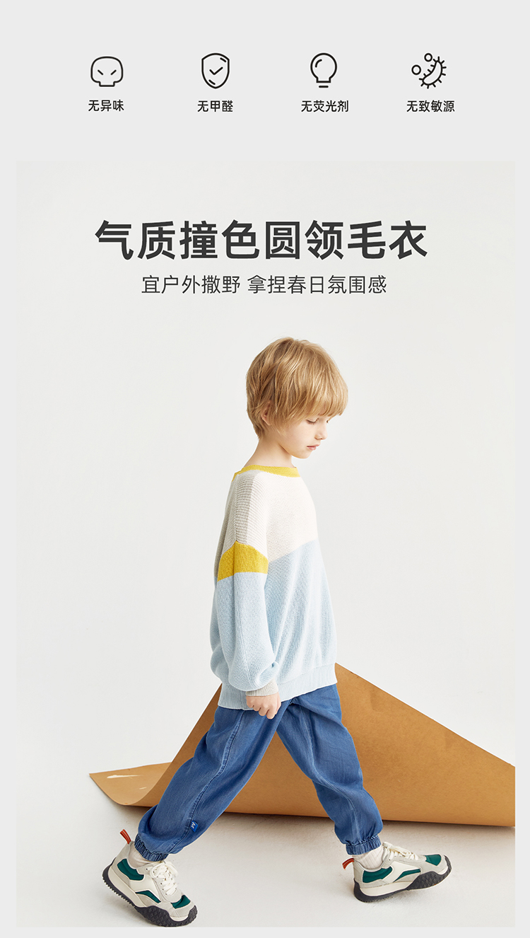 【咕噜日记】春季新款【软糯顺滑 不易起球】气质撞色圆领毛衣PCMY2313