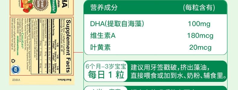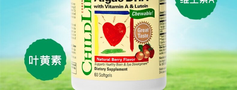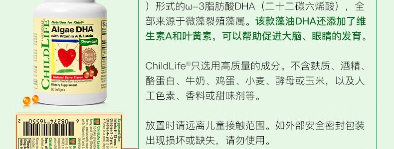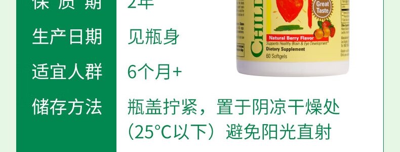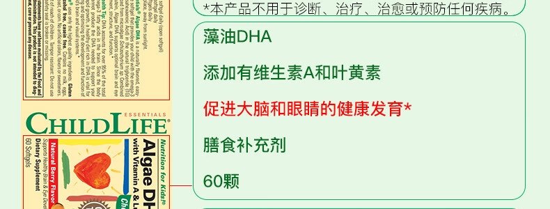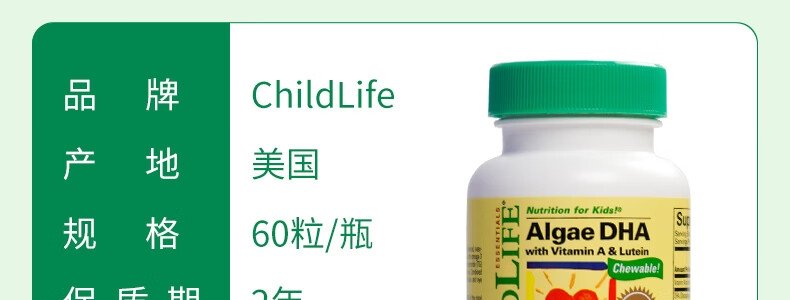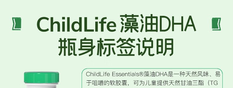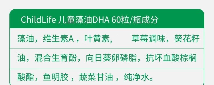 【保税】美国 童年Childlife 儿童DHA藻油胶囊 60粒/瓶 六个月可吃