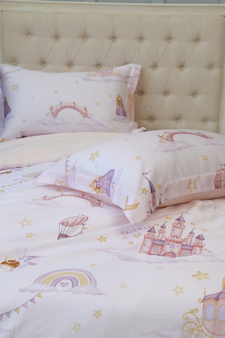 【代发】儿童天丝花色款 蓝铂四件套春夏款儿童床上用品(尺寸为被罩尺寸)
