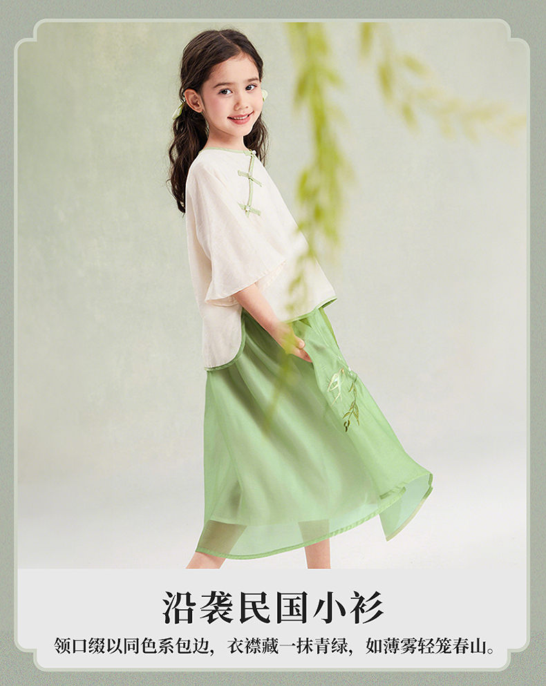 笛莎Deesha观山见女童套装2025夏季女童汉服套装