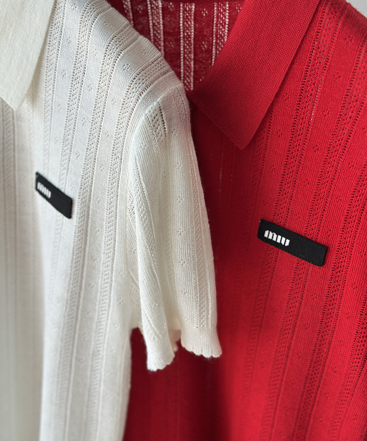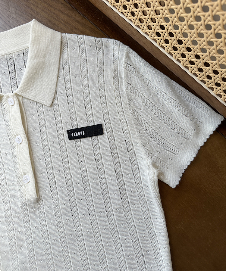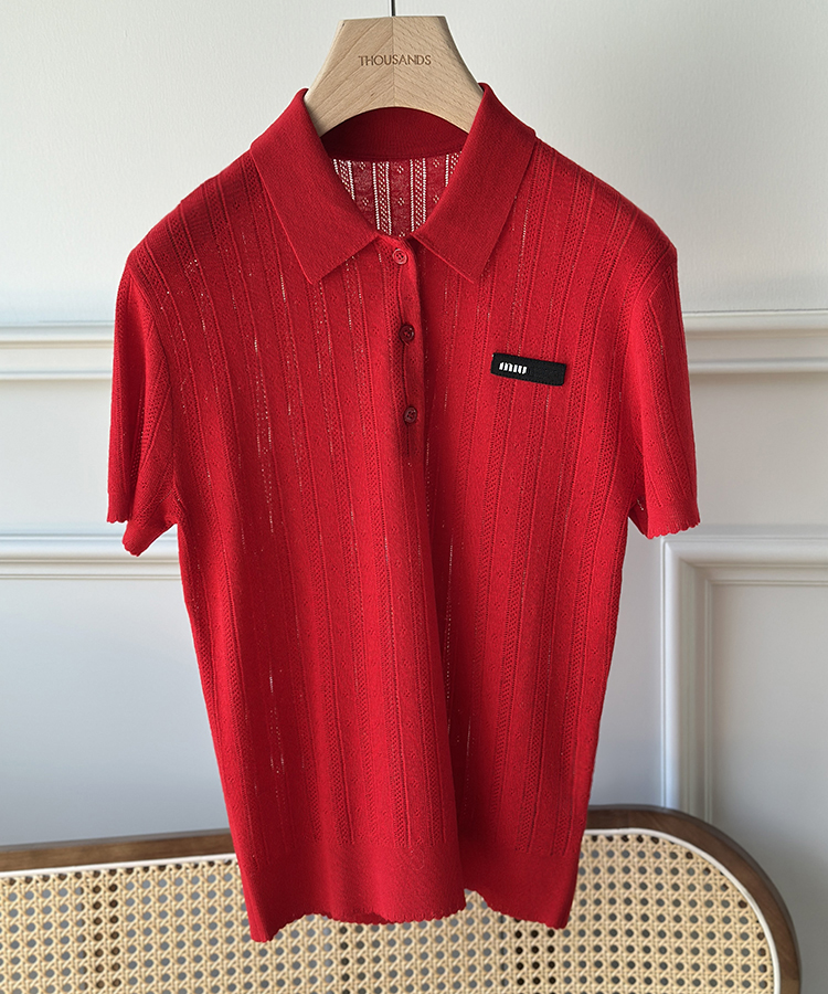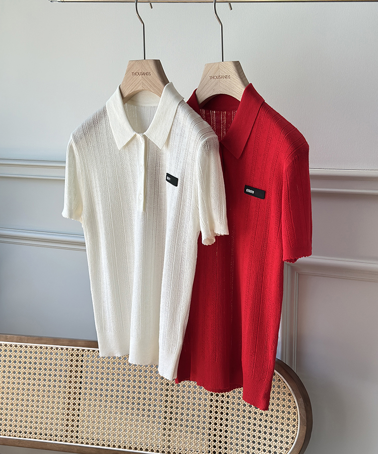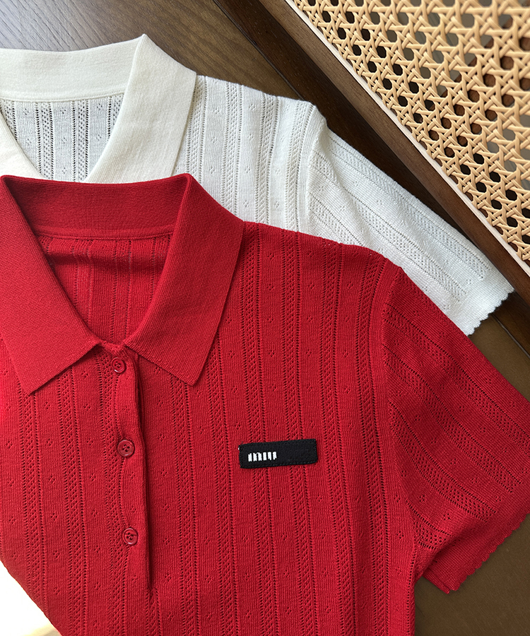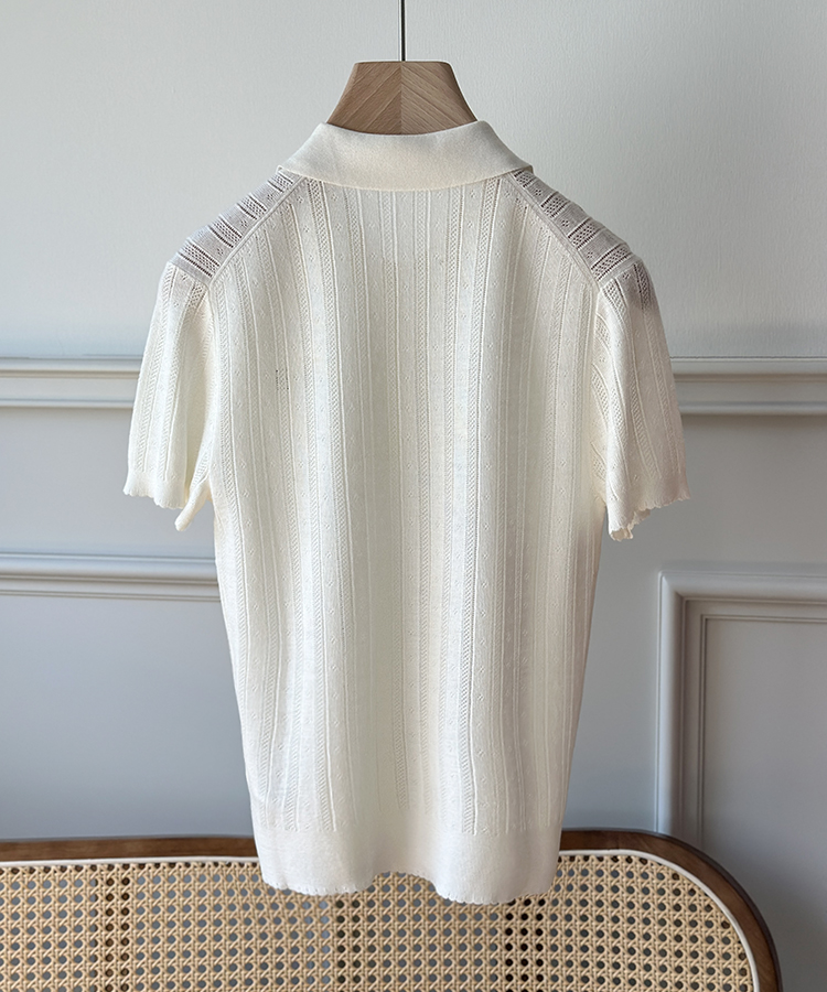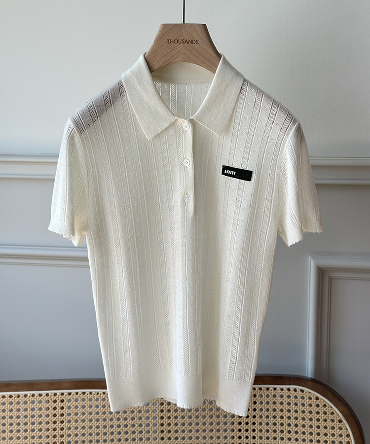 现货 THS-限时 缪家 翻领天丝羊毛针织镂空短袖上衣 2色 BH2597
