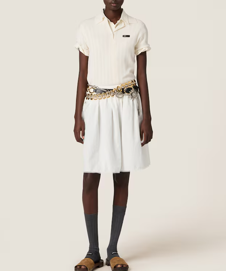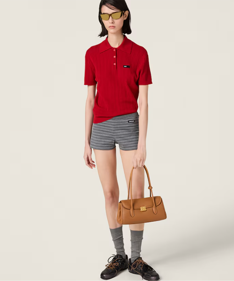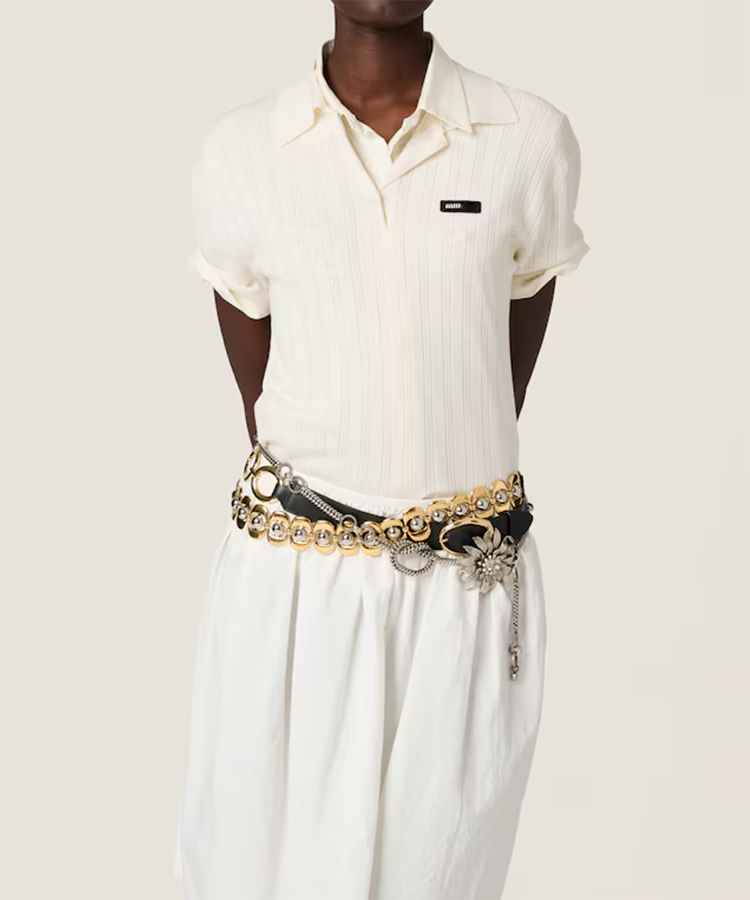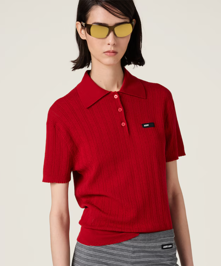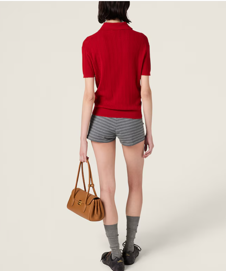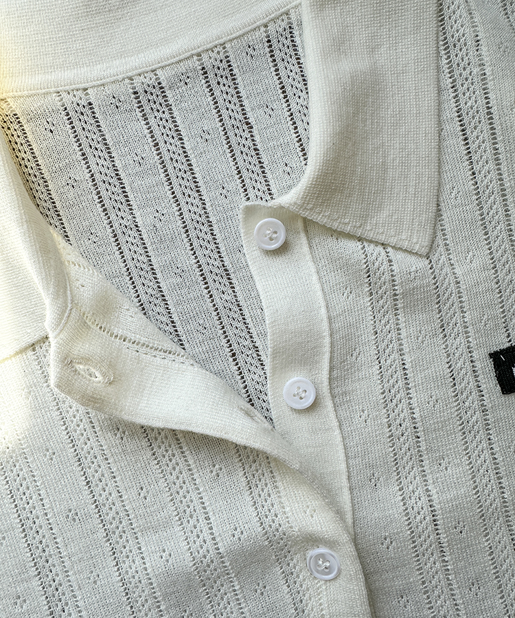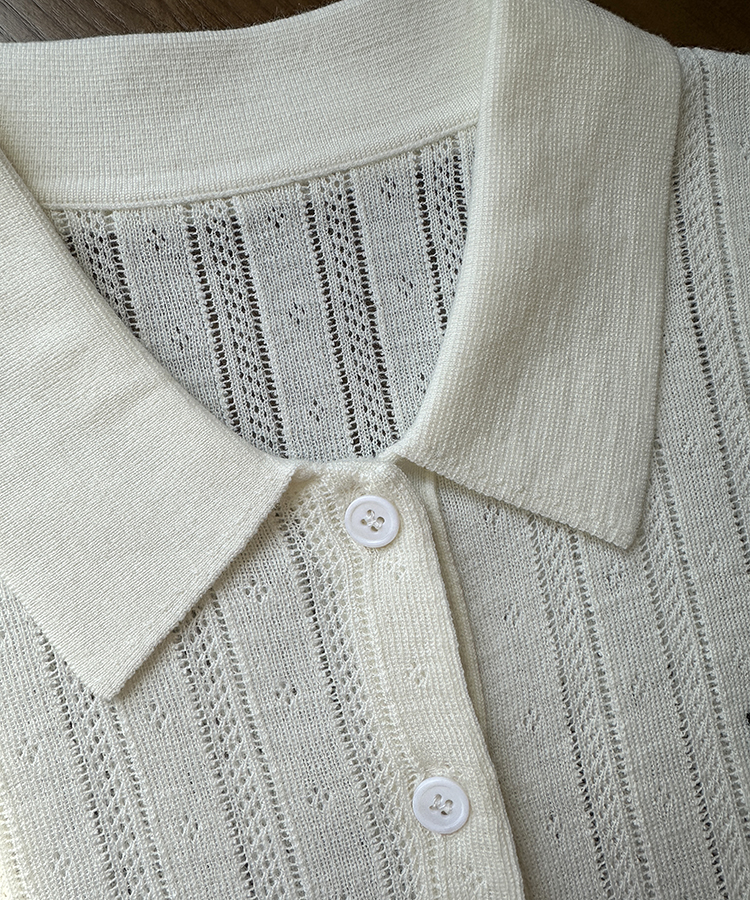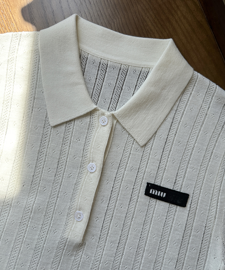 现货 THS-限时 缪家 翻领天丝羊毛针织镂空短袖上衣 2色 BH2597