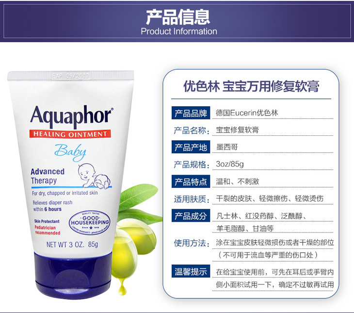 【保税仓】Eucerin优色林 万用膏婴儿儿童保湿面霜宝宝润肤霜85g