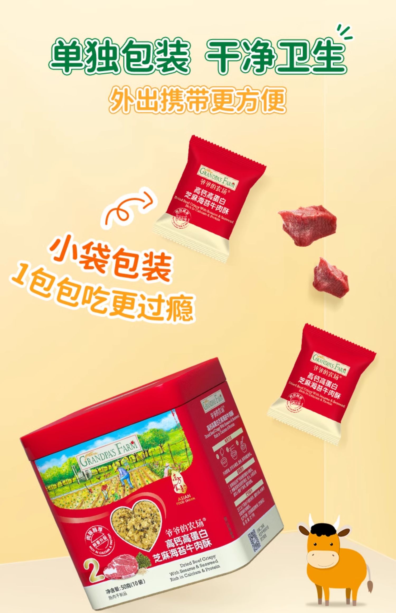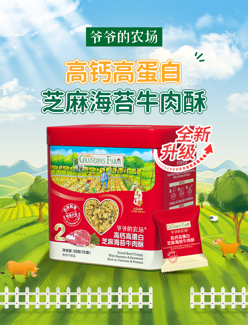 爷爷的农场高钙高蛋白芝麻海苔牛肉酥2盒
