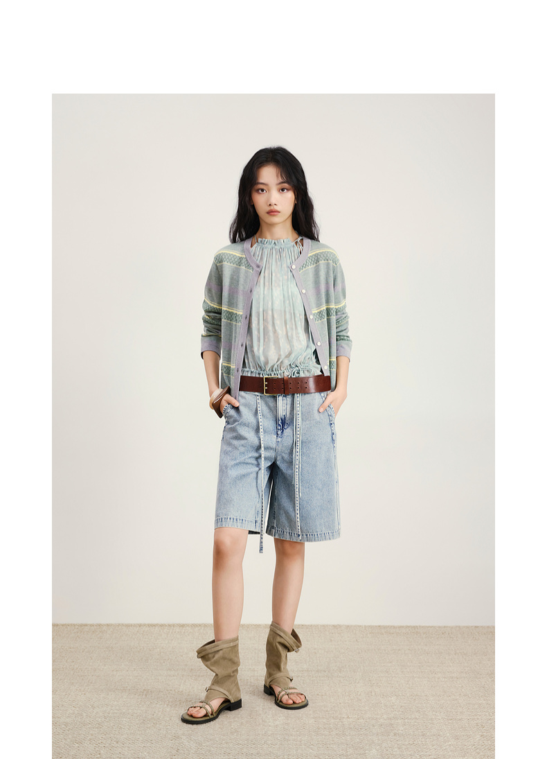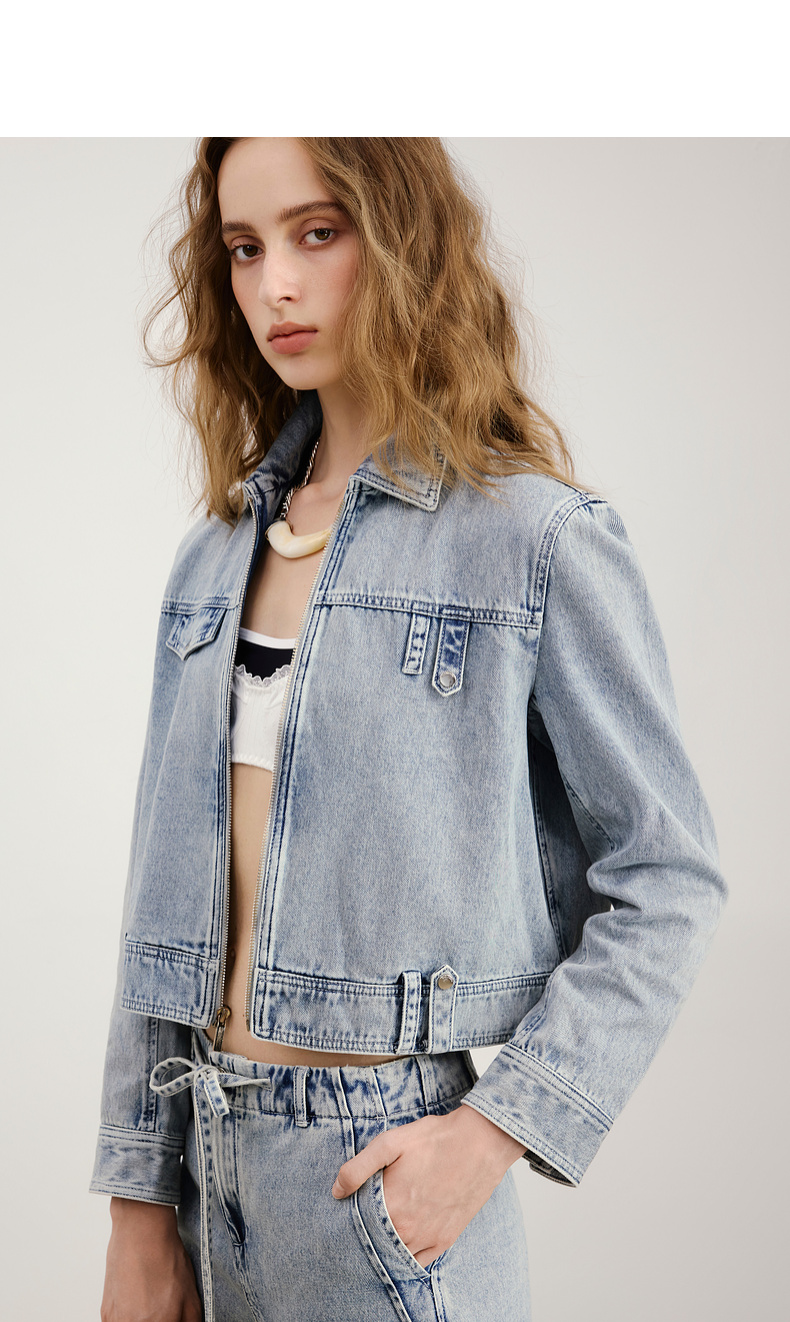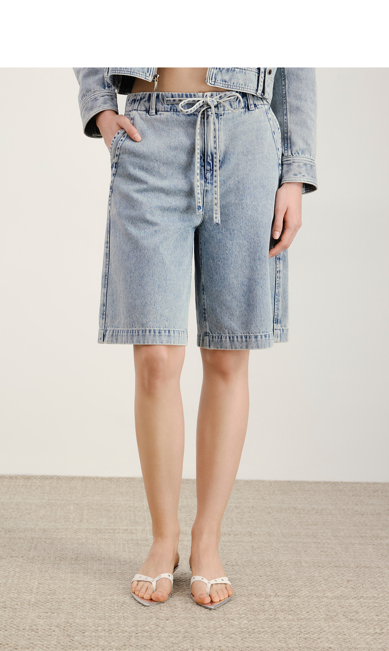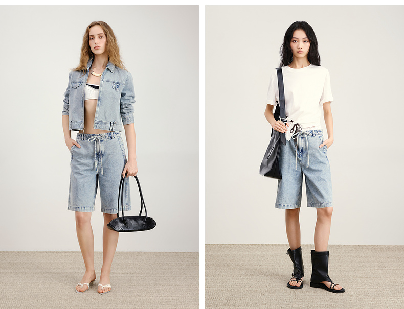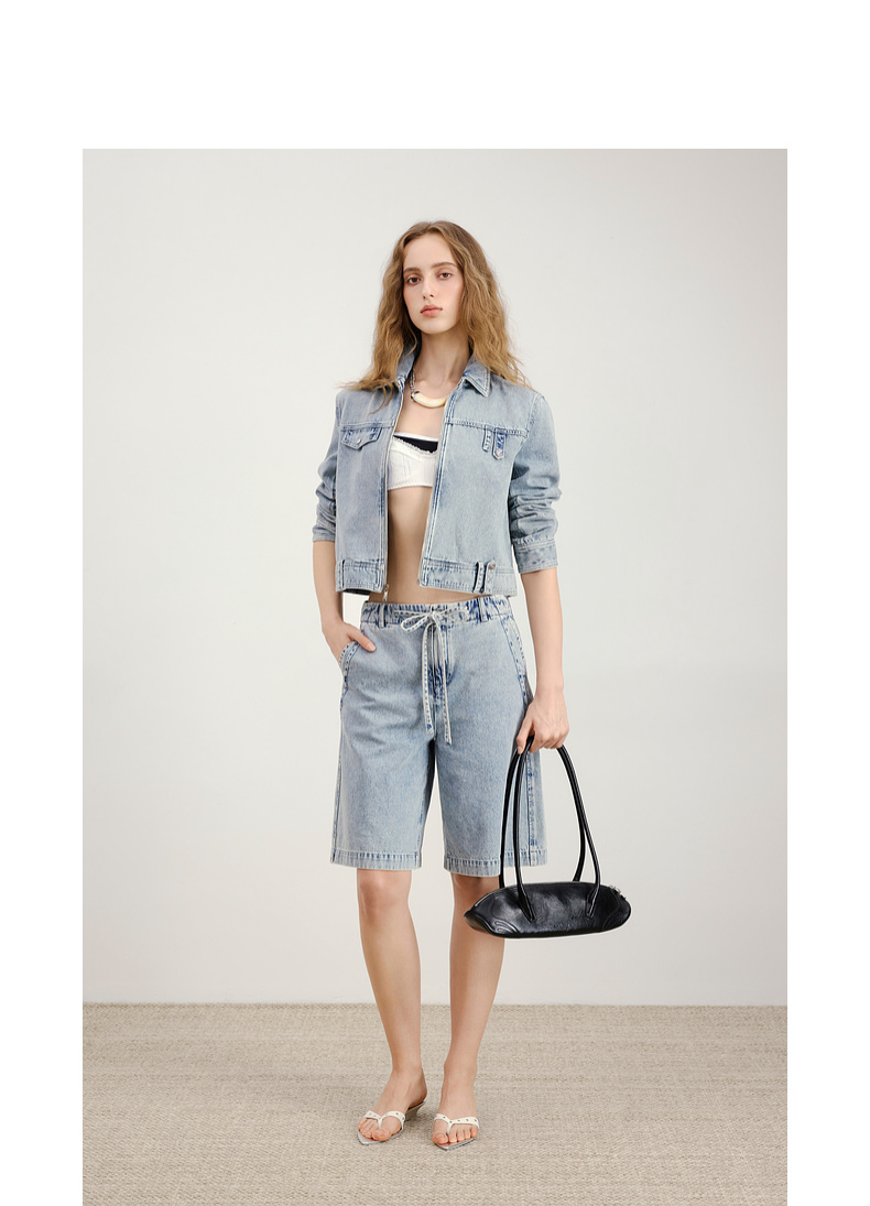 lost in echo2026年春夏新款不对称工装牛仔短外套抽绳中裤套装女