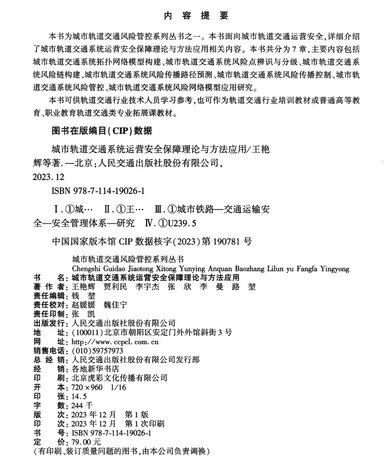 书名:城市轨道交通系统运营安全保障理论与方法应用