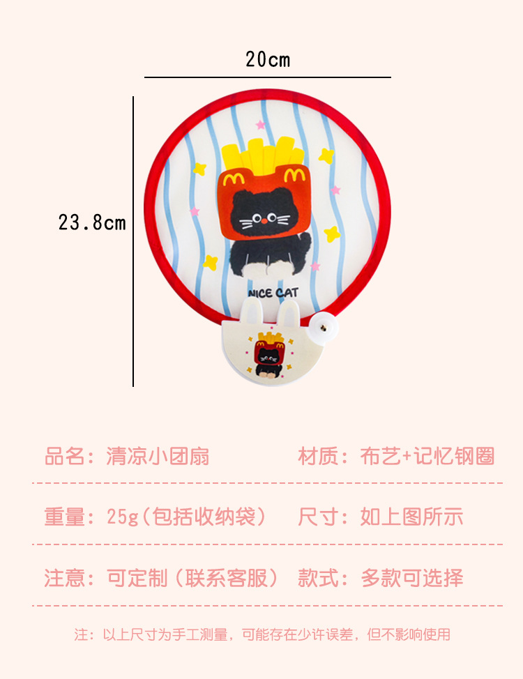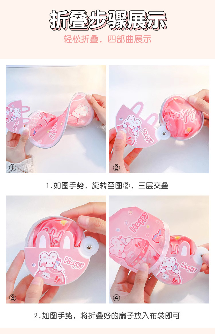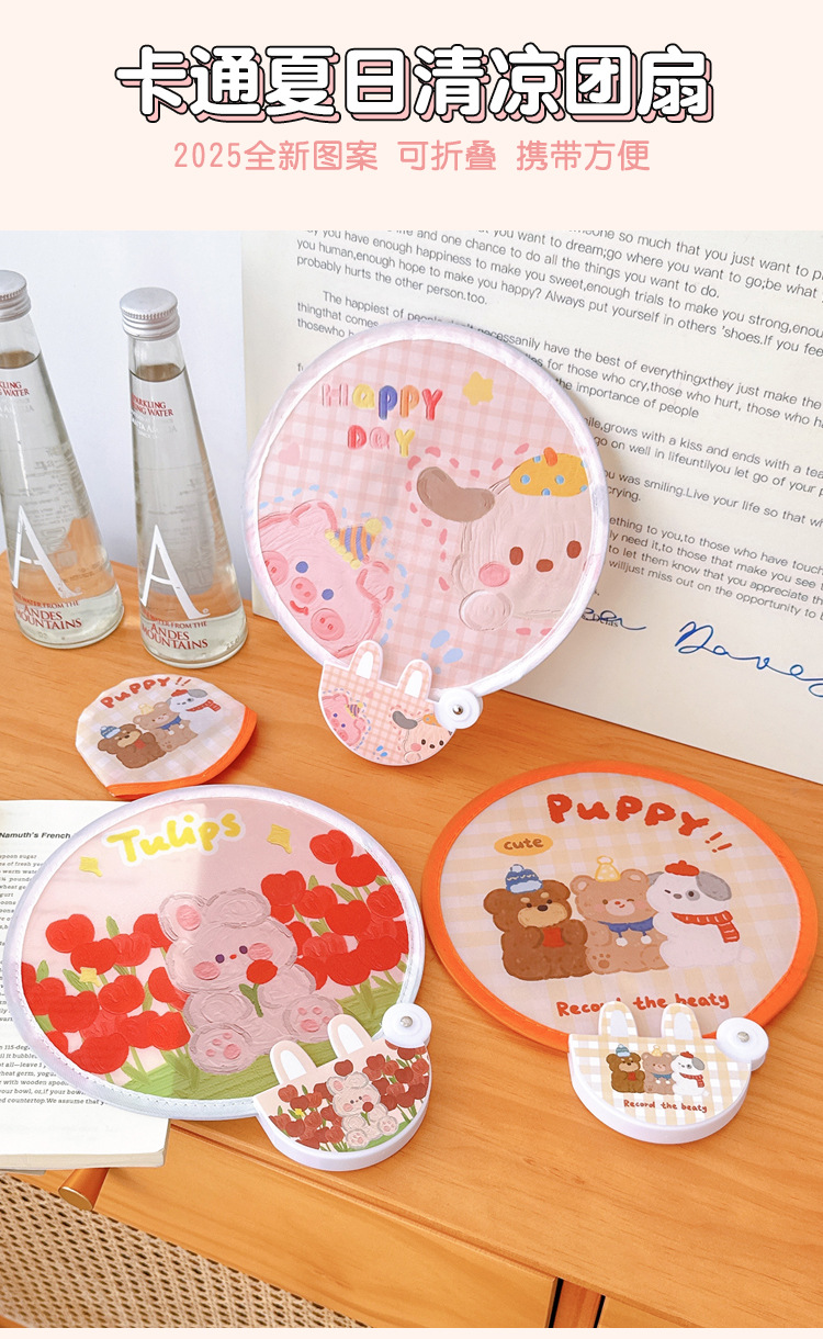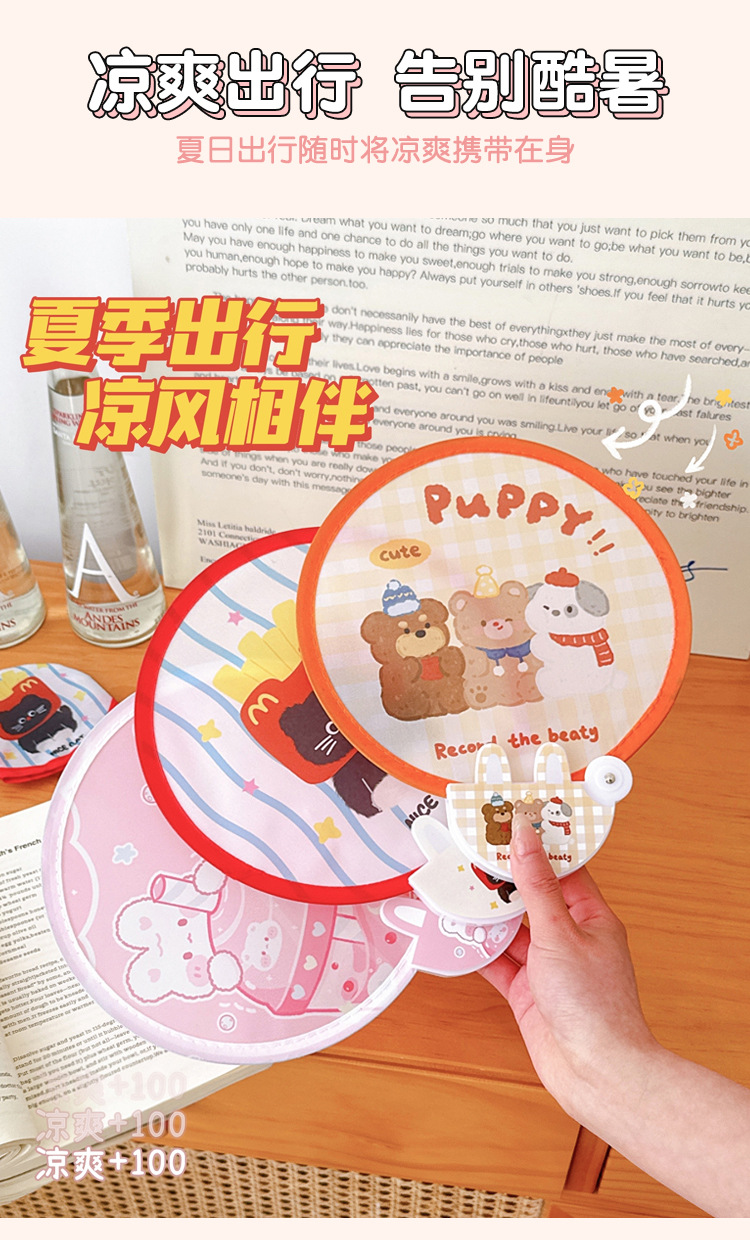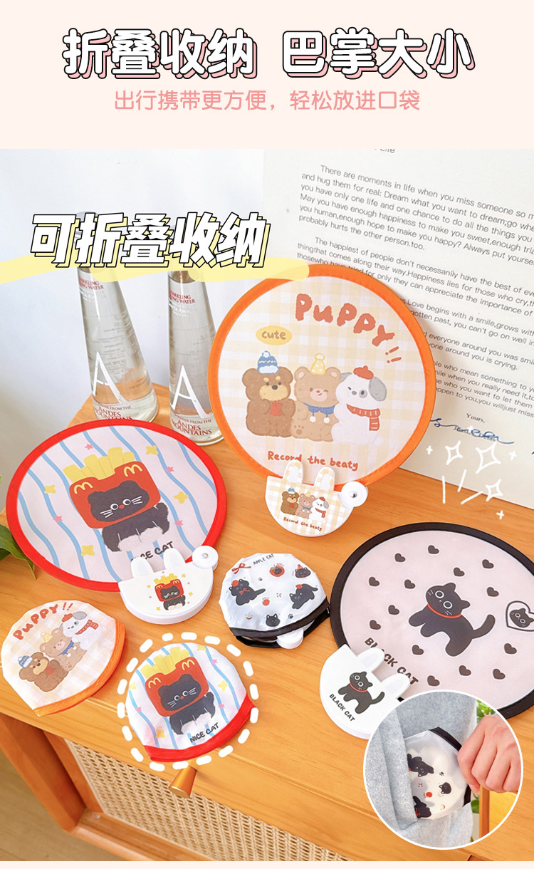 【醒粉福利7.9元3个】随身便携带折叠圆形小扇子 卡通可爱迷你户外随身携带小扇子