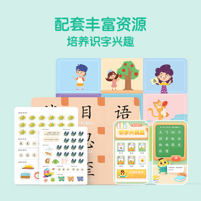 《摩比爱识字》是一套解决学龄期儿童识字困难,帮助孩子从识字过度到阅读。包含7本书和识字卡片、扫码学汉字、听音频、学游戏等教辅。(1)1000个高频字,涵盖部编本小学语文一年级300个生字。(2)情景识字结合字源字理,了解汉字背后的文化。(3)记忆秘诀和科学编排相结合。(4)产品丰富,趣味强。6本识字书,1本字源字理书,1000个汉字字卡,游戏视频、6本书音频和扫码学汉字和游戏通关等。帮助3-6岁学龄前儿童抓住识字关键期,从识字轻松过渡到阅读。趣味性学习,激发孩子识字的兴趣,培养良好的阅读习惯。