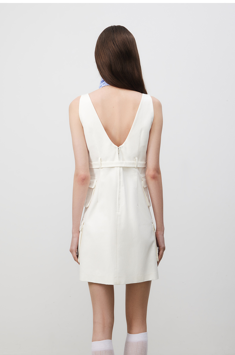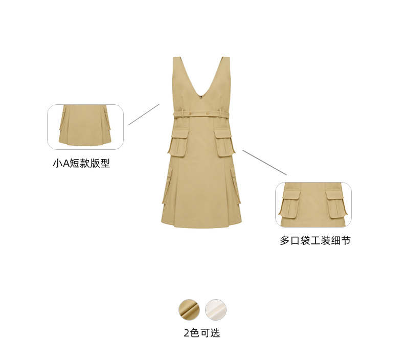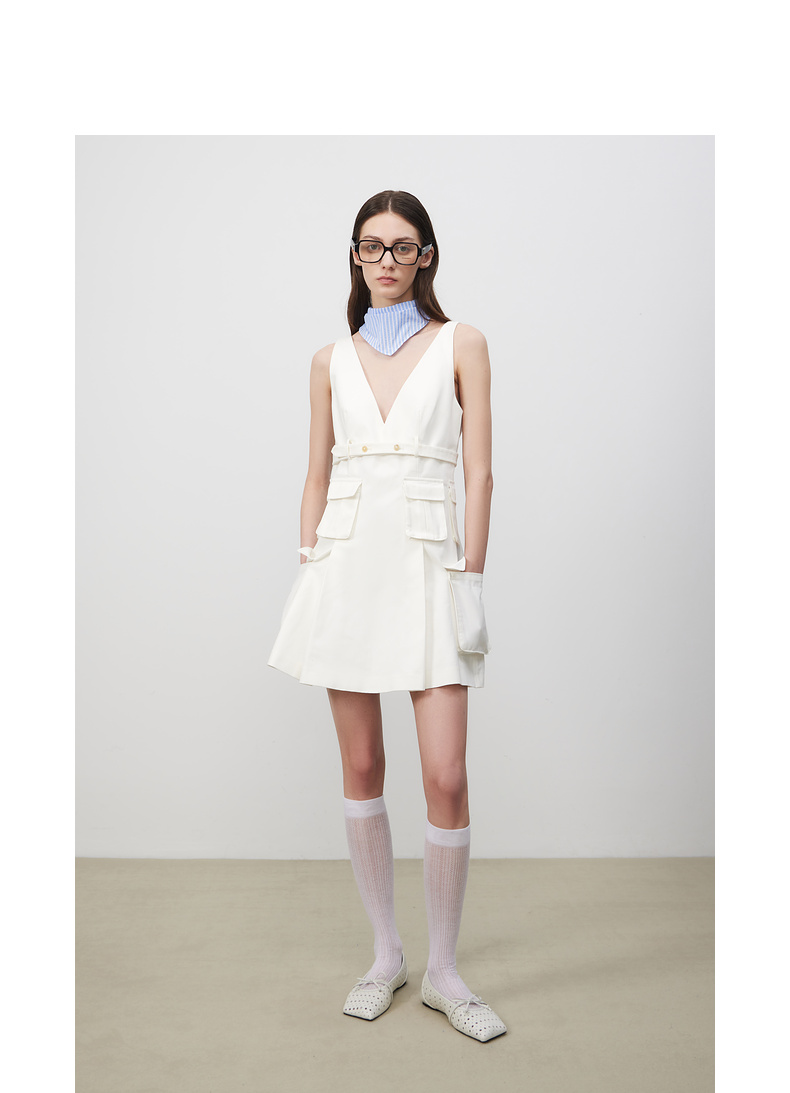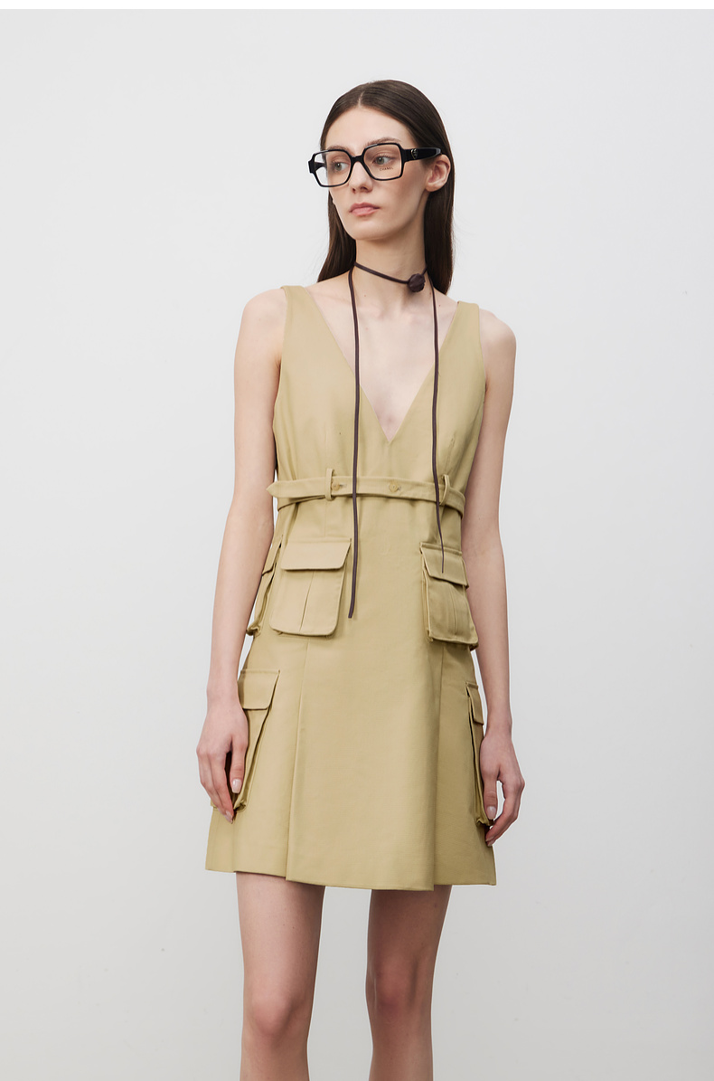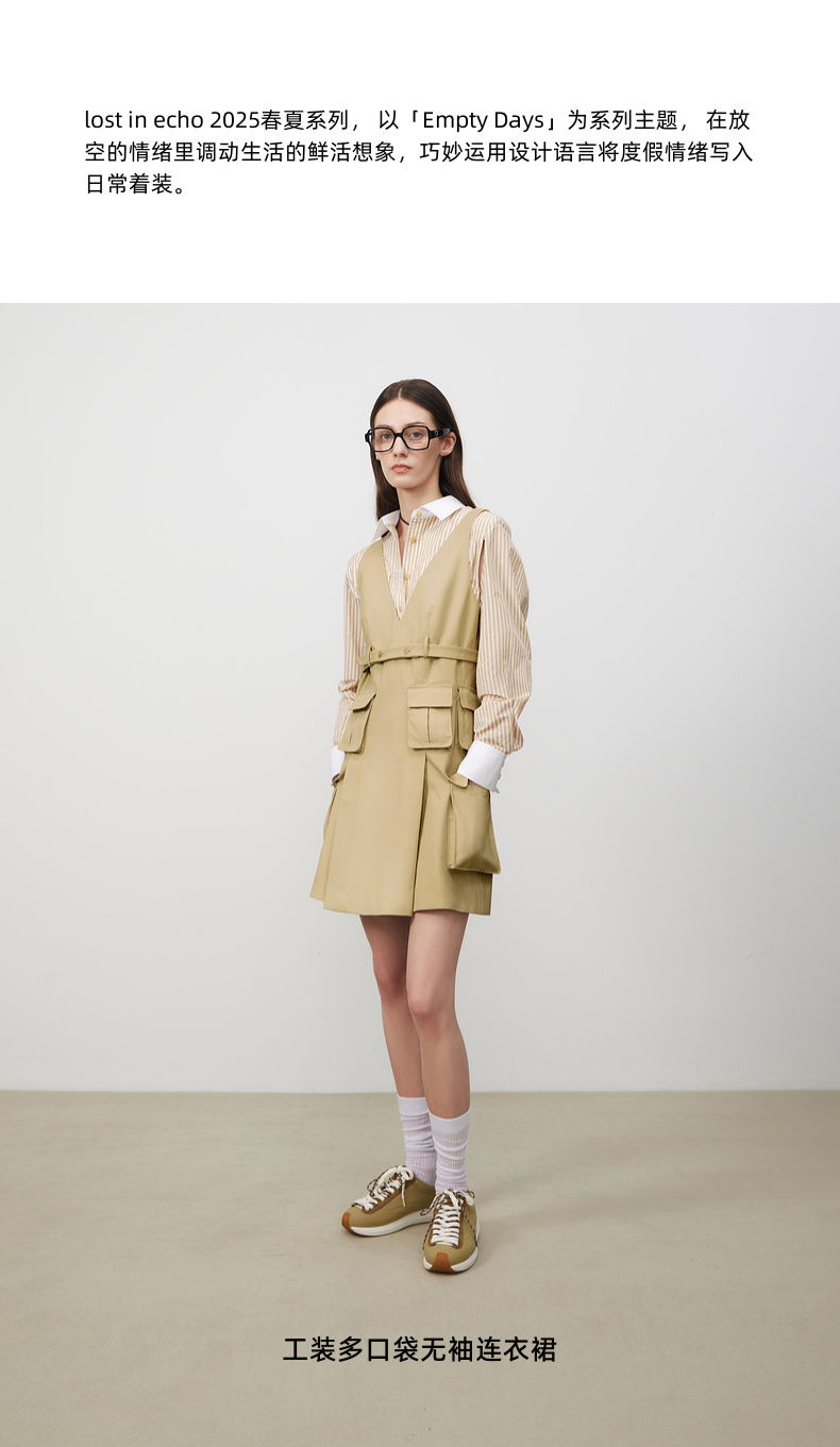 lost in echo2025春夏新款时尚工装多口袋V领无袖短款连衣裙女