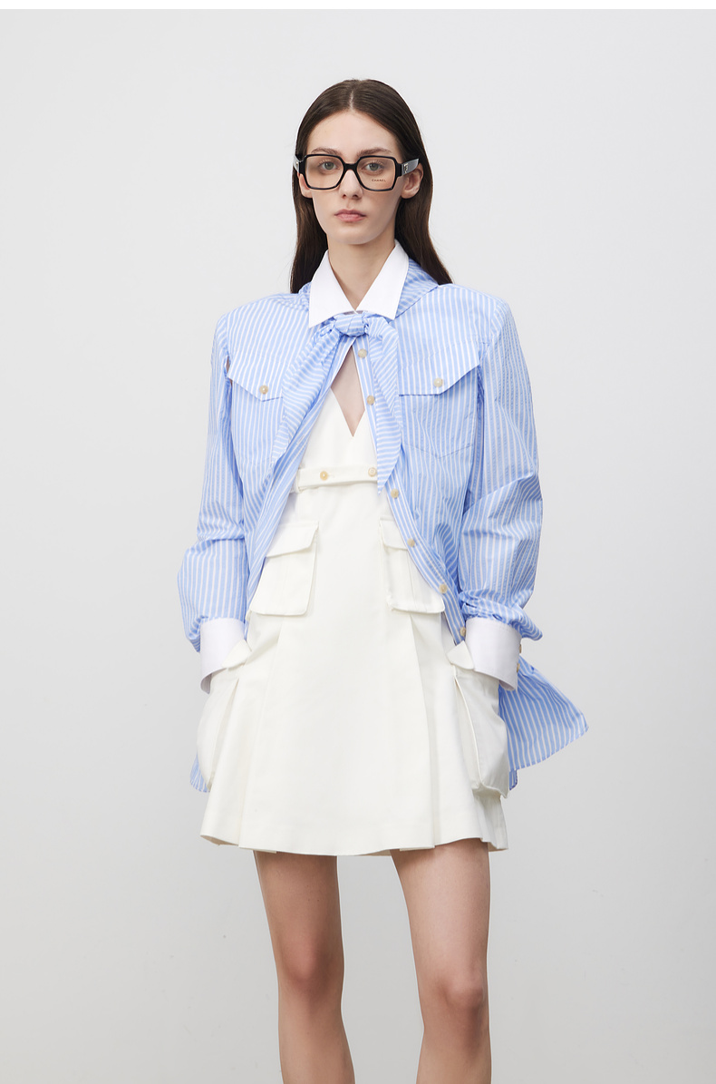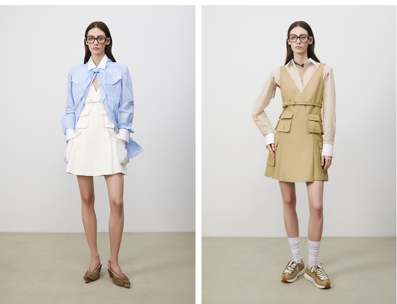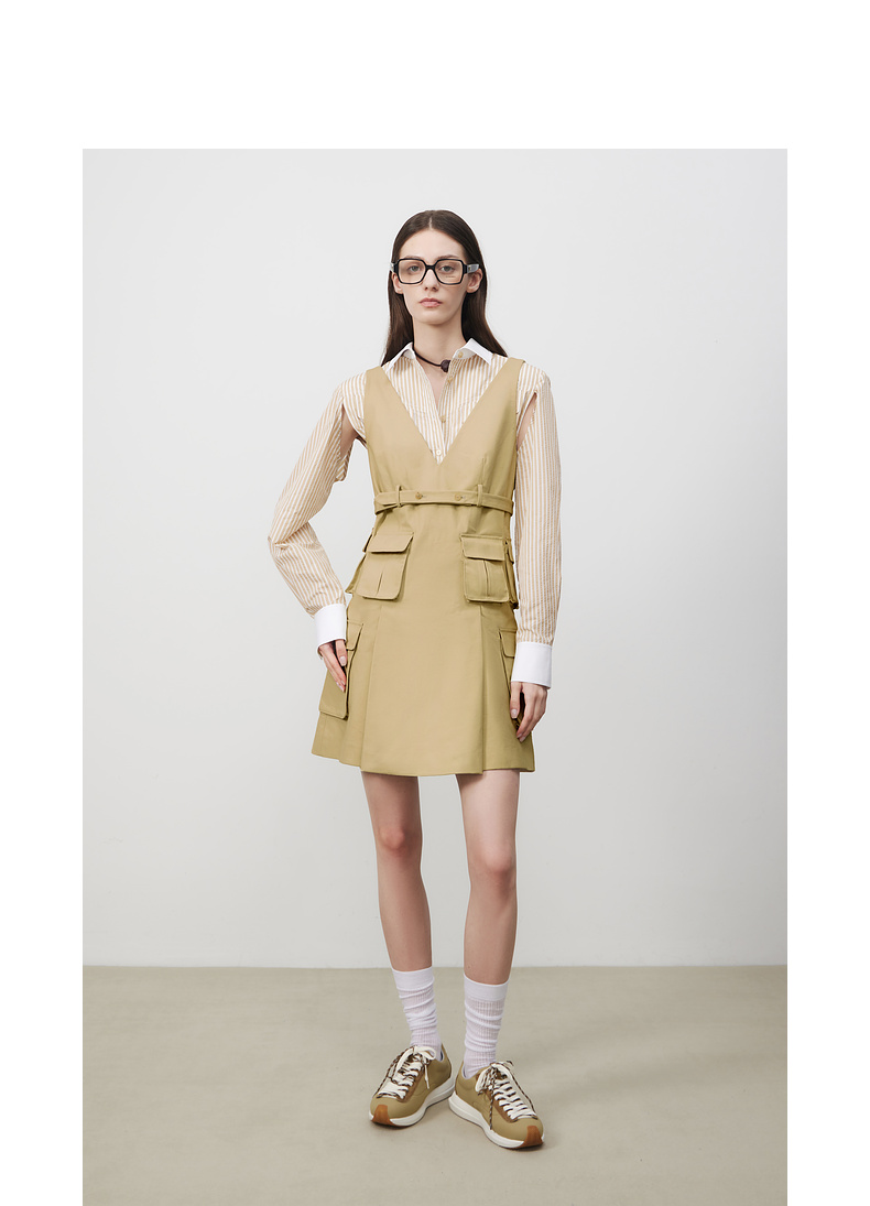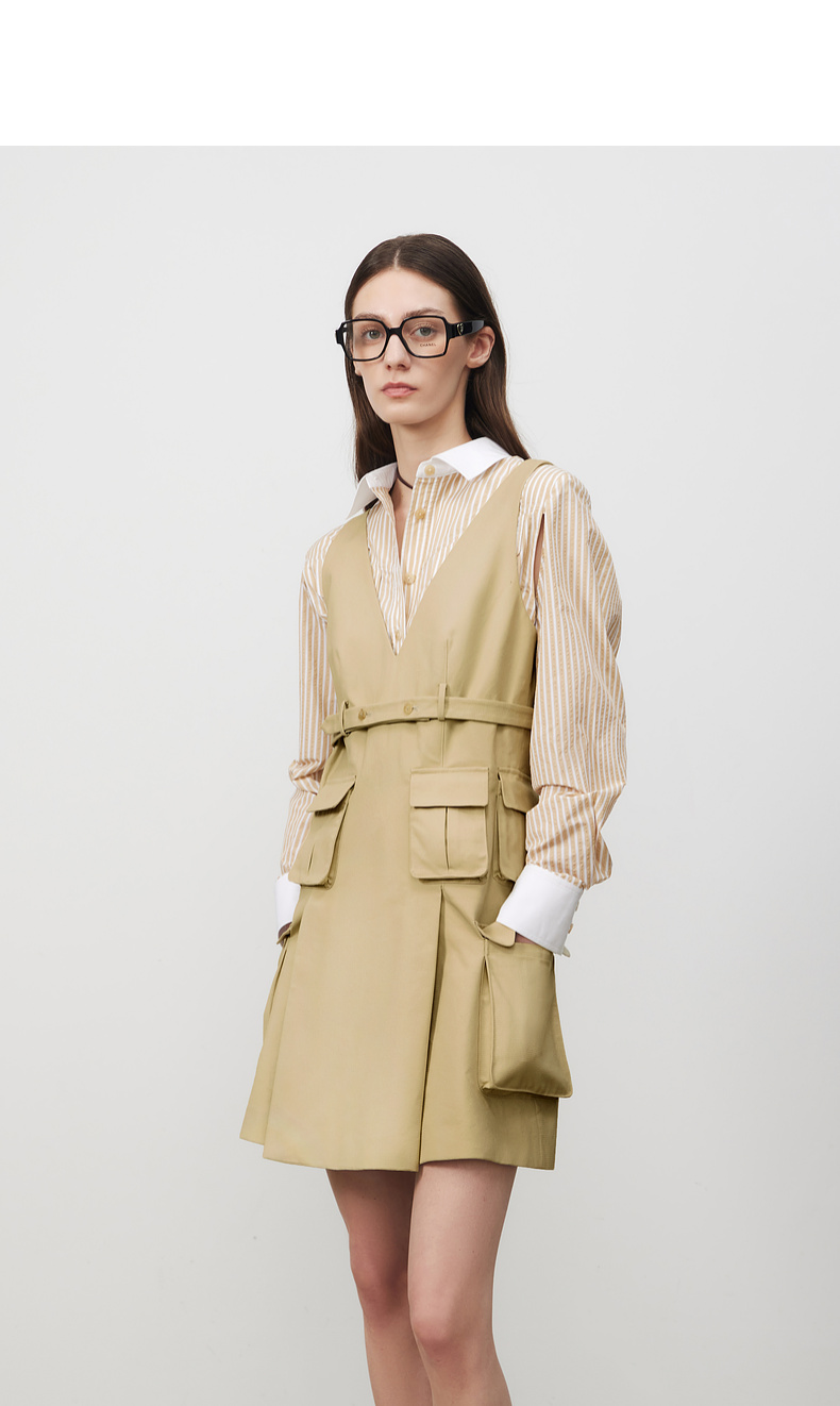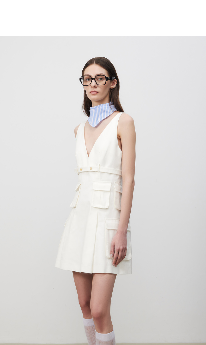 lost in echo2025春夏新款时尚工装多口袋V领无袖短款连衣裙女