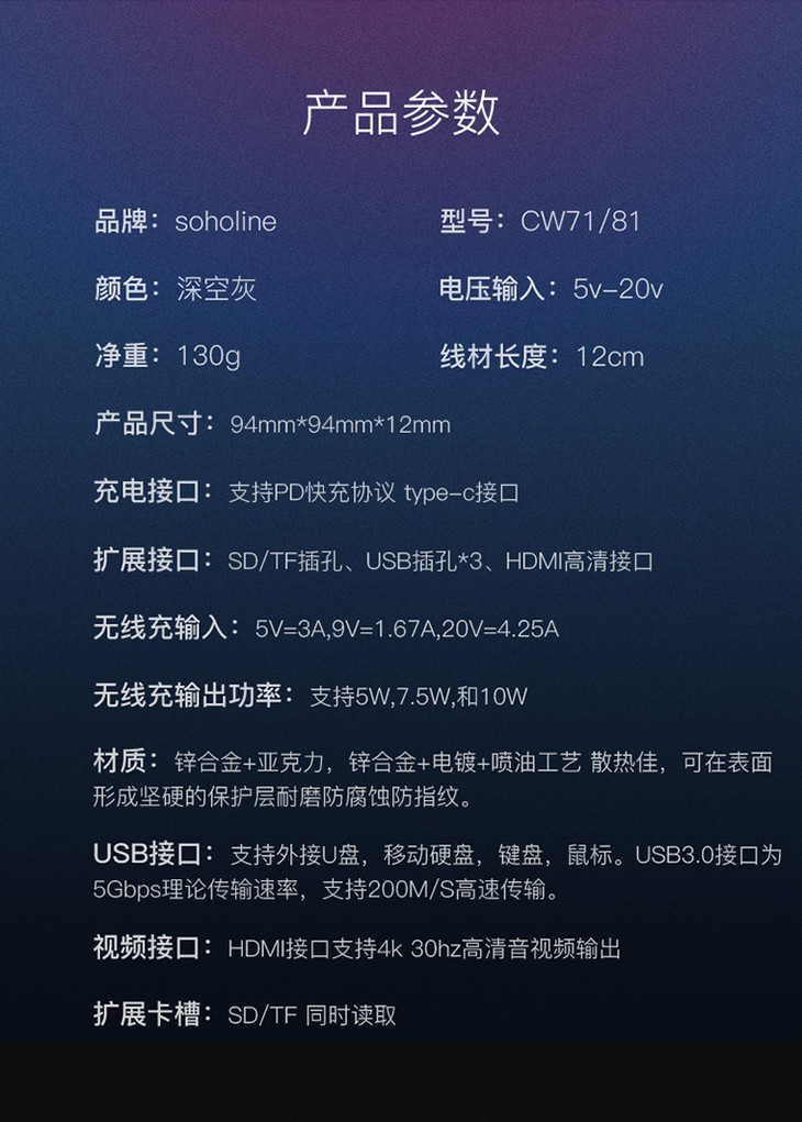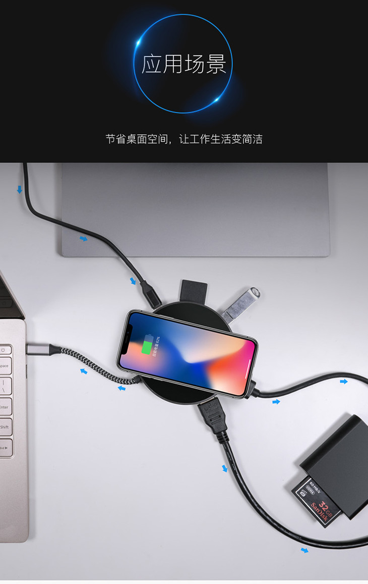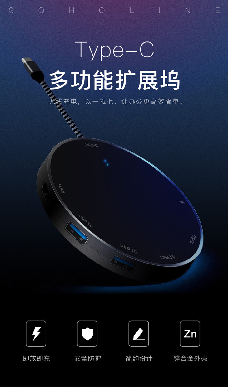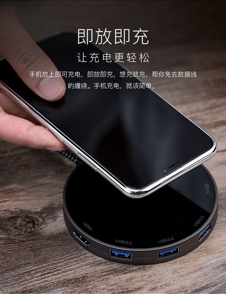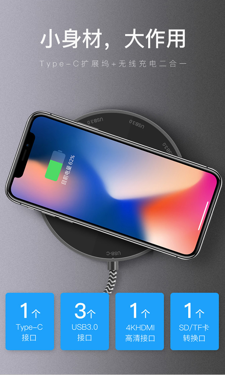 Type-C扩展坞+无线充电二合一多功能无线充