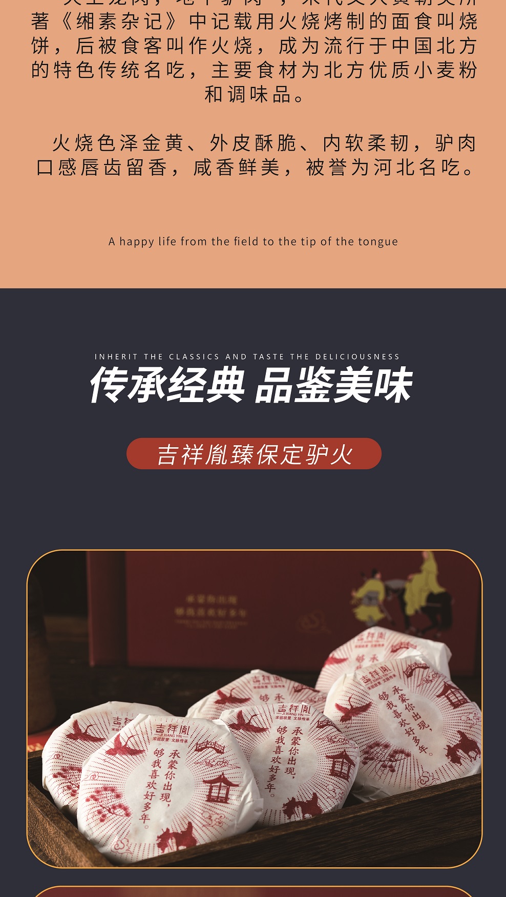 温馨提示:驴火收到尽快食用,口感最佳。如不立即食用,需冷冻保存,化冻后加热食用。