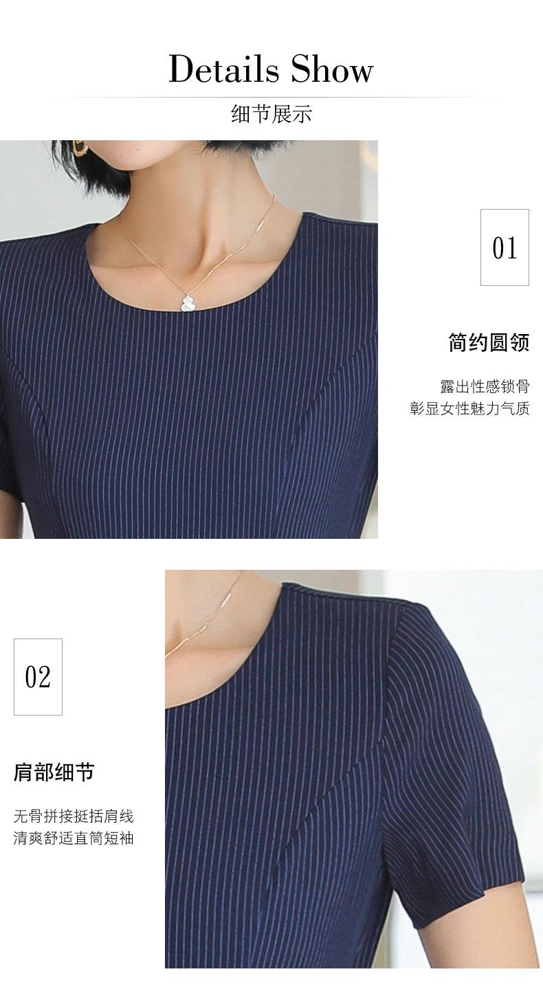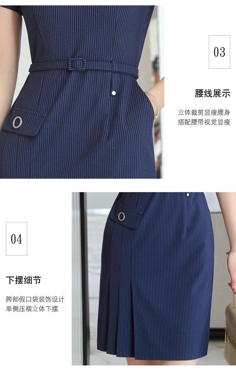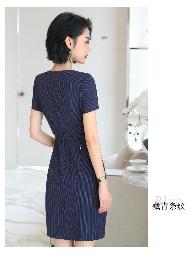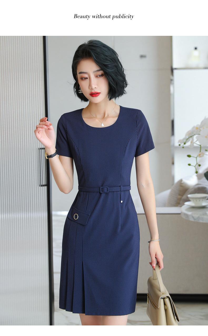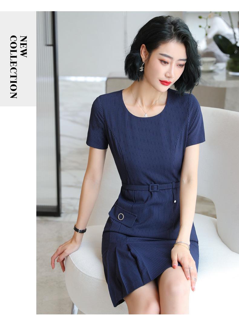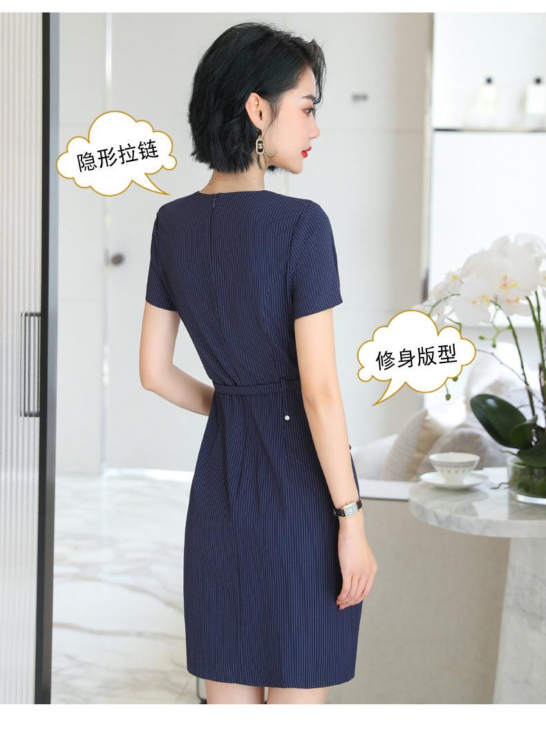 娜璐多 条纹短袖连衣裙薄款2023夏新款设计感通勤OL裙子女收腰显瘦高级感