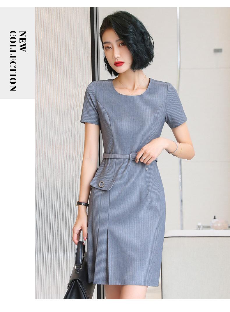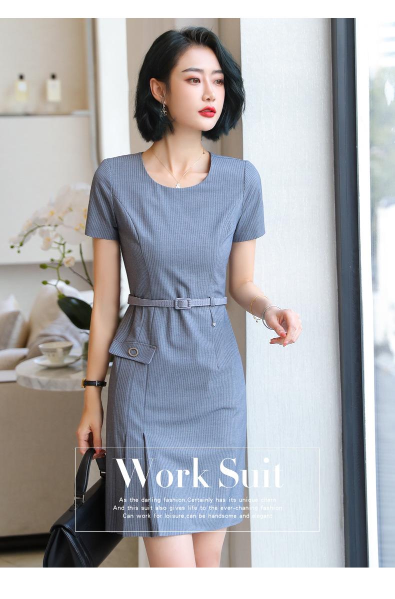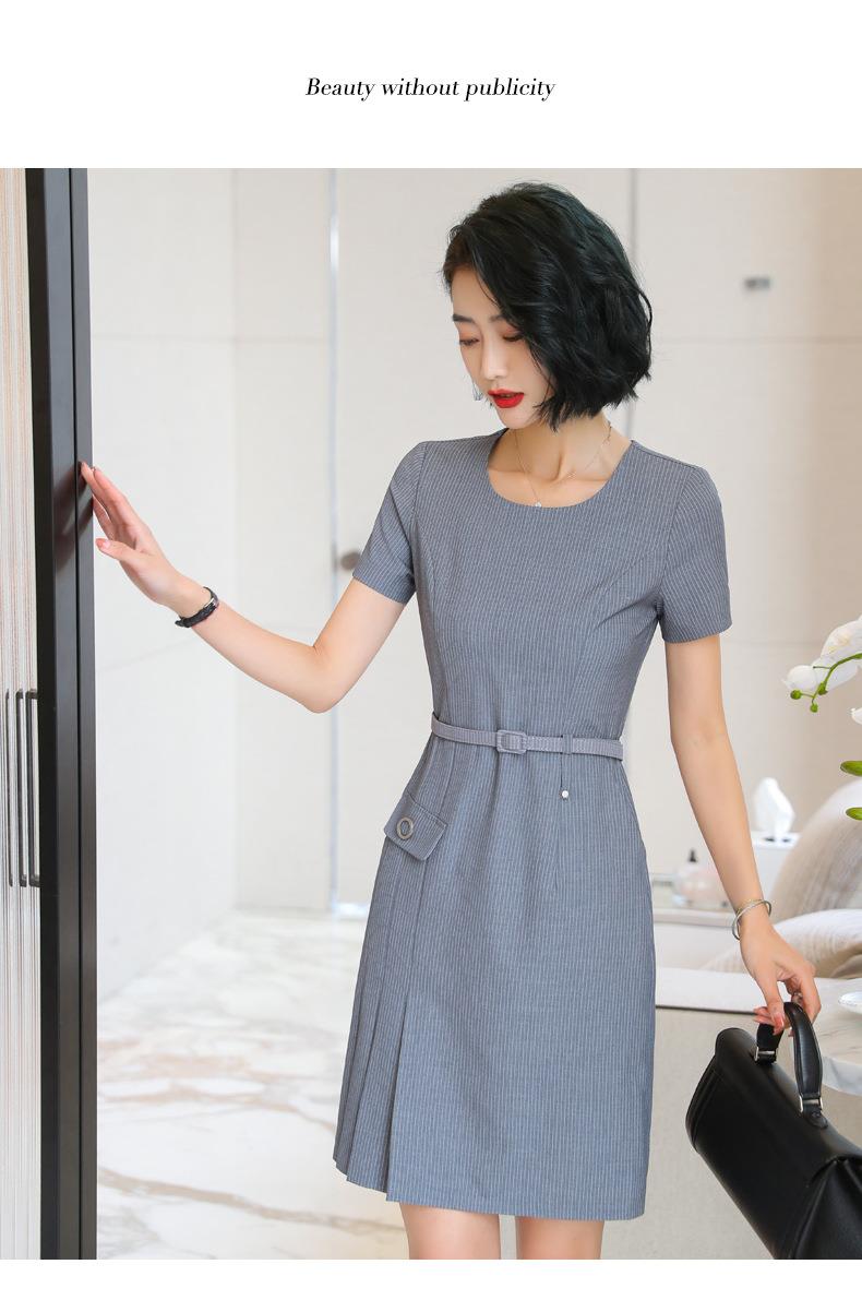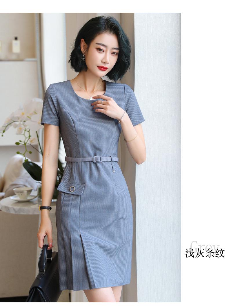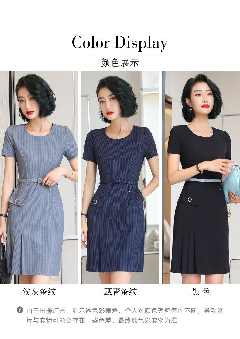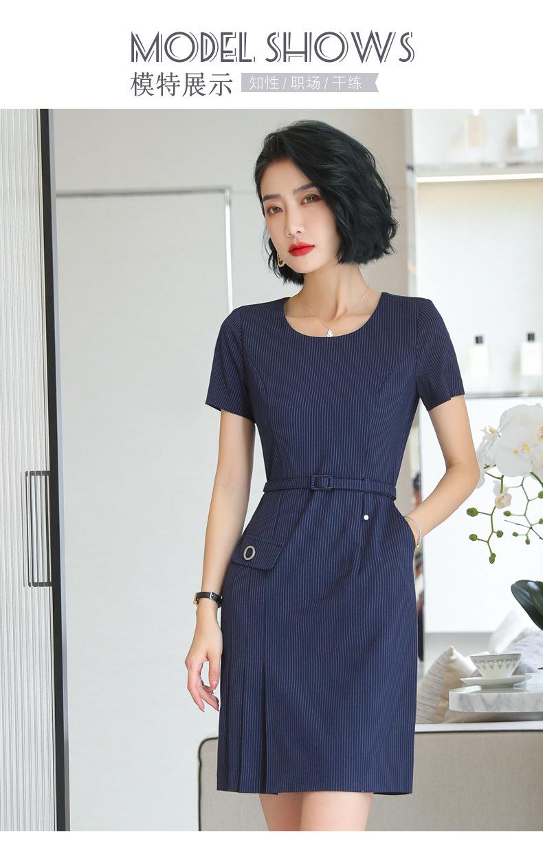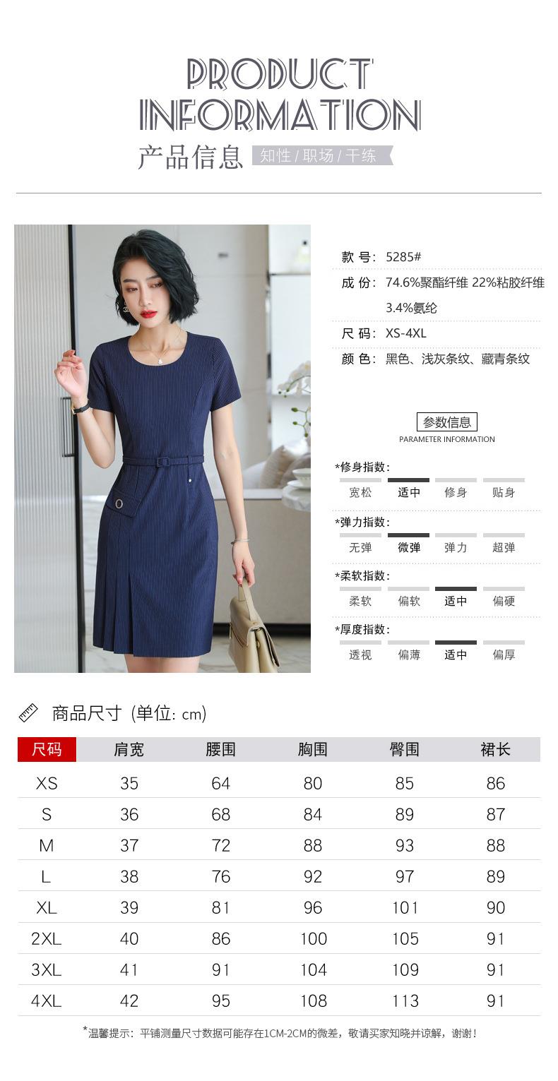 娜璐多 条纹短袖连衣裙薄款2023夏新款设计感通勤OL裙子女收腰显瘦高级感