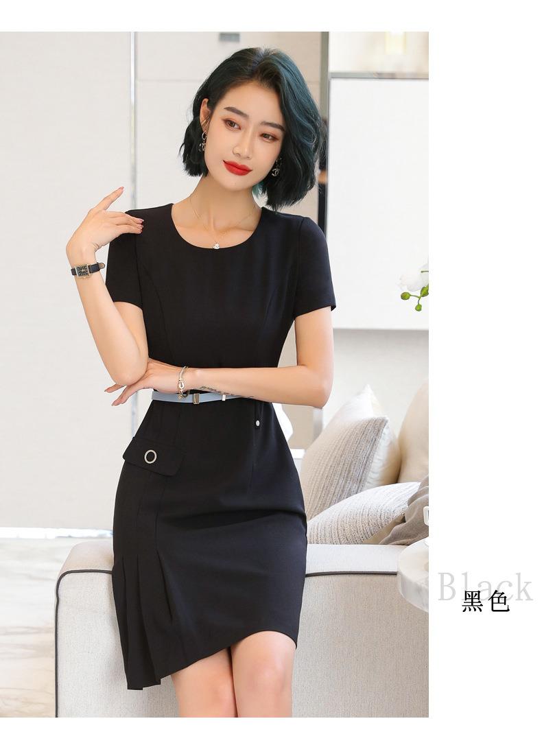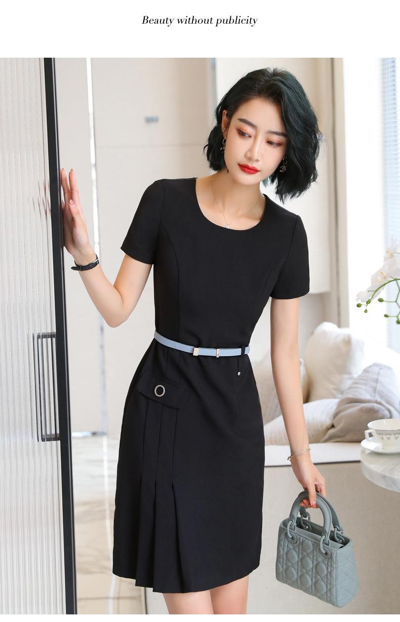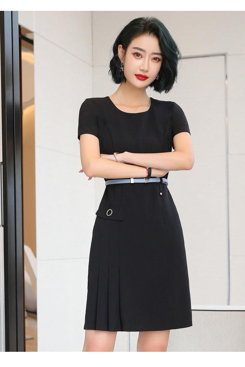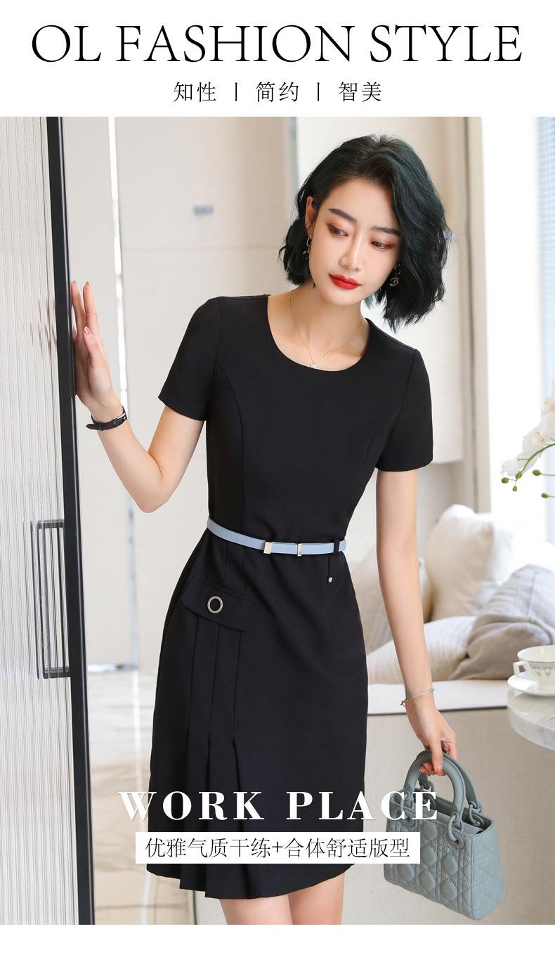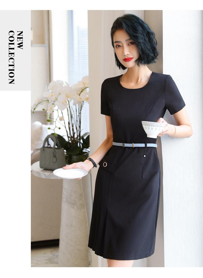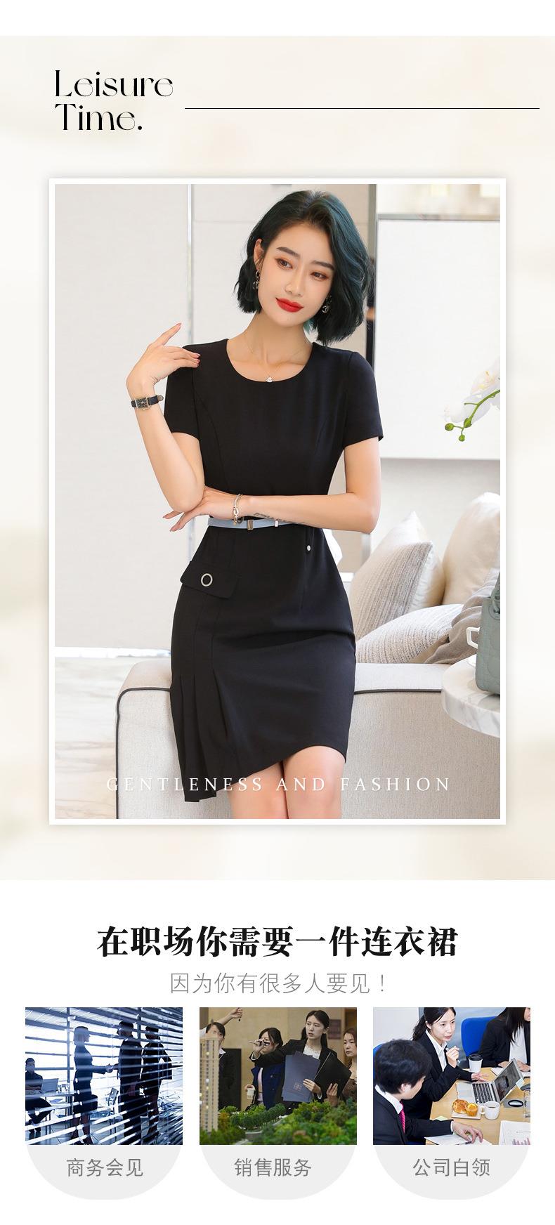 娜璐多 条纹短袖连衣裙薄款2023夏新款设计感通勤OL裙子女收腰显瘦高级感