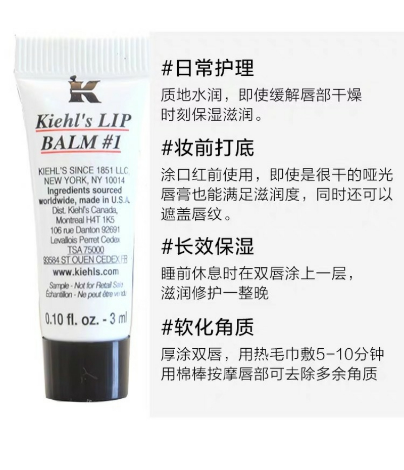 【YZ】3ml*3支科颜氏唇膏1号护唇膏1#润唇膏滋润修护