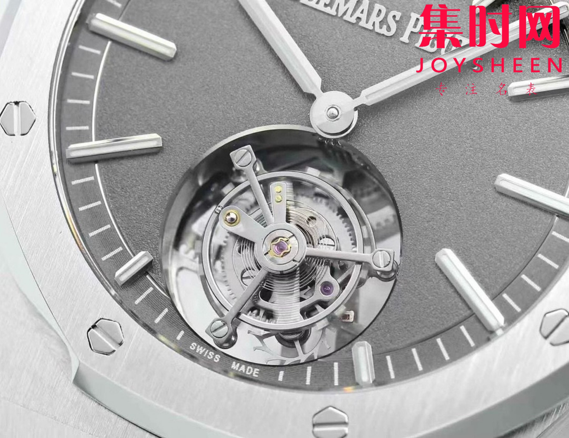【贵重物品】新款爱彼BBS皇家橡树陀飞轮系列 “自动上链陀飞轮腕表”26530ST 男士腕表 表径41mm 瑞士高级制表品牌爱彼(Audemars Piglet)推出皇家橡树系列自动上链浮动式陀飞轮腕表,搭载爱彼最新一代自产机芯,搭载定制Calibre2950全自动上链陀飞轮机械机芯,将浮动式陀飞轮与中央自动摆陀相结合,巧妙融合工艺技术与美学精髓,展现爱彼世代相承、不断精进的制表工艺。