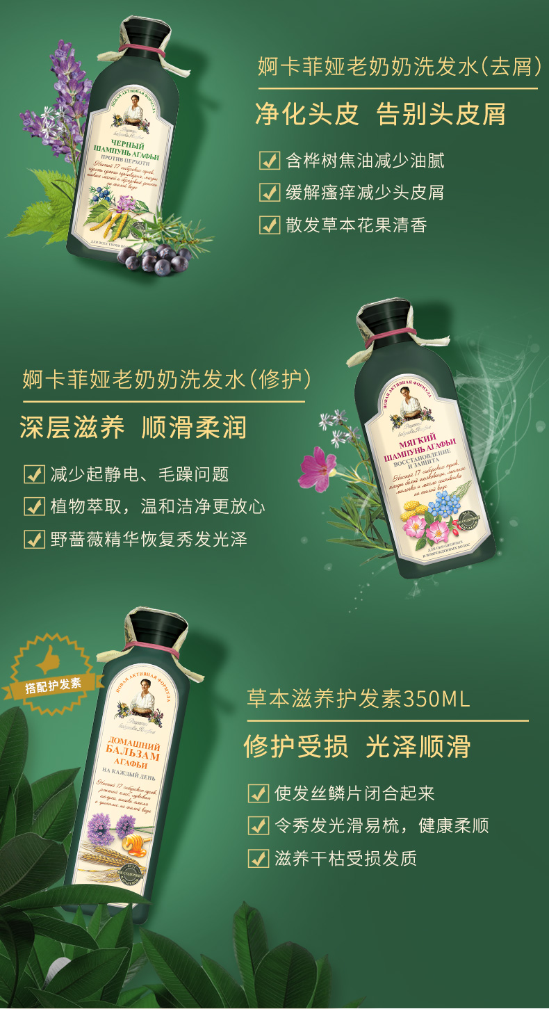 俄罗斯进口 婀卡菲娅老奶奶经典洗发水
