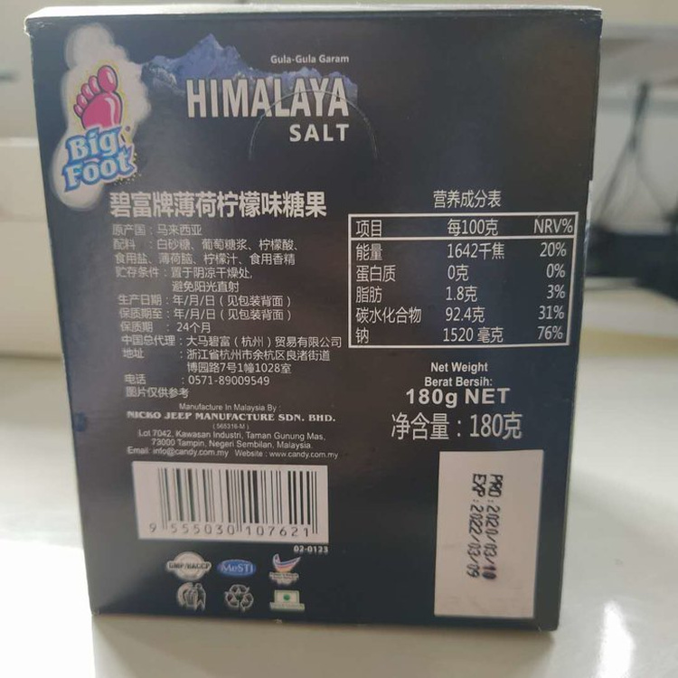 网红爆款!主播明星强推!马来西亚碧富牌柠檬薄荷糖海盐小黑糖15gX12袋