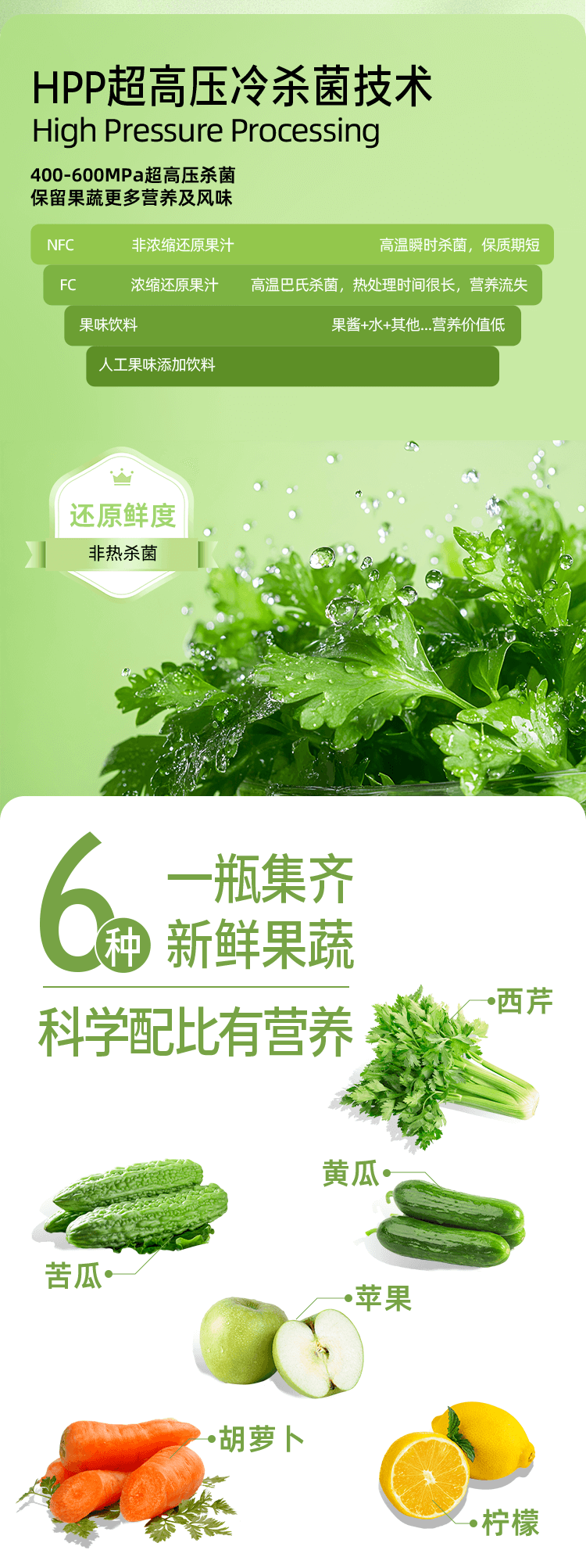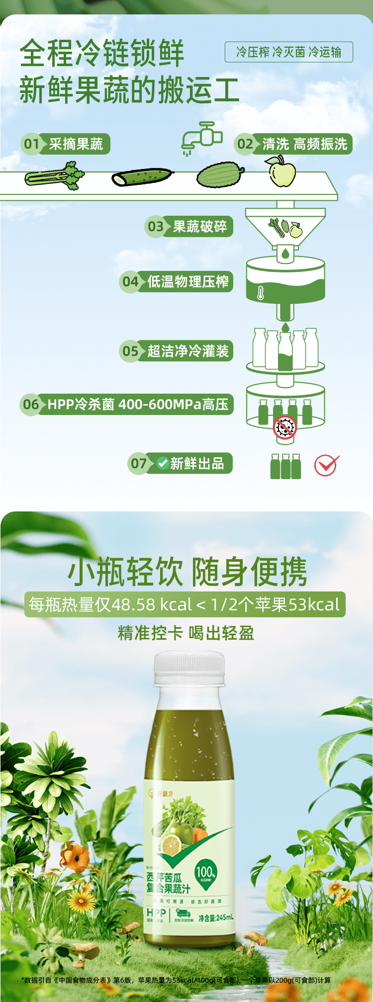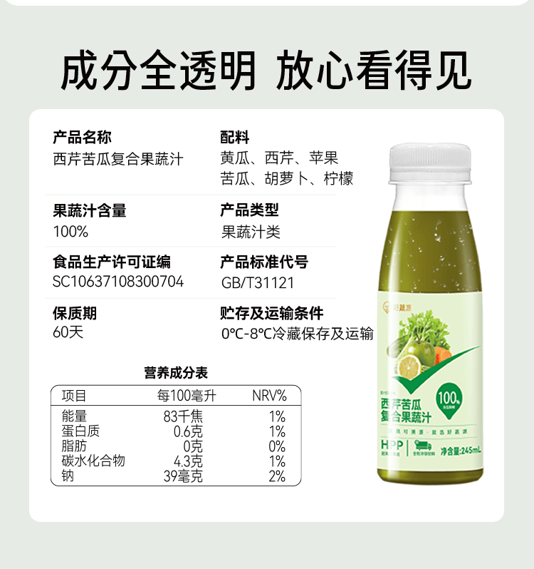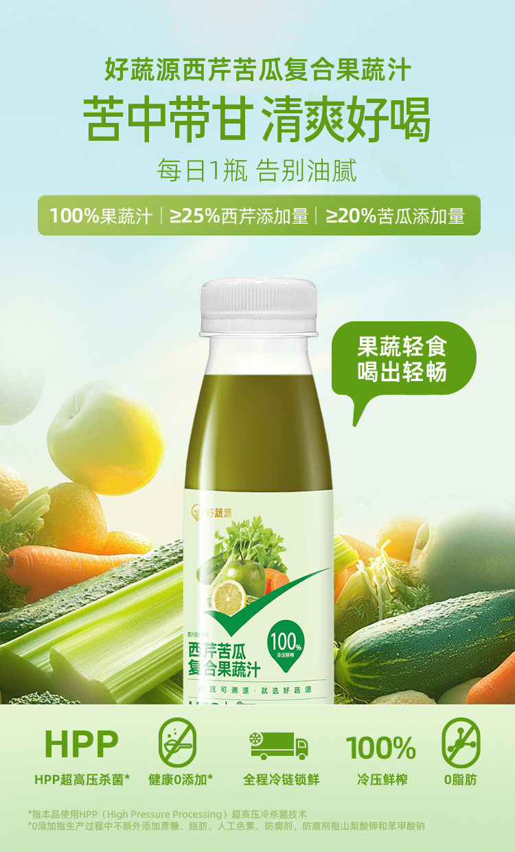 【供货】HPP好蔬源 西芹苦瓜复合果蔬汁 245ml*1瓶 果蔬轻食喝出轻畅