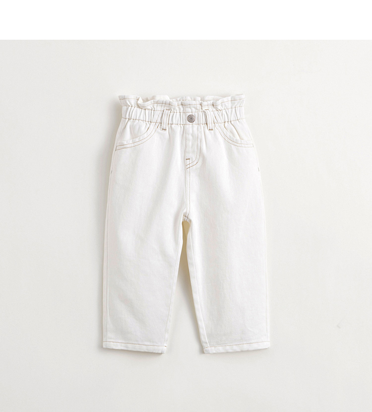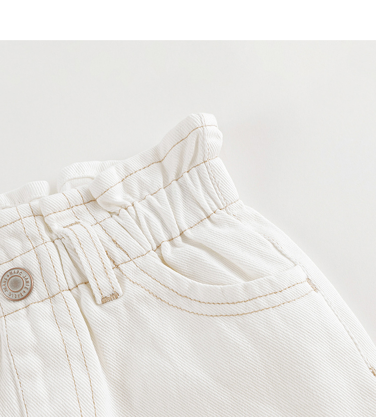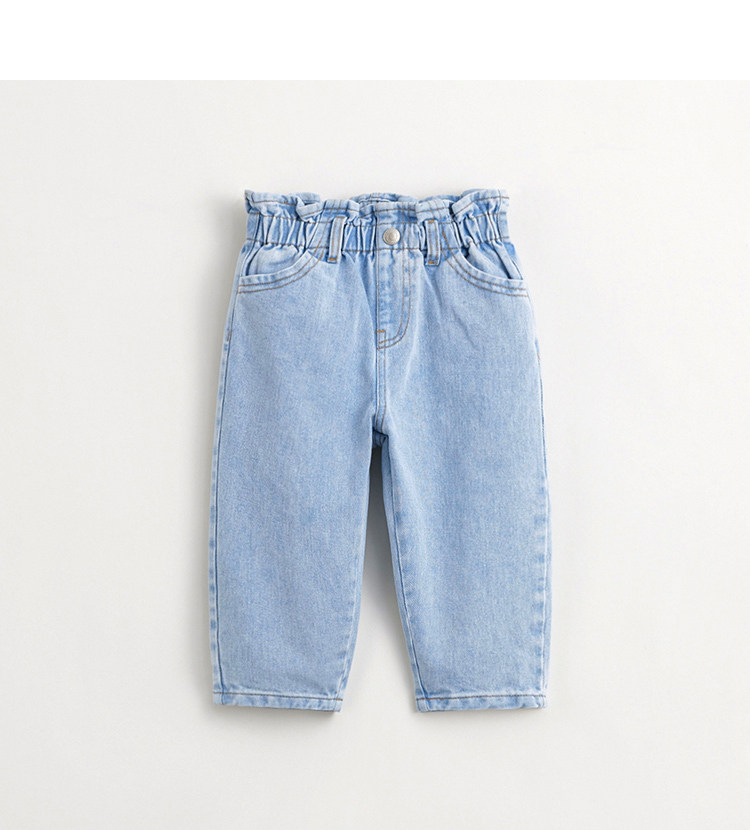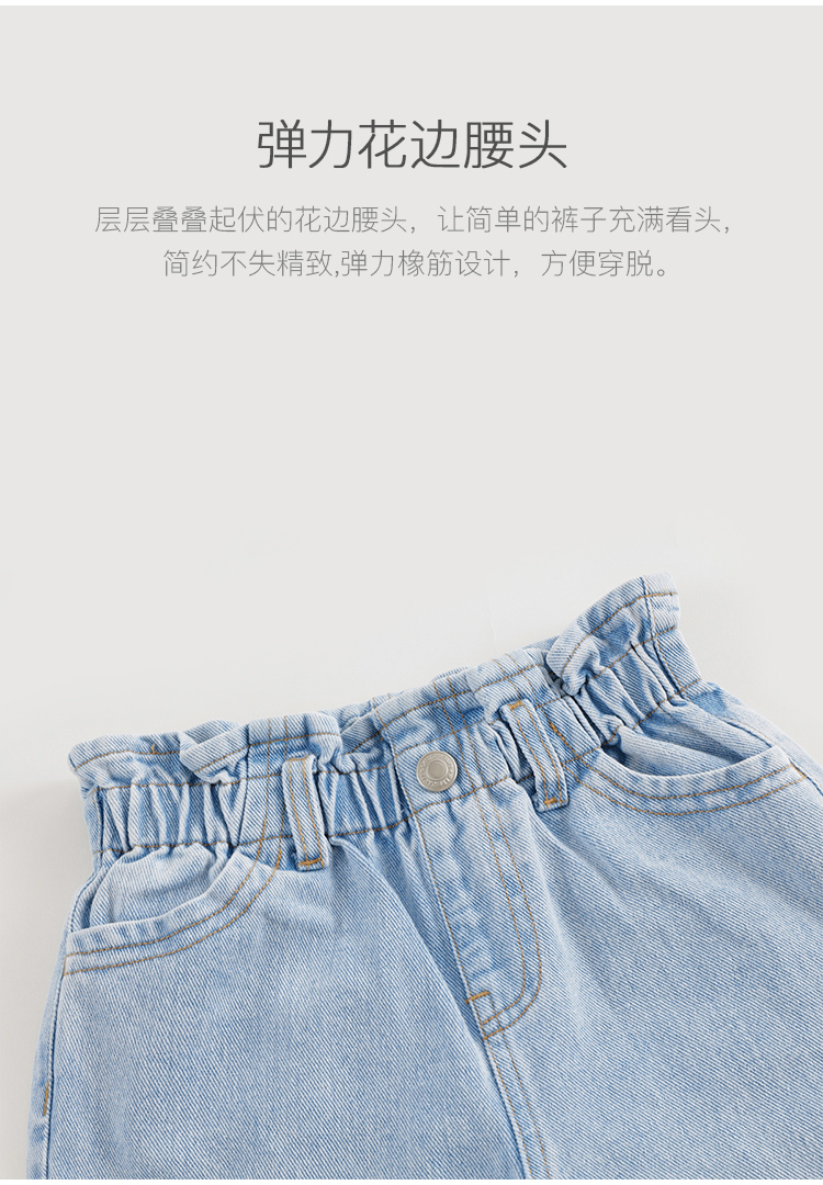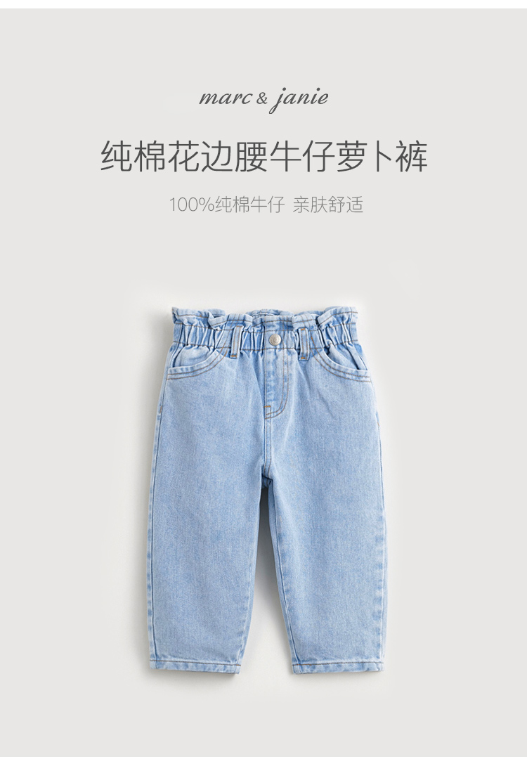 马克珍妮女童牛仔萝卜裤 儿童纯棉花边腰头休闲裤春款新品240227