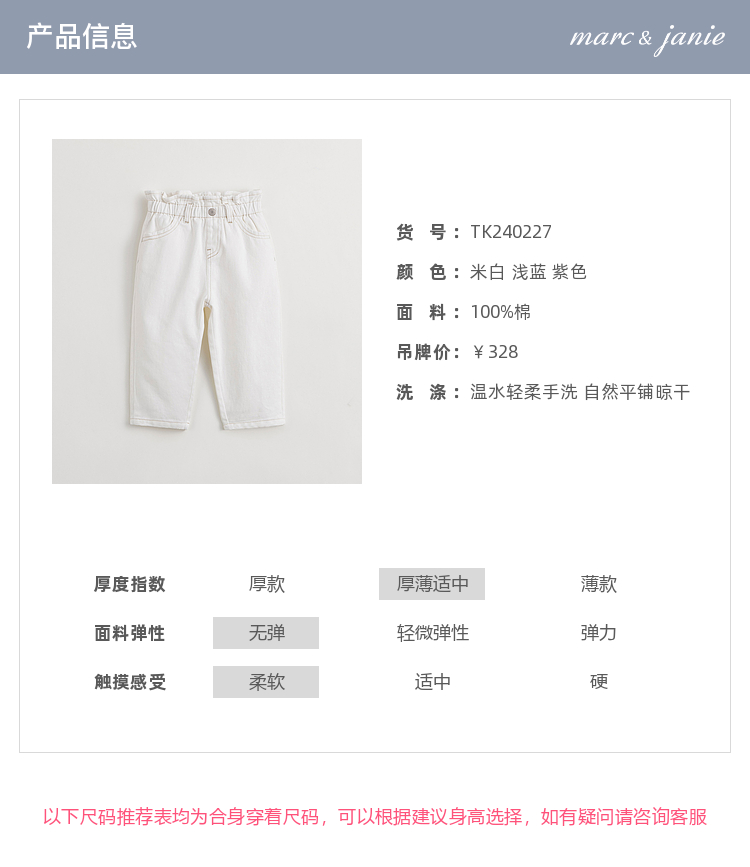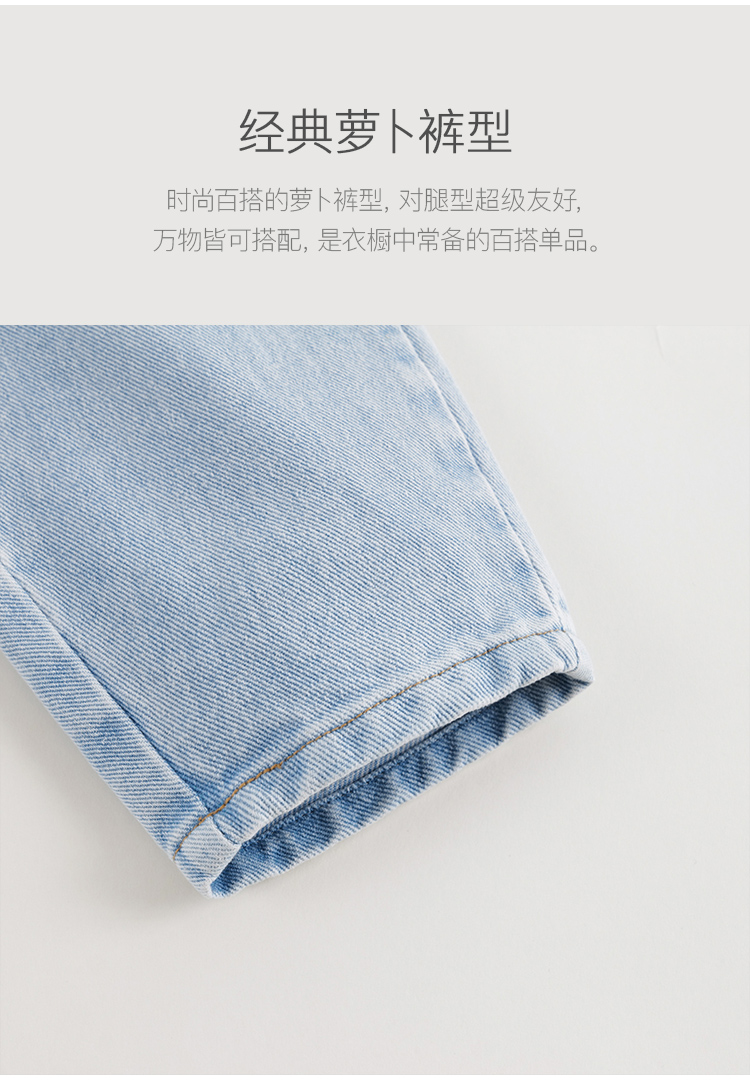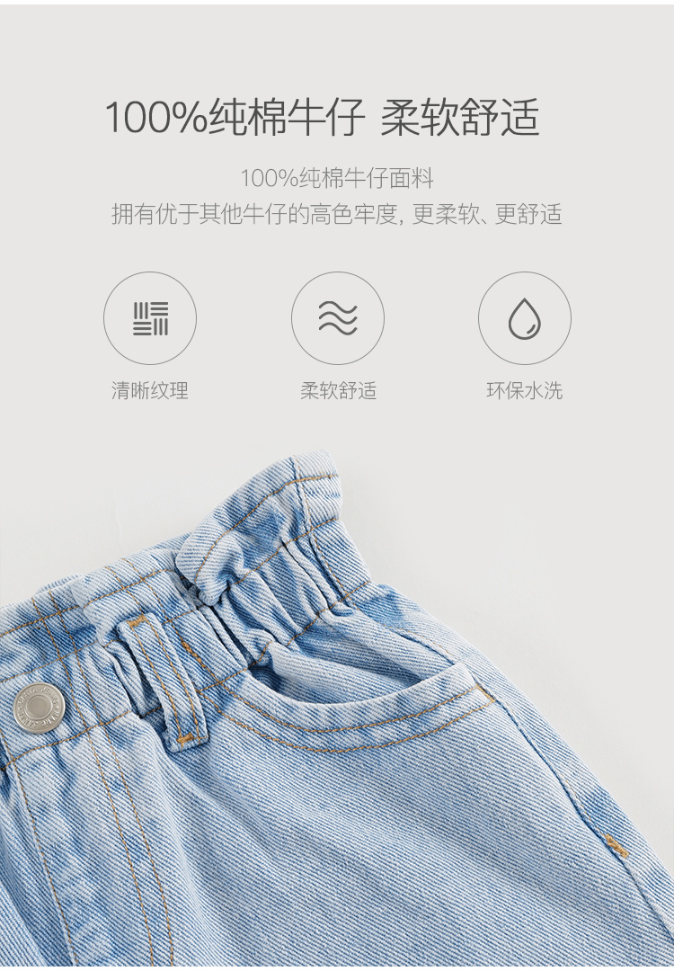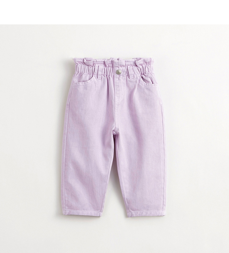 马克珍妮女童牛仔萝卜裤 儿童纯棉花边腰头休闲裤春款新品240227