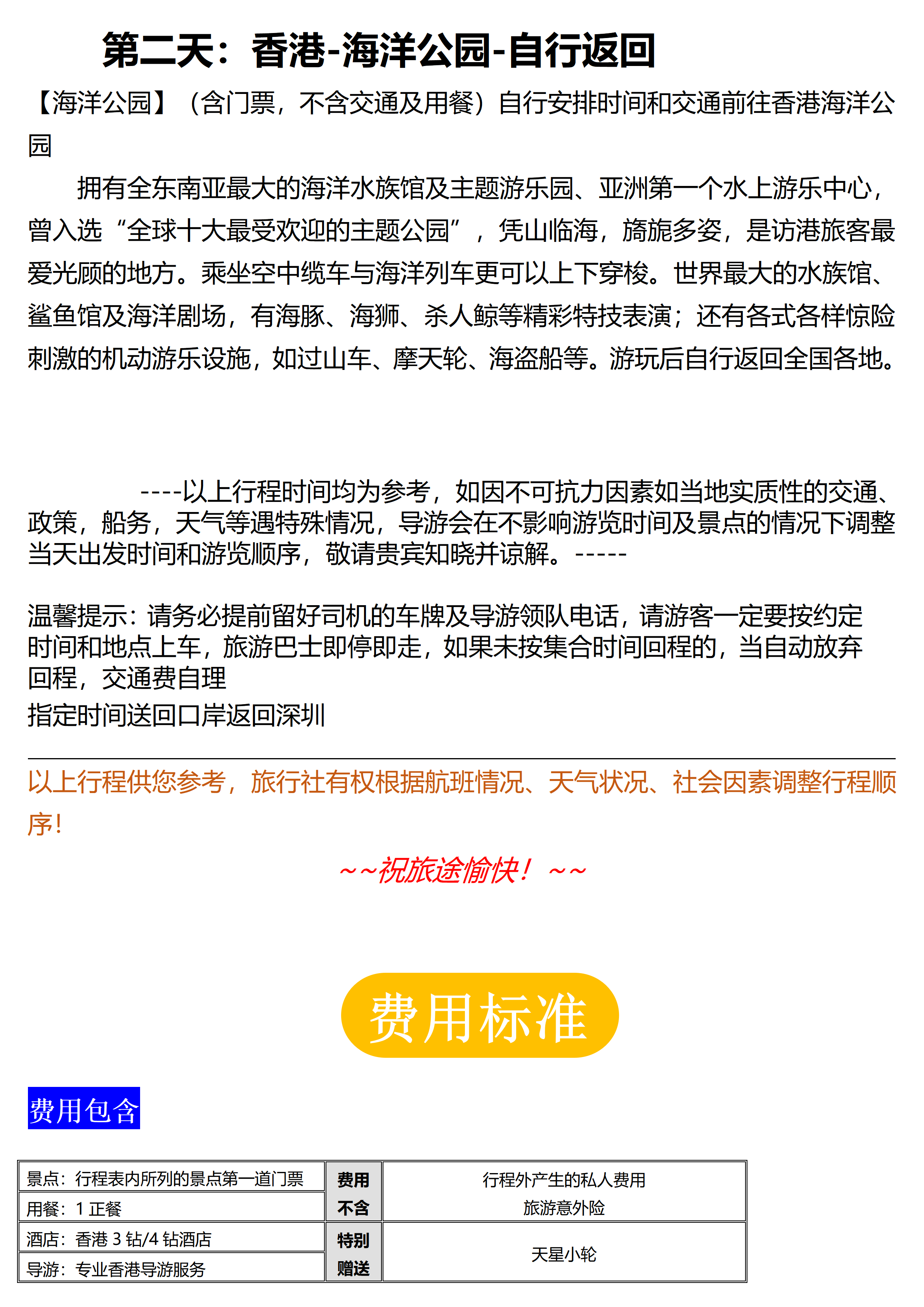 【香港观光+海洋公园2天游】