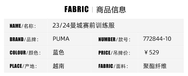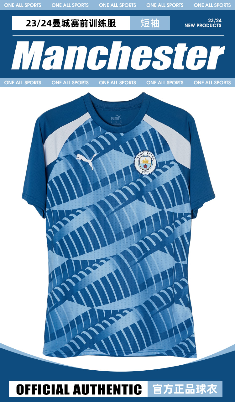 SFS彪马Puma正品23/24曼城赛前热身服短袖球员版训练服772844-10